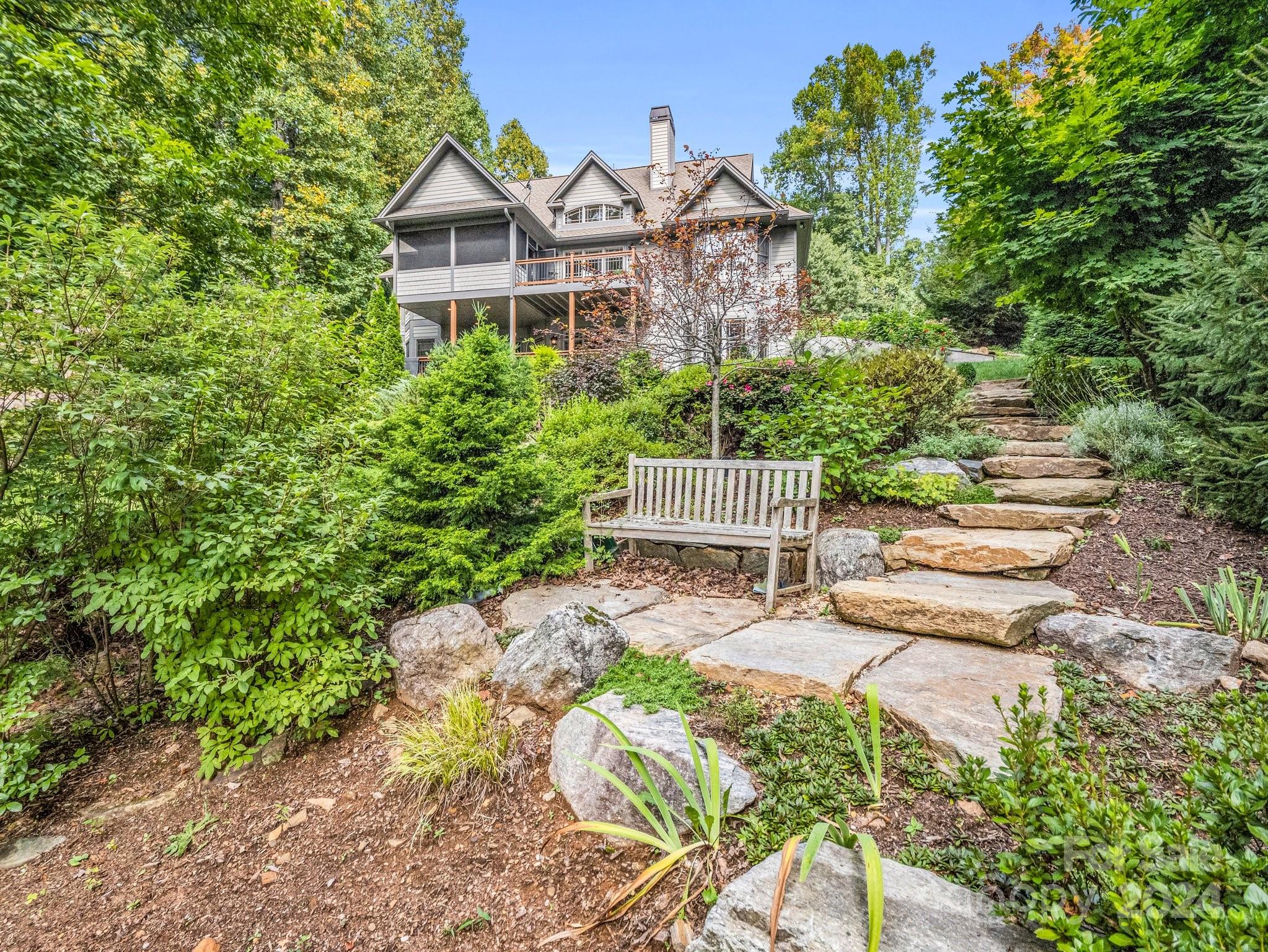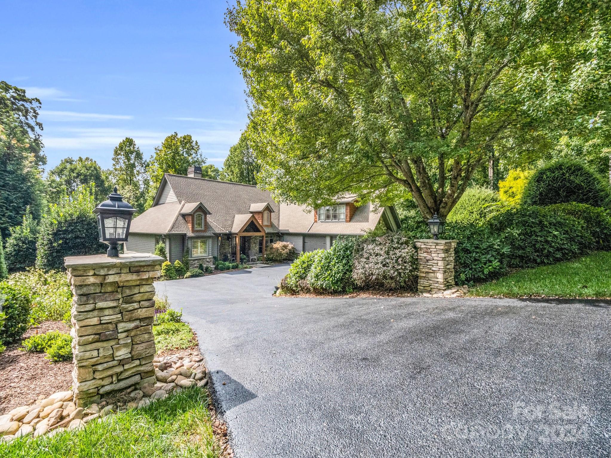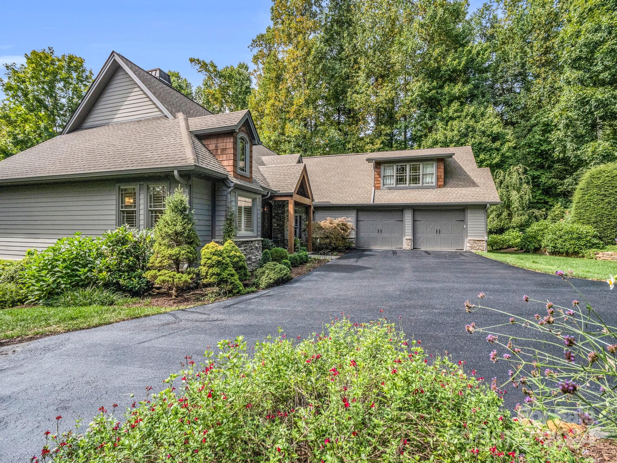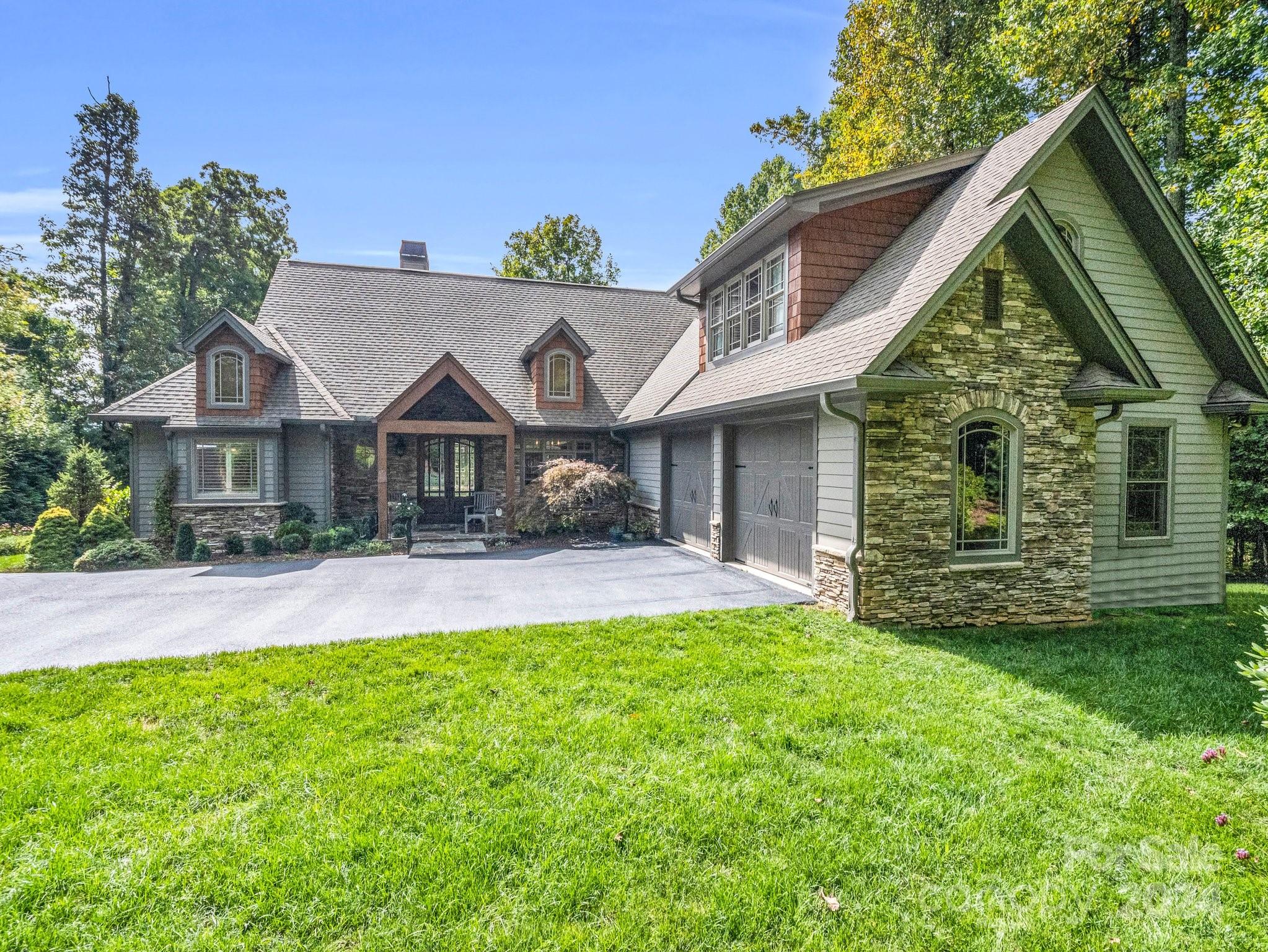Welcome to Cobblestone Village, an exclusive communitv bordering Flat Rock. This elegant home exudes upscale finishes and undeniable charm. The main floor has all you need for a one level lifestyle. There is a cozy living room with a stone fireplace, ample dining area, & a stunning eat-in kitchen with upscale cabinetry, refined appliances, & quartz tops. The split plan layout assures privacy in the Primary Suite. There are both screened & open-air porches to take in the stunning landscaped garden. The main floor has direct access to an ample laundry room and oversized garage. A super light & bright bonus room over the garage is perfect for a hobby or play. The finished basement is ideal for guests or in-laws, offering a large den with a stone fireplace, wet bar, an additional bedroom w/ bath, office, & TV room with surround sound. The lower level opens to a covered porch to fully enjoy the surroundings. Luxury and comfort await you in every corner of this exceptional home.