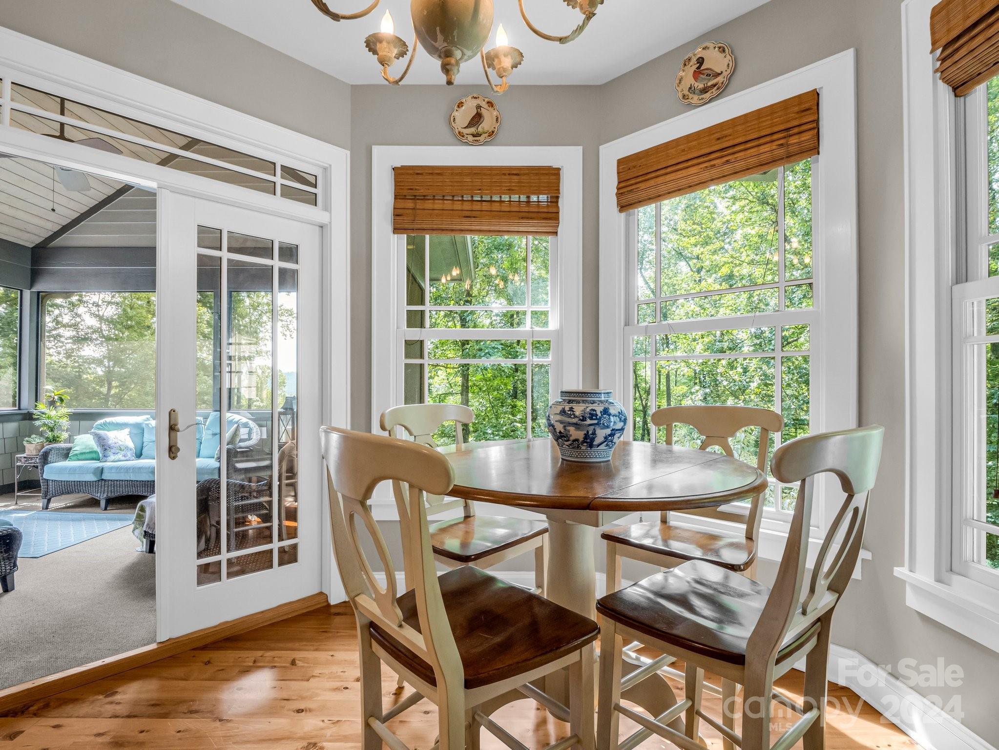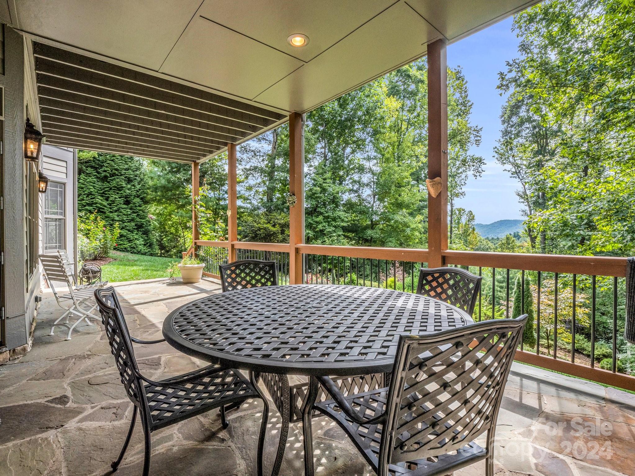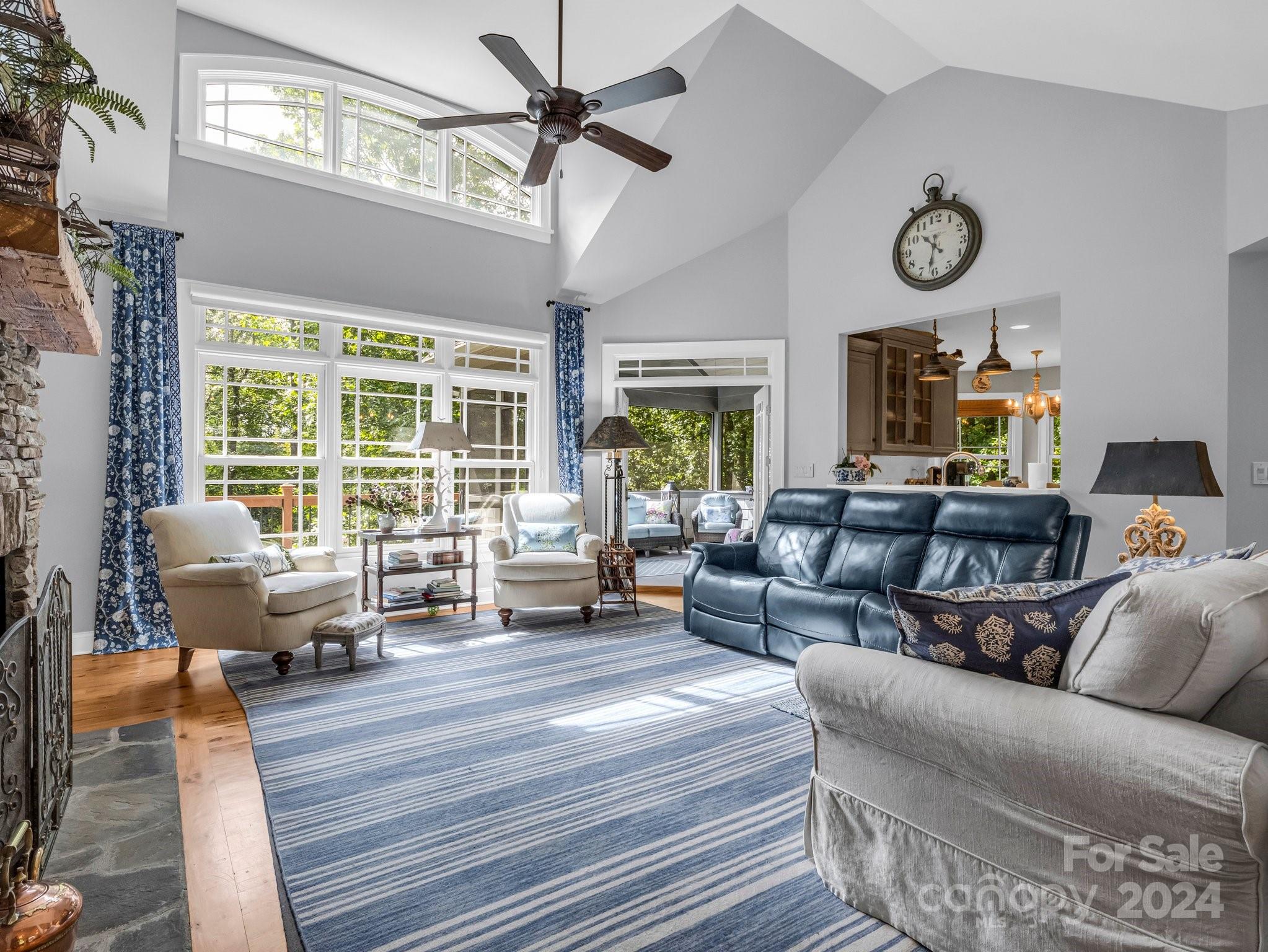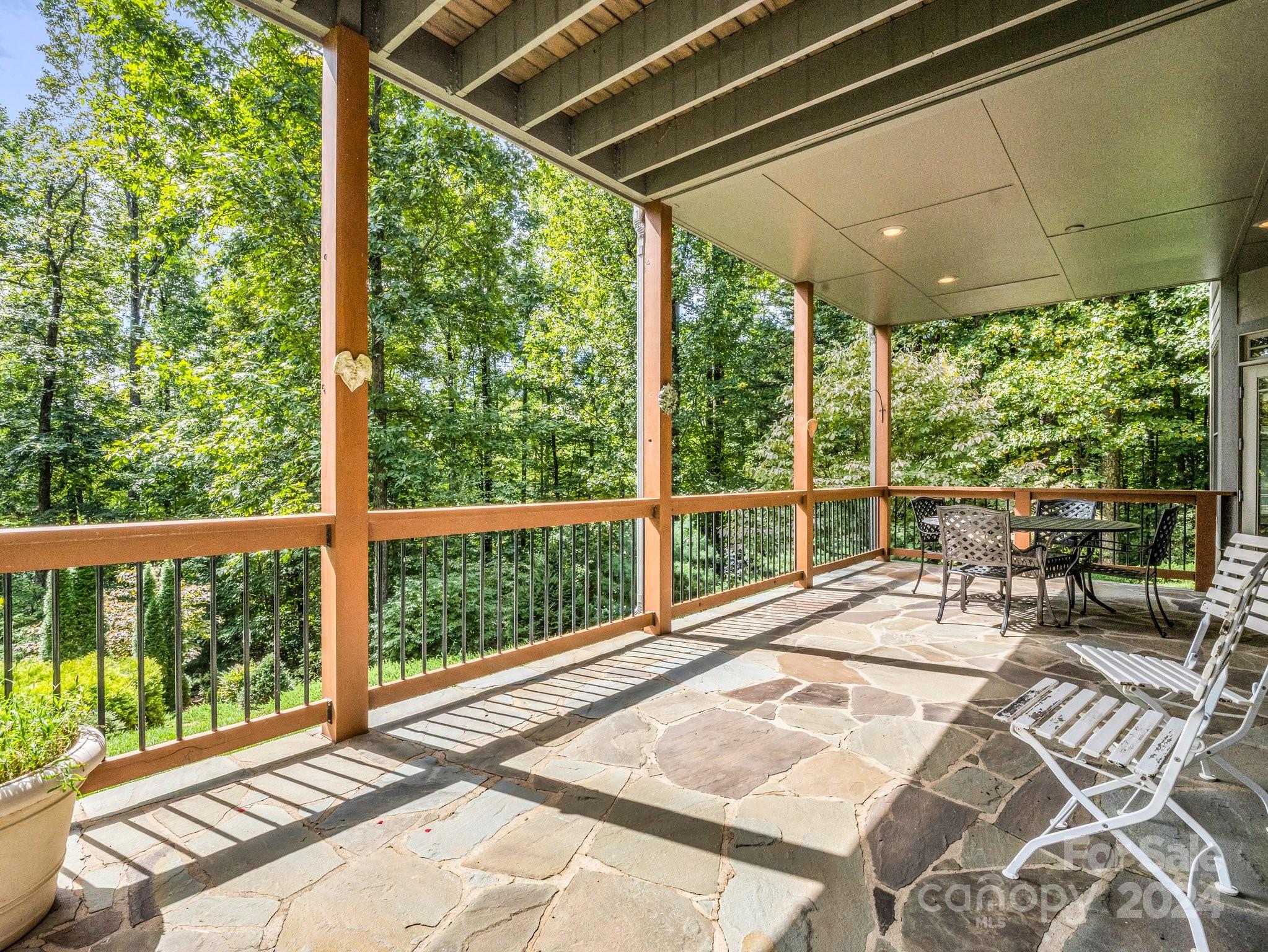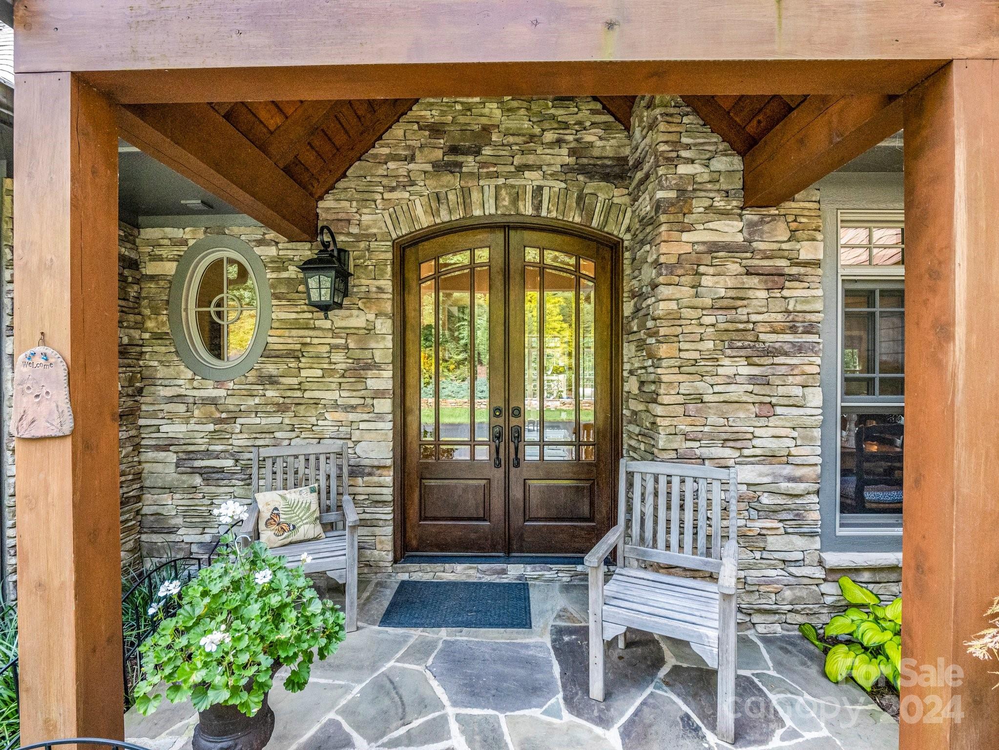 Welcome to Cobblestone Village, an exclusive communitv bordering Flat Rock. This elegant home exudes upscale finishes and undeniable charm. The main floor has all you need for a one level lifestyle. There is a cozy living room with a stone fireplace, ample dining area, & a stunning eat-in kitchen with upscale cabinetry, refined appliances, & quartz tops. The split plan layout assures privacy in the Primary Suite. There are both screened & open-air porches to take in the stunning landscaped garden. The main floor has direct access to an ample laundry room and oversized garage. A super light & bright bonus room over the garage is perfect for a hobby or play. The finished basement is ideal for guests or in-laws, offering a large den with a stone fireplace, wet bar, an additional bedroom w/ bath, office, & TV room with surround sound. The lower level opens to a covered porch to fully enjoy the surroundings. Luxury and comfort await you in every corner of this exceptional home.