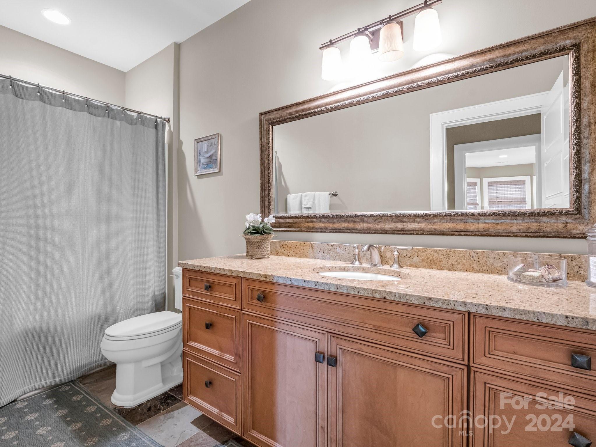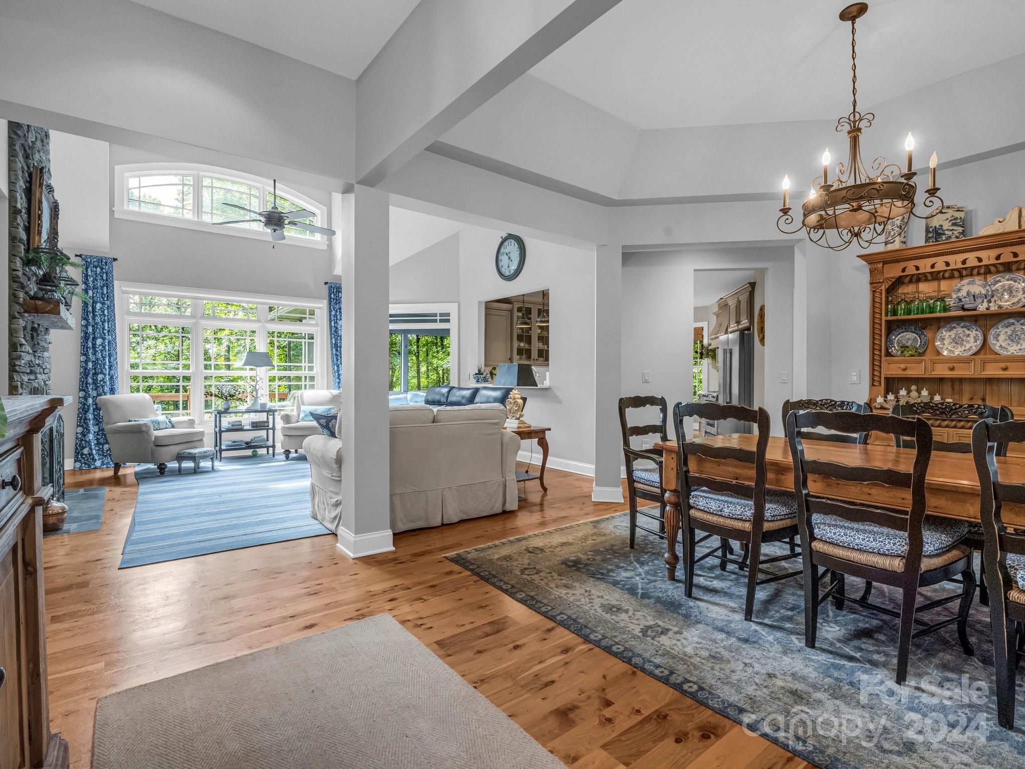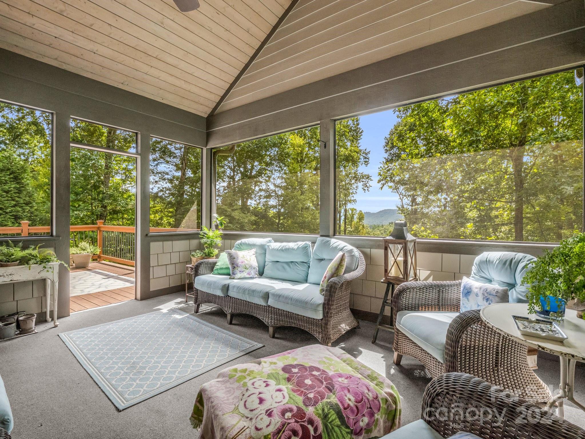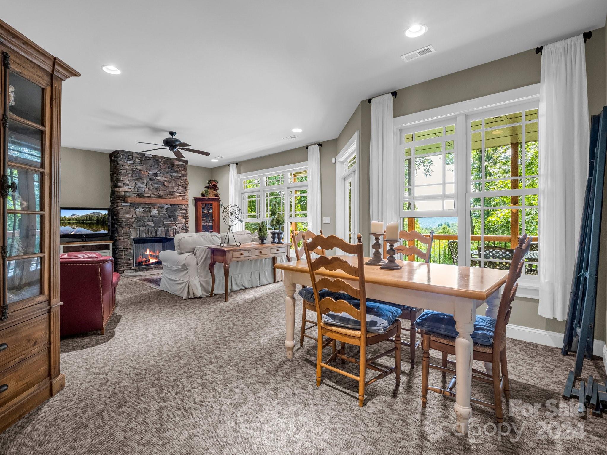 Welcome to Cobblestone Village, an exclusive communitv bordering Flat Rock. This elegant home exudes upscale finishes and undeniable charm. The main floor has all you need for a one level lifestyle. There is a cozy living room with a stone fireplace, ample dining area, & a stunning eat-in kitchen with upscale cabinetry, refined appliances, & quartz tops. The split plan layout assures privacy in the Primary Suite. There are both screened & open-air porches to take in the stunning landscaped garden. The main floor has direct access to an ample laundry room and oversized garage. A super light & bright bonus room over the garage is perfect for a hobby or play. The finished basement is ideal for guests or in-laws, offering a large den with a stone fireplace, wet bar, an additional bedroom w/ bath, office, & TV room with surround sound. The lower level opens to a covered porch to fully enjoy the surroundings. Luxury and comfort await you in every corner of this exceptional home.