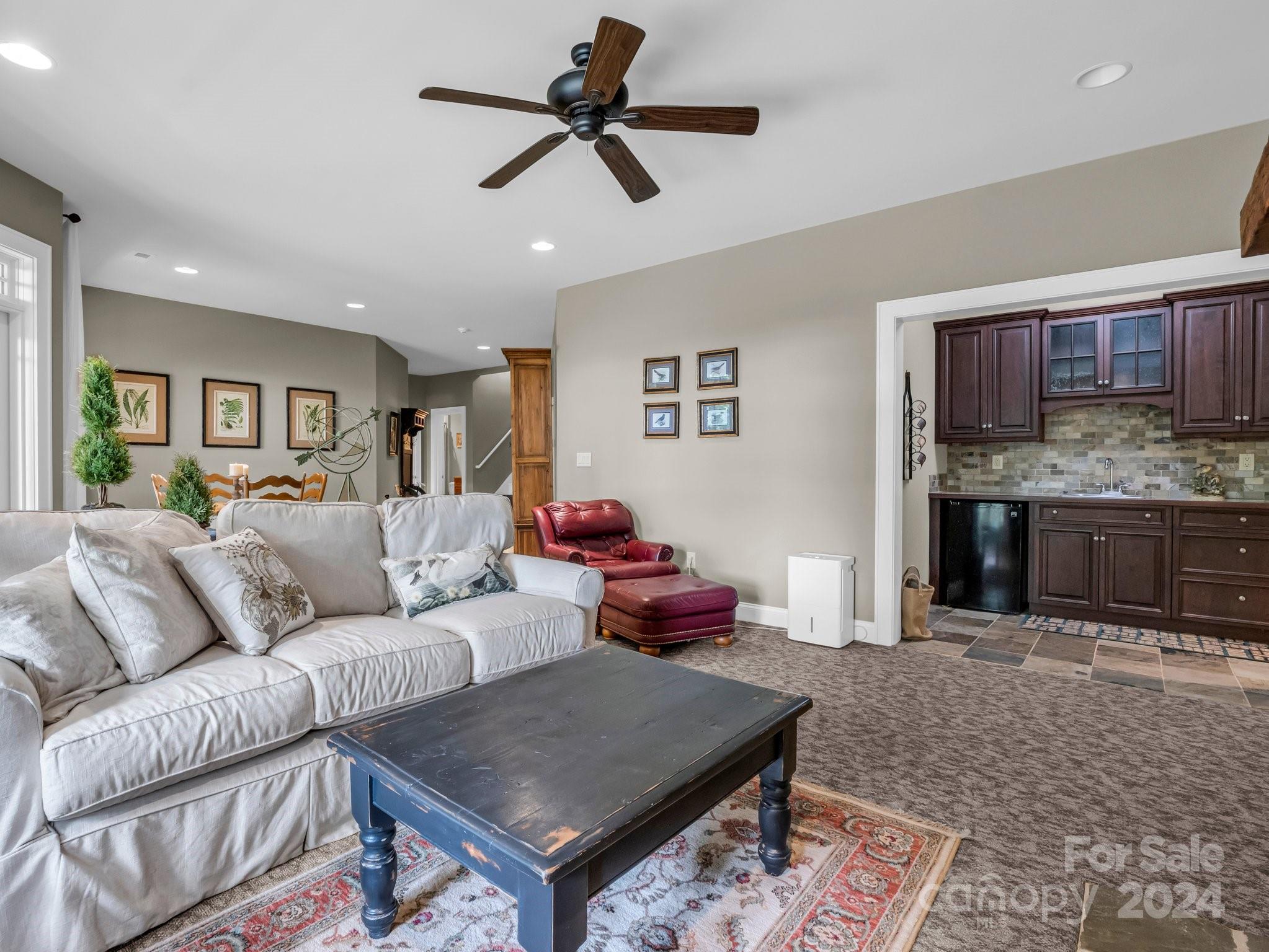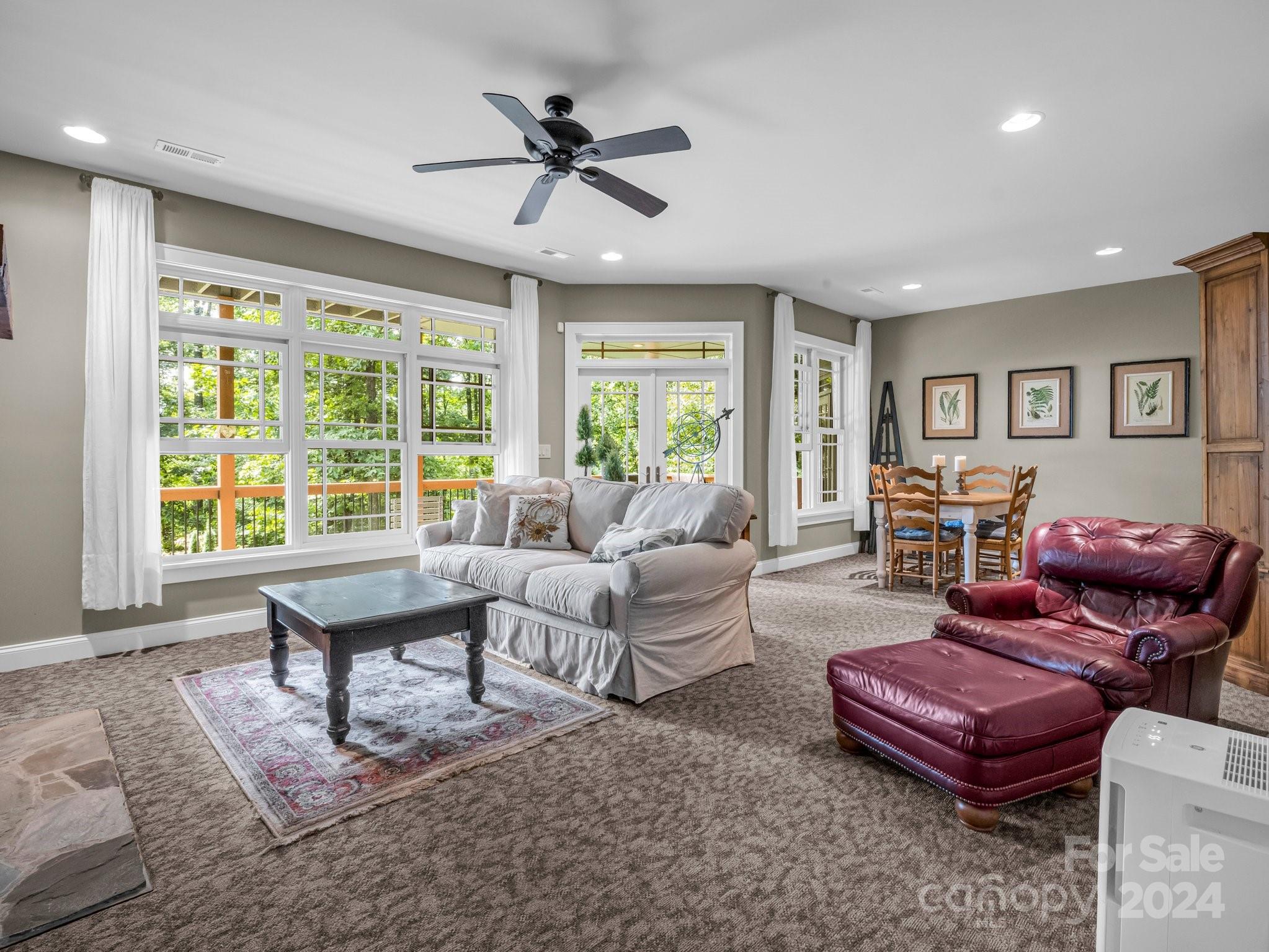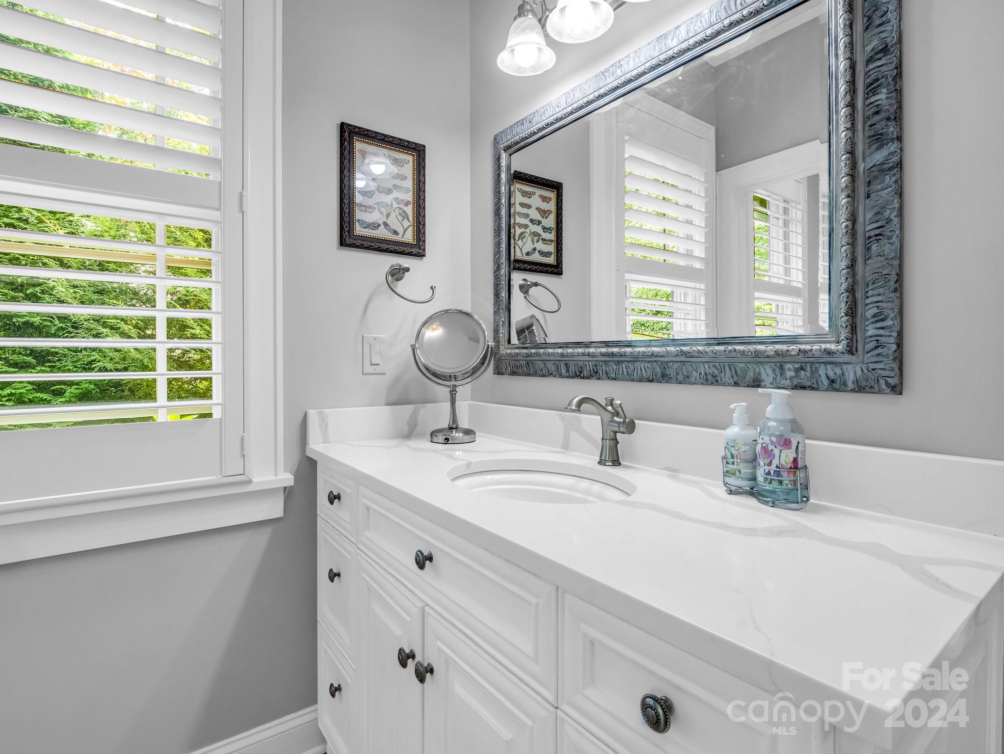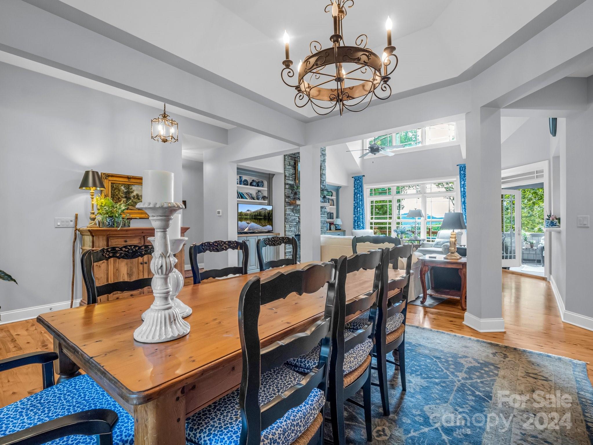 Welcome to Cobblestone Village, an exclusive communitv bordering Flat Rock. This elegant home exudes upscale finishes and undeniable charm. The main floor has all you need for a one level lifestyle. There is a cozy living room with a stone fireplace, ample dining area, & a stunning eat-in kitchen with upscale cabinetry, refined appliances, & quartz tops. The split plan layout assures privacy in the Primary Suite. There are both screened & open-air porches to take in the stunning landscaped garden. The main floor has direct access to an ample laundry room and oversized garage. A super light & bright bonus room over the garage is perfect for a hobby or play. The finished basement is ideal for guests or in-laws, offering a large den with a stone fireplace, wet bar, an additional bedroom w/ bath, office, & TV room with surround sound. The lower level opens to a covered porch to fully enjoy the surroundings. Luxury and comfort await you in every corner of this exceptional home.