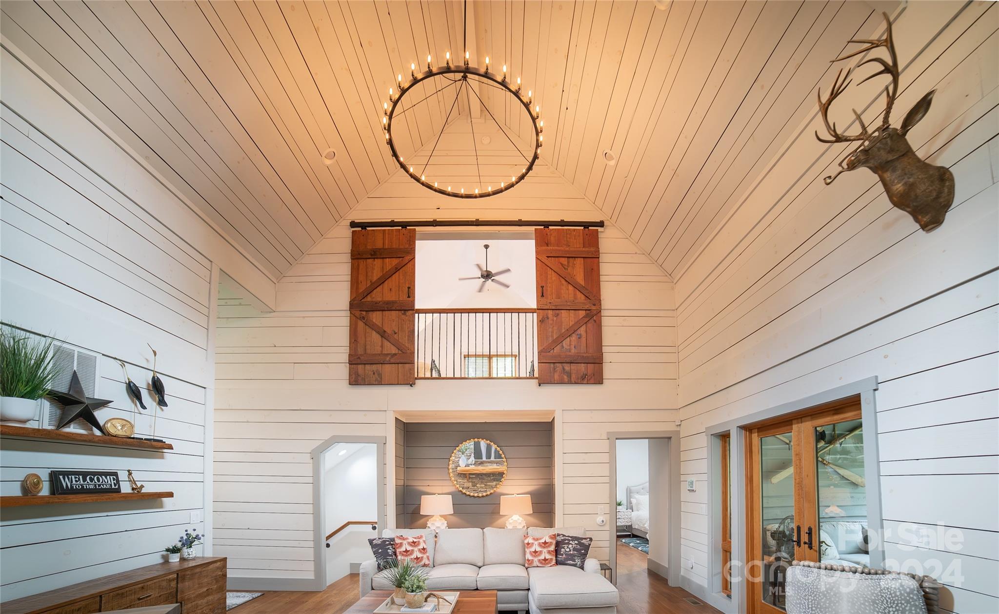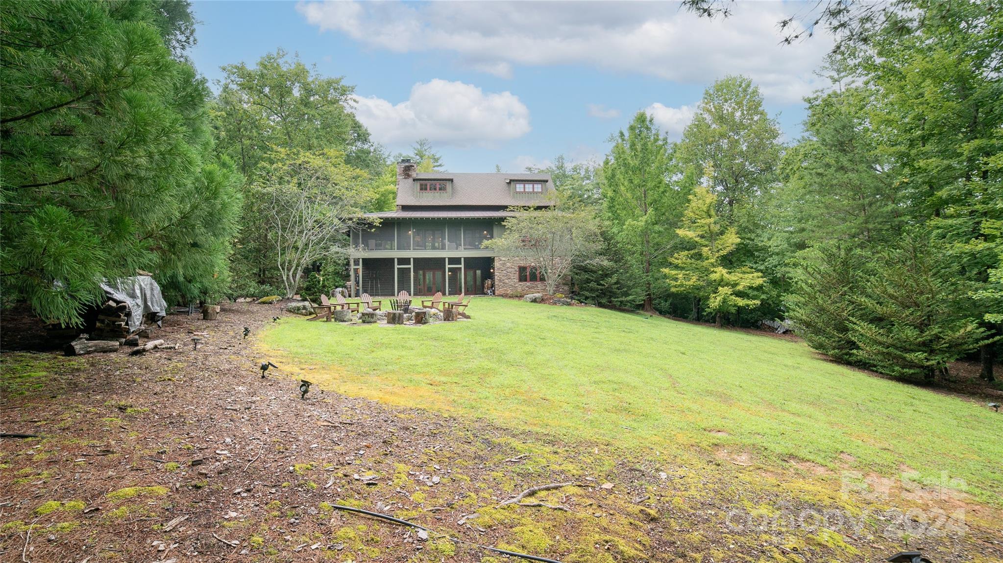 Exquisite Modern Lodge nestled on 9.86 private acres, one of a kind on pristine Lake James. With over 1200' of lake frontage, enjoy owning your own private pointe. A nature lovers paradise, watching deer and turkey then being lulled to sleep with the sounds of crickets, frogs and whippoorwills. This modern lodge boasts 4 spacious bedrooms, a sleeping loft overlooking the family room 3 full baths and 2 halfs, easily sleeping upwards of 16.The majestic family room features floor to ceiling stone fireplace with oversized windows for views of the lake. The kitchen is fully equipped for any want to be chef with all modern appliances.The downstairs area is ready for family games and relaxing TV time. Walk out to the spacious yard with large fire pit and views of the lake. Easy walk to the water to hop on your boat and explore Lake James. The most amazing part of this custom home is the screened in porch with stone fireplace. Summer,fall or winter it's the place for all to gather.