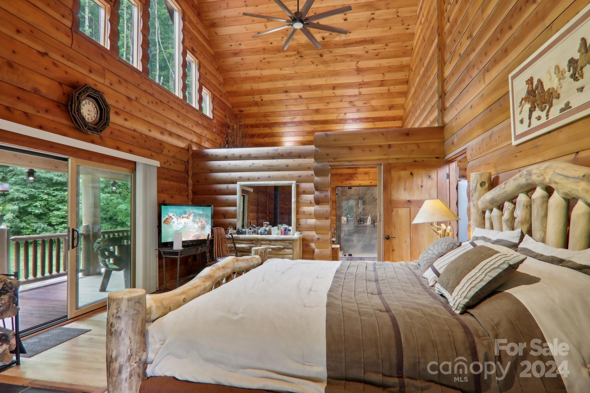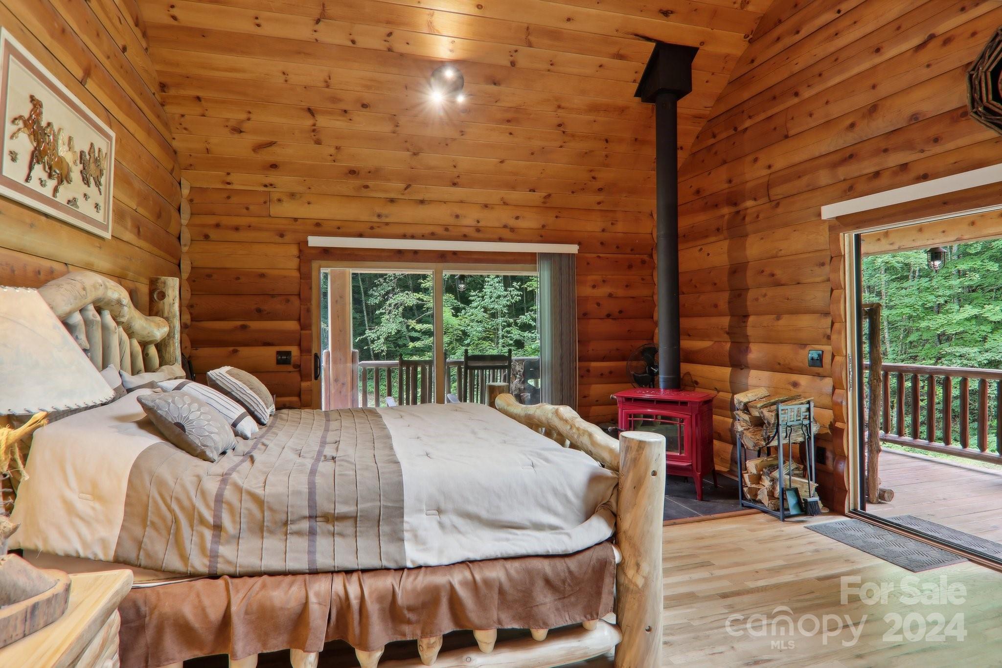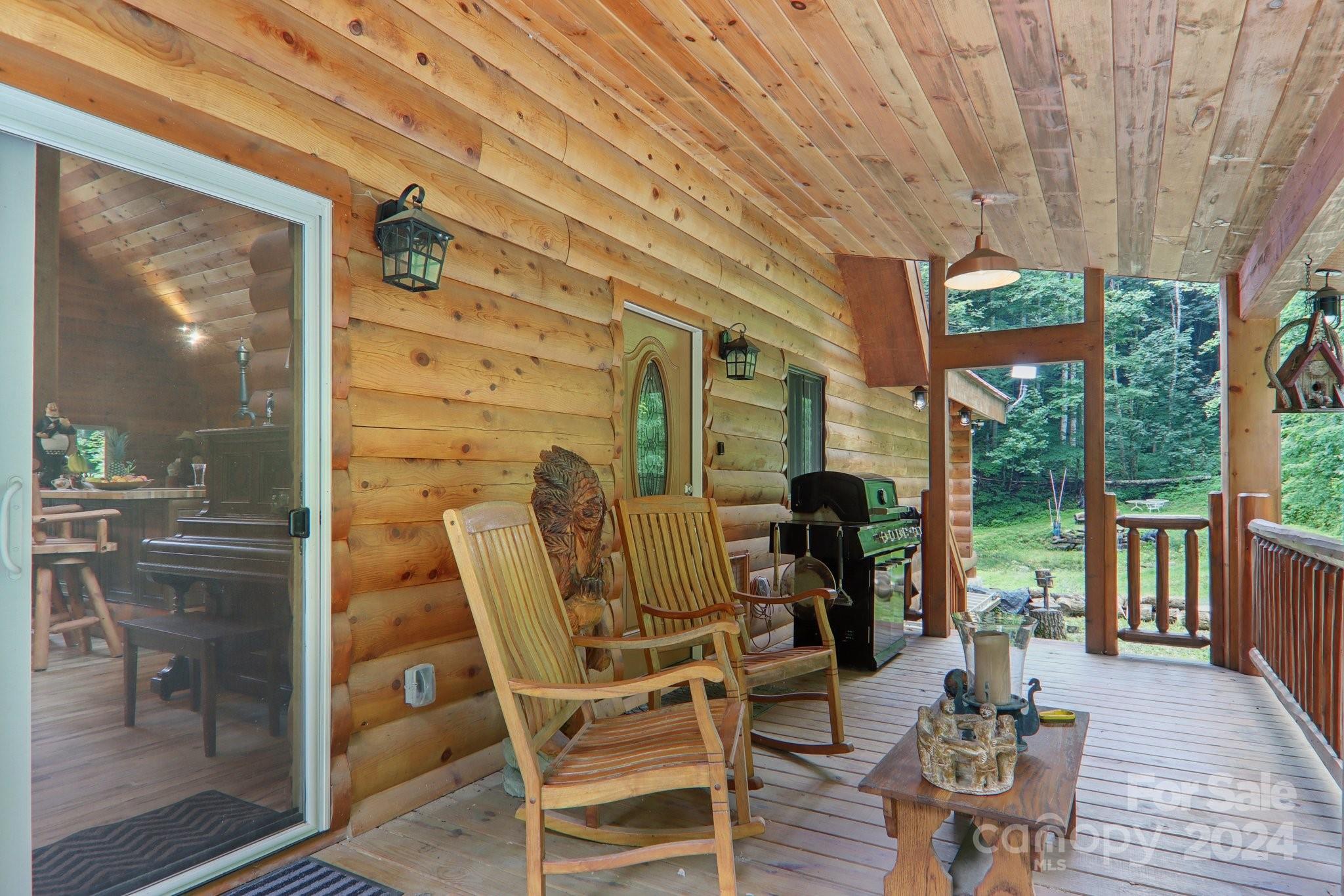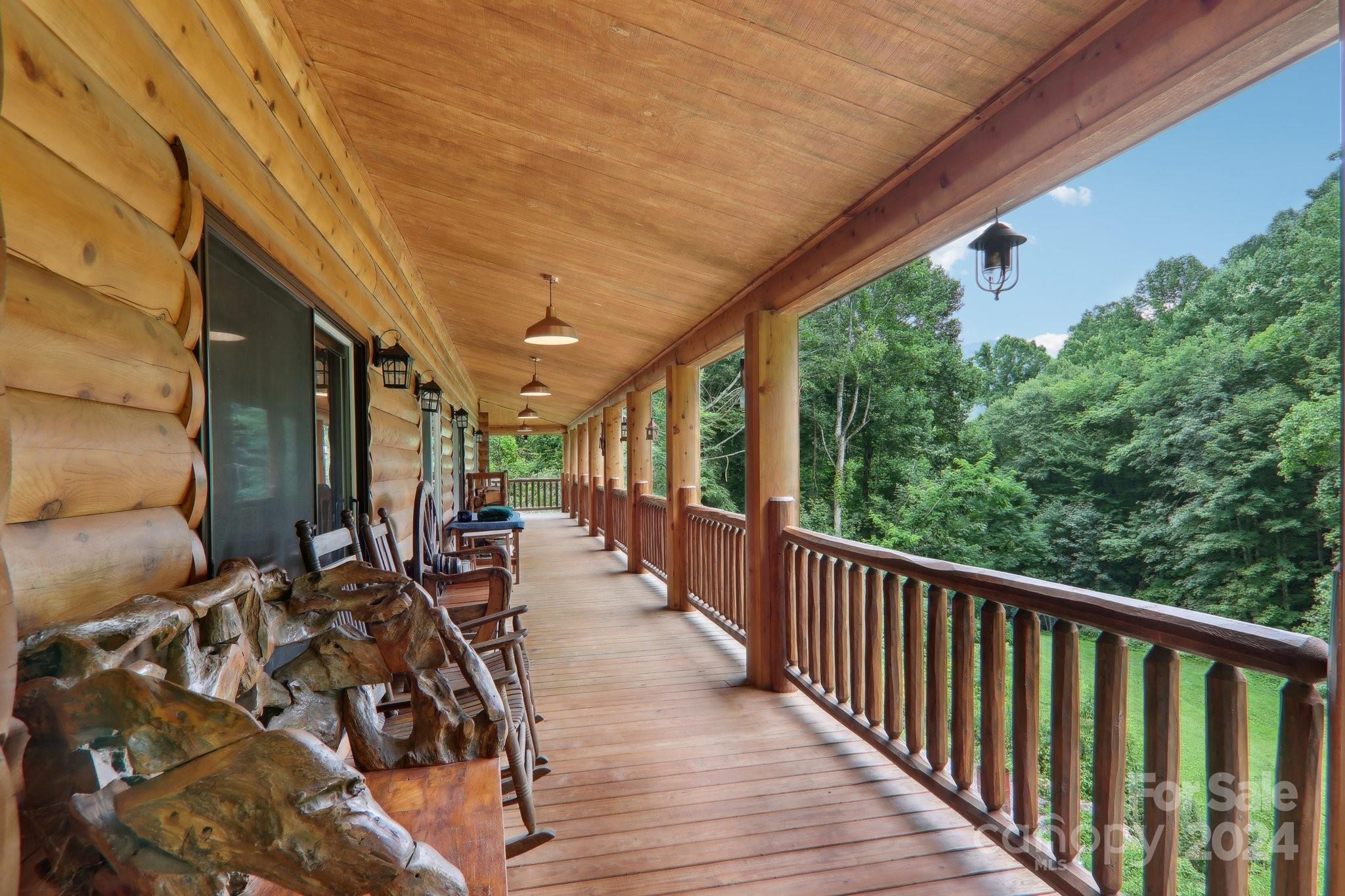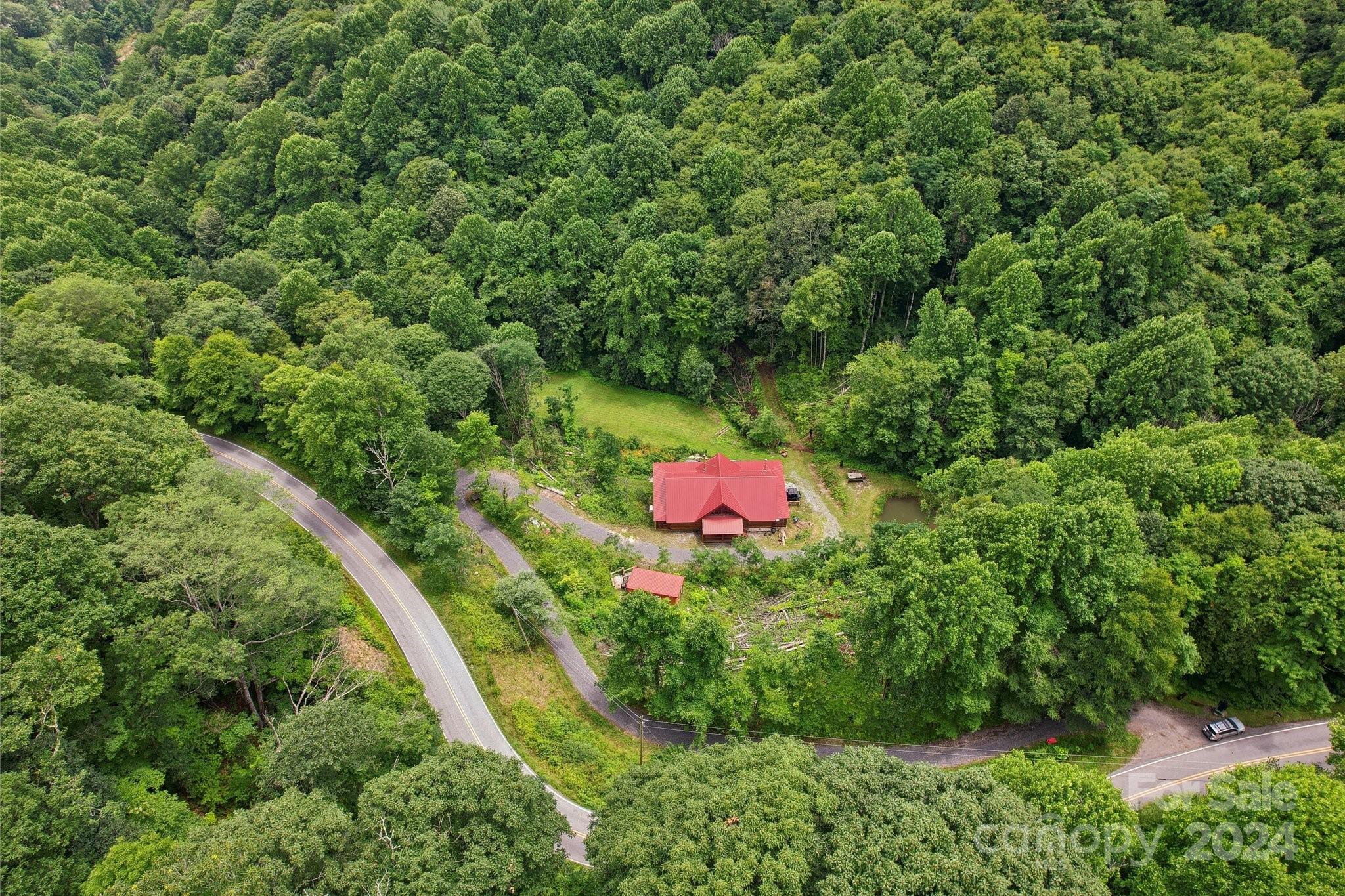 Welcome to Big Foot Trail! This extraordinary property features an over 4000 sq ft Red Cedar Log Home on 44 acres off State Rd! The stunning great room has 23 ft ceilings! The home is highly energy-efficient w/spray foam insulation poured concrete walls, & 2 Soapstone woodstoves! The primary BR on main opens to the covered deck overlooking the pond & waterfalls. A lrg primary BA includes an oversized tile shower & open closet/changing room. Guest BR & 2BA as well as bonus room on main. Open kitchen concept w/breakfast bar perfect for entertaining. The lower level is finished & perfect for a rec room, crafts, bonus sleeping space, etc. Much of the land has a gentle topo for additional cabins, tree houses, etc. There are 2 pasture areas (some fenced), creek through the property, & old barn. 10 minutes to I-40, & located just outside Cataloochee Valley & GSMNP. Freshwater spring! There is a bonus cabin for caretaker or office. Satellite internet. Furniture, tools, & 4 wheelers negotiable.