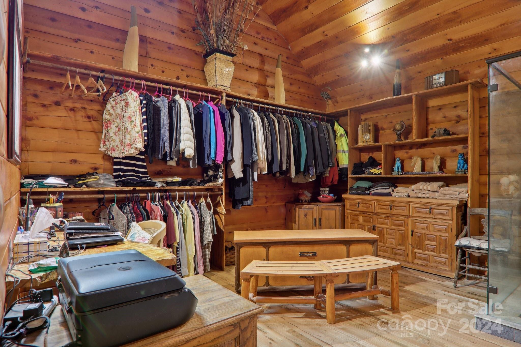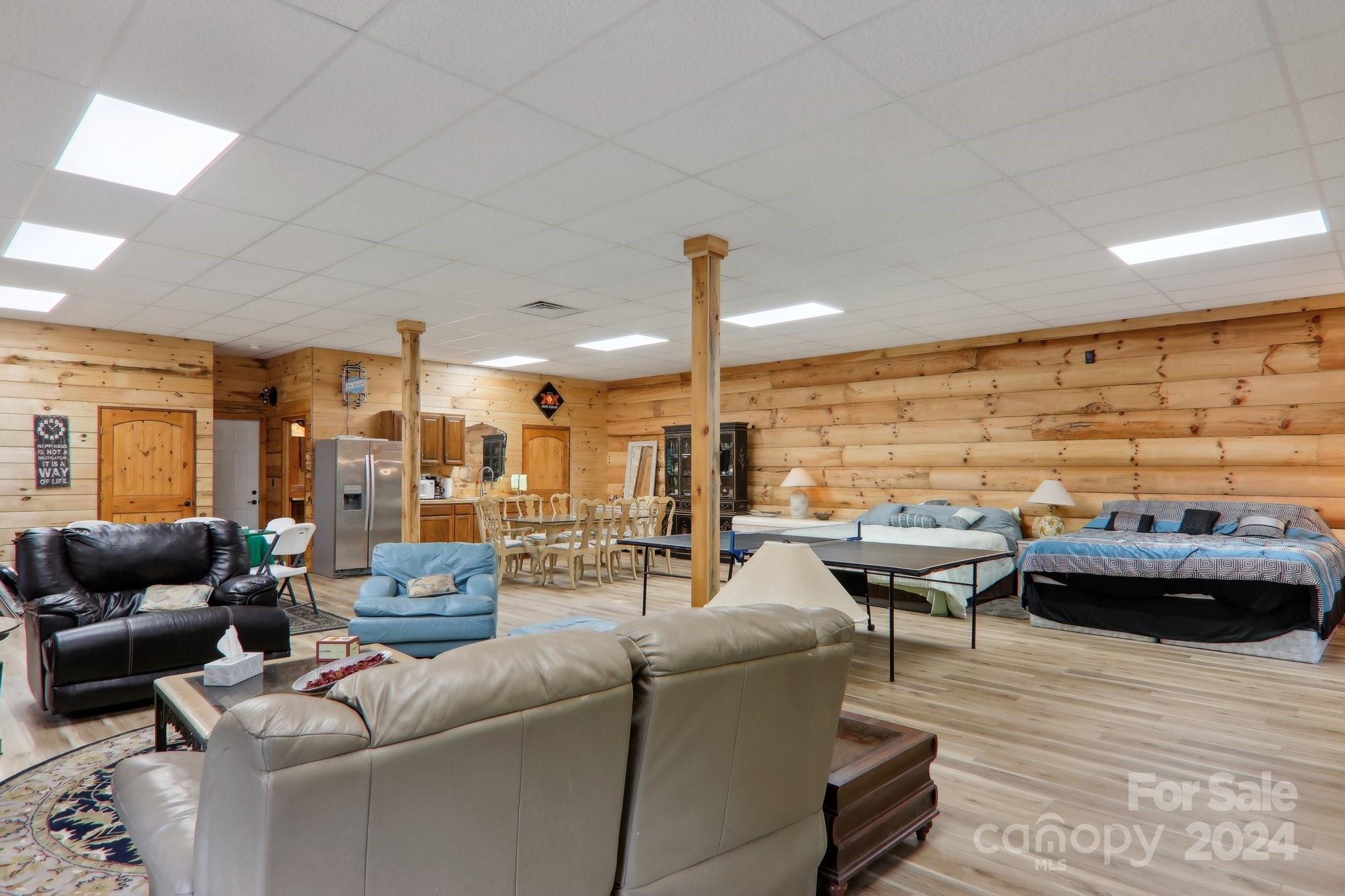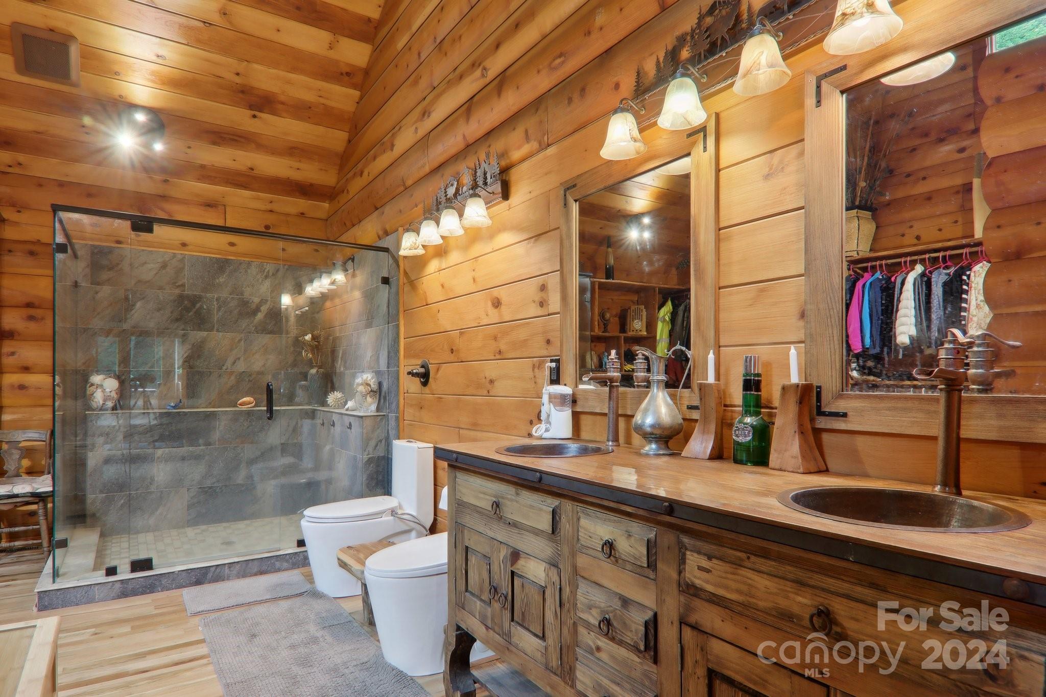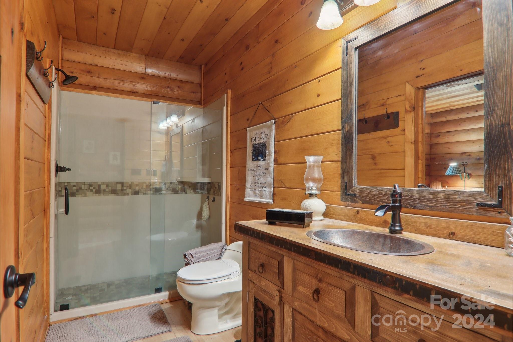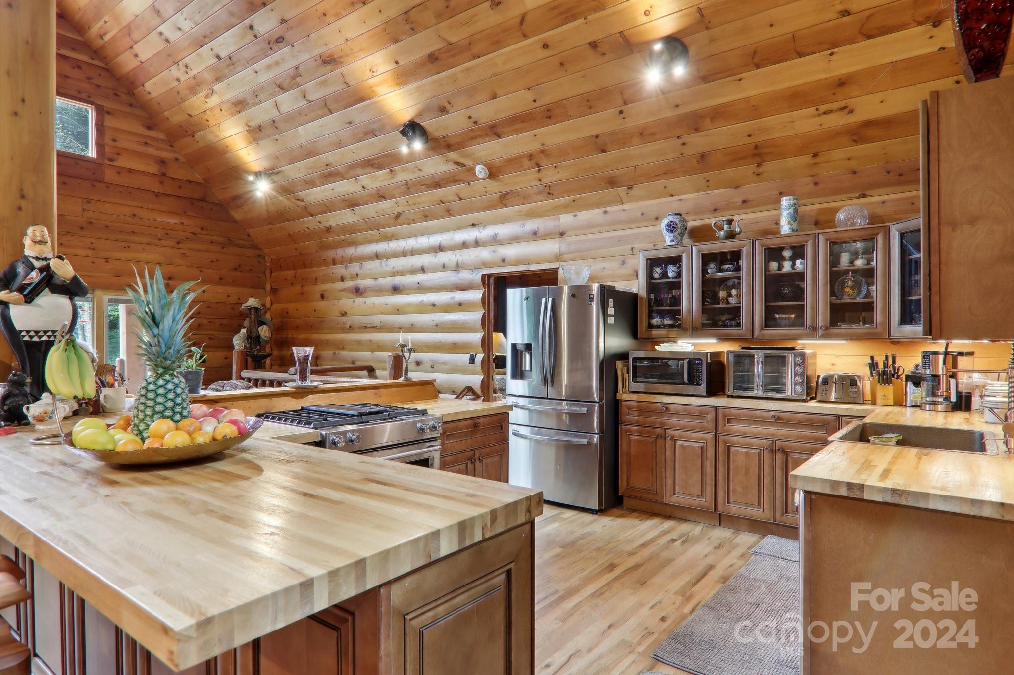 Welcome to Big Foot Trail! This extraordinary property features an over 4000 sq ft Red Cedar Log Home on 44 acres off State Rd! The stunning great room has 23 ft ceilings! The home is highly energy-efficient w/spray foam insulation poured concrete walls, & 2 Soapstone woodstoves! The primary BR on main opens to the covered deck overlooking the pond & waterfalls. A lrg primary BA includes an oversized tile shower & open closet/changing room. Guest BR & 2BA as well as bonus room on main. Open kitchen concept w/breakfast bar perfect for entertaining. The lower level is finished & perfect for a rec room, crafts, bonus sleeping space, etc. Much of the land has a gentle topo for additional cabins, tree houses, etc. There are 2 pasture areas (some fenced), creek through the property, & old barn. 10 minutes to I-40, & located just outside Cataloochee Valley & GSMNP. Freshwater spring! There is a bonus cabin for caretaker or office. Satellite internet. Furniture, tools, & 4 wheelers negotiable.