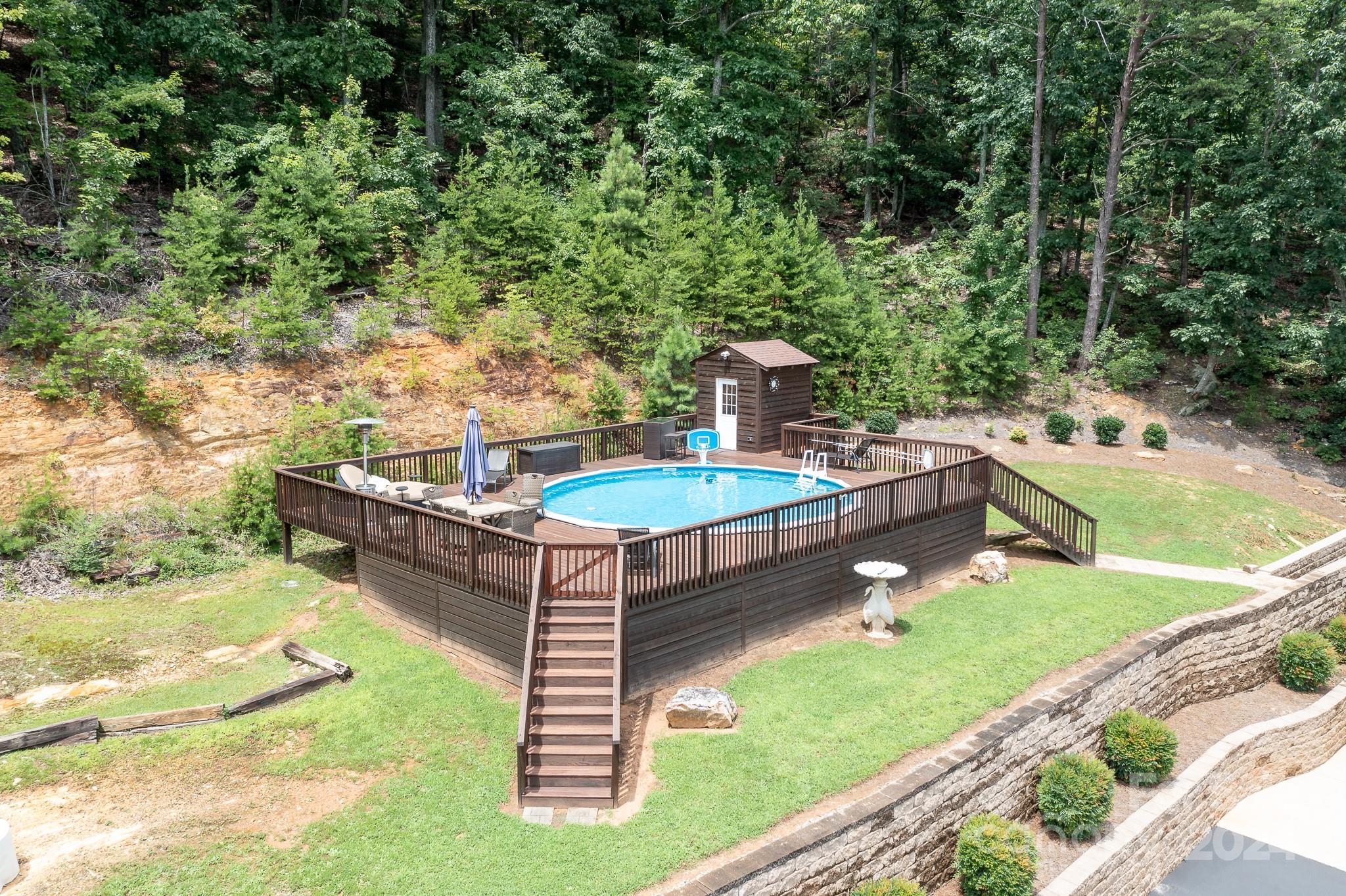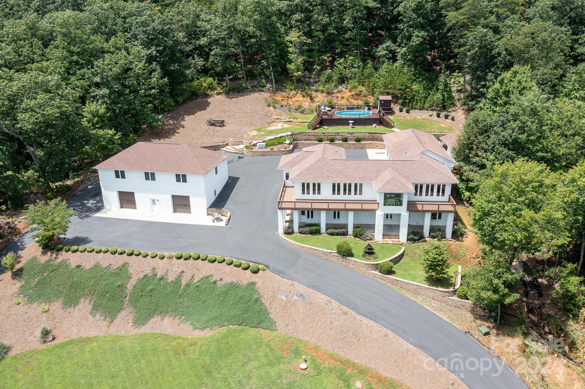 Imagine living among the trees perched on the side of a mountain behind a gate with sweeping views of the Charlotte city skyline and surrounding area of Lake Norman. 5510 Mountain Laural Dr provides just that environment. The beautifully renovated main home has 4 bedrooms, 3 full and 1 half bath with 2 decks to take in the surrounding nature. There are other rooms that can be used as bedrooms or an office. Other features include a fully finished lower level with a theater room, multiple living areas, huge updated kitchen, attached 2+ car garage, storage building,2 fireplaces, and a pool with large deck. There is also a detached building with 1 large room perfect for a gym or office w/ half bath and sauna PLUS a separate suite with a full kitchen, living room and bathroom. There is a 4 car garage below with 14' ceilings and finished epoxy floors. All of this sits on 3.75 acres with access to HWY 16 just 1 mile away. Fantastic AIRBnB opportunity in excellent location.