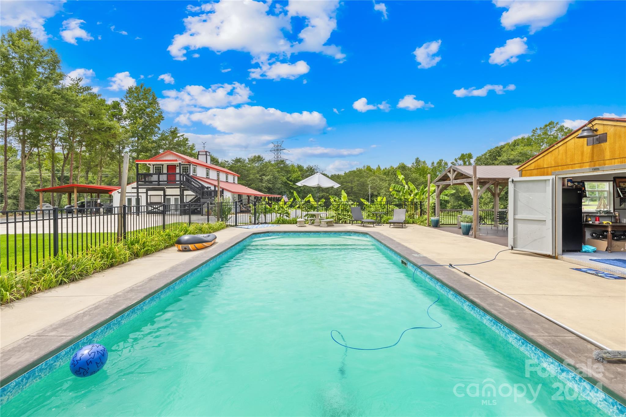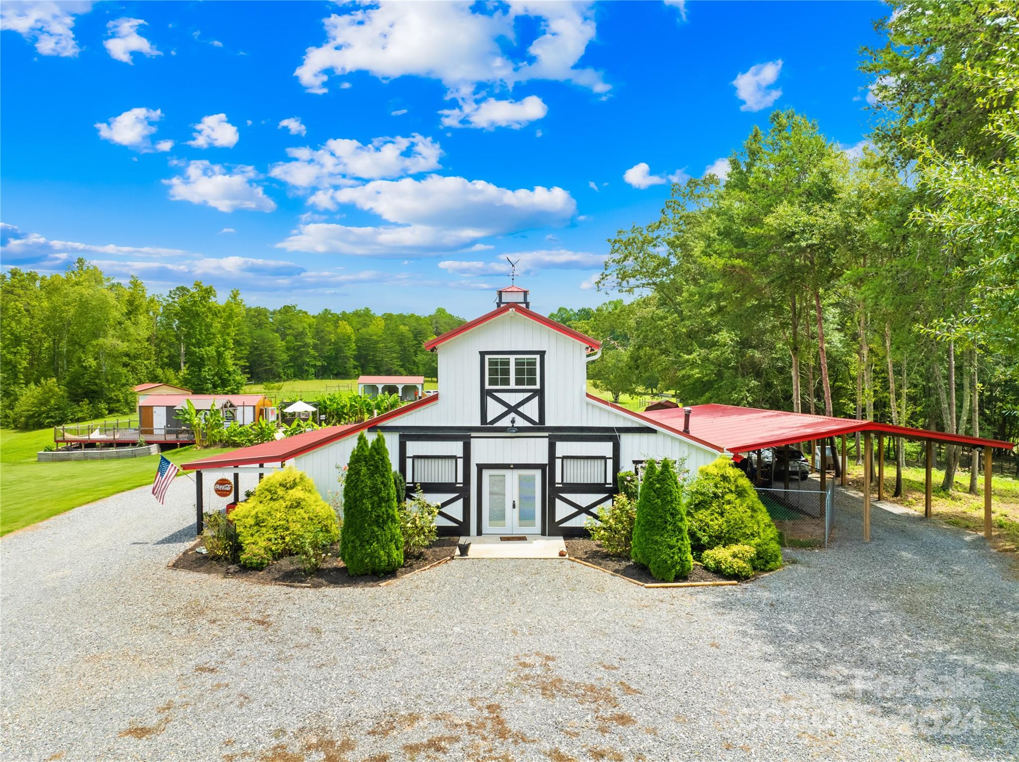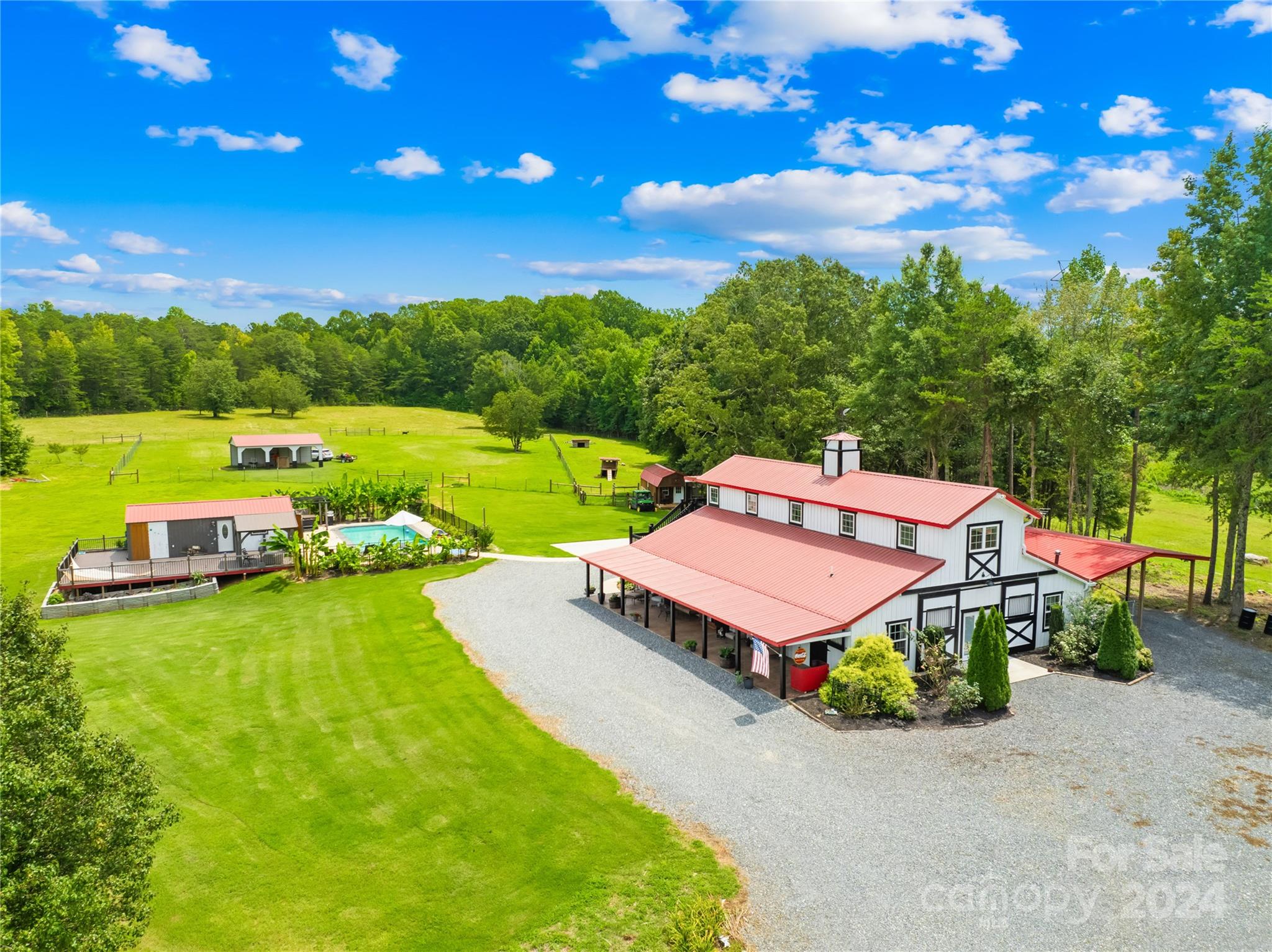 A Beautiful farm house awaits on an amazing 60 acres conveniently located a few miles off of 74 in Shelby NC. A huge Primary suite, secondary bedroom, one large full bath and half bath, spacious kitchen/huge pantry, workshop that is a dream for hobbyists on main level. Upper level has a separate entry with two bedrooms, a full bath, den/kitchen with its own private deck overlooking the land. The outdoor living offers a luxurious pool/cabana/large trex deck for entertaining . Several sheds/barns, fenced pastures , cleared trails , rocky creek make this beautiful property an amazing opportunity to be a working farm, event/camping retreat or an amazing homestead! The covered front porch will allow many guests for fun events & gatherings. This home was once a barn/apartment upstairs and has been converted to a beautiful living space. Located just 35 minutes to Charlotte International Airport/35 minutes to Tryon International Equestrian Center! Agent is owner.