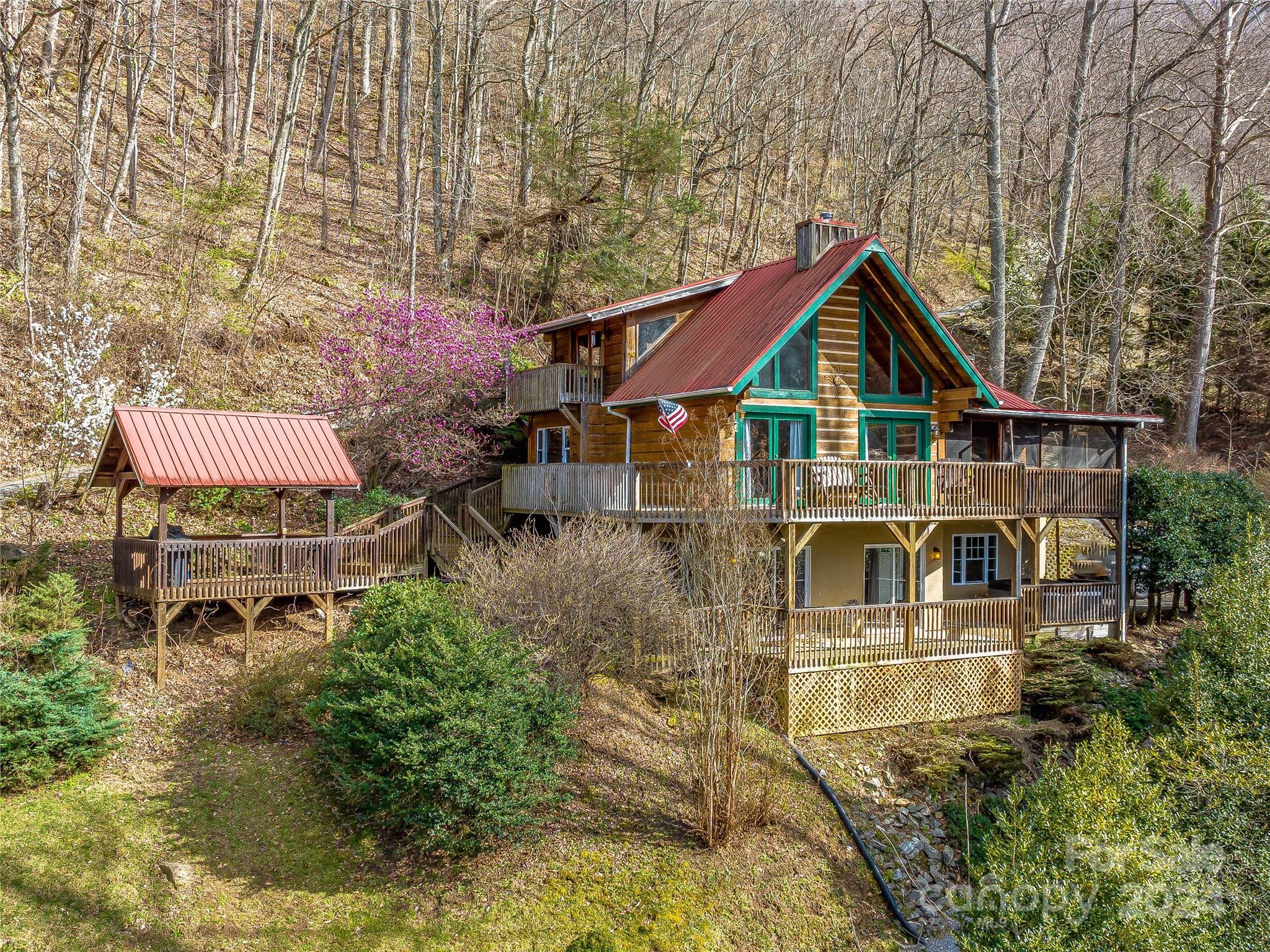 INVESTMENT PROPERTY! 2 Homes on 62 acres with potential to gross $82k-$89k annually AND the acreage could be developed into an incredible glamping destination. Experience mountain living at its finest in this stunning log cabin retreat. Boasting breathtaking year-round views from nearly every room, the 1927 sq ft 2-bed, 2.5-bath home offers a cozy wood-burning stove, vaulted ceilings, and a charming loft that sleeps 4 above the living room. The master suite features a fireplace, vaulted ceiling, and deck access. Downstairs you'll find the game room with a pool table, a second bedroom, and a full bath. All levels have expansive decks with great views and a hot tub on the lower level deck. The second cabin has 864 sq ft & 2beds/2baths with exceptional views. Act now and you can still choose the finishes. Whether this is a family retreat, full time residence or profitable vacation rental, this picturesque property is where you will make memories that will last a lifetime.