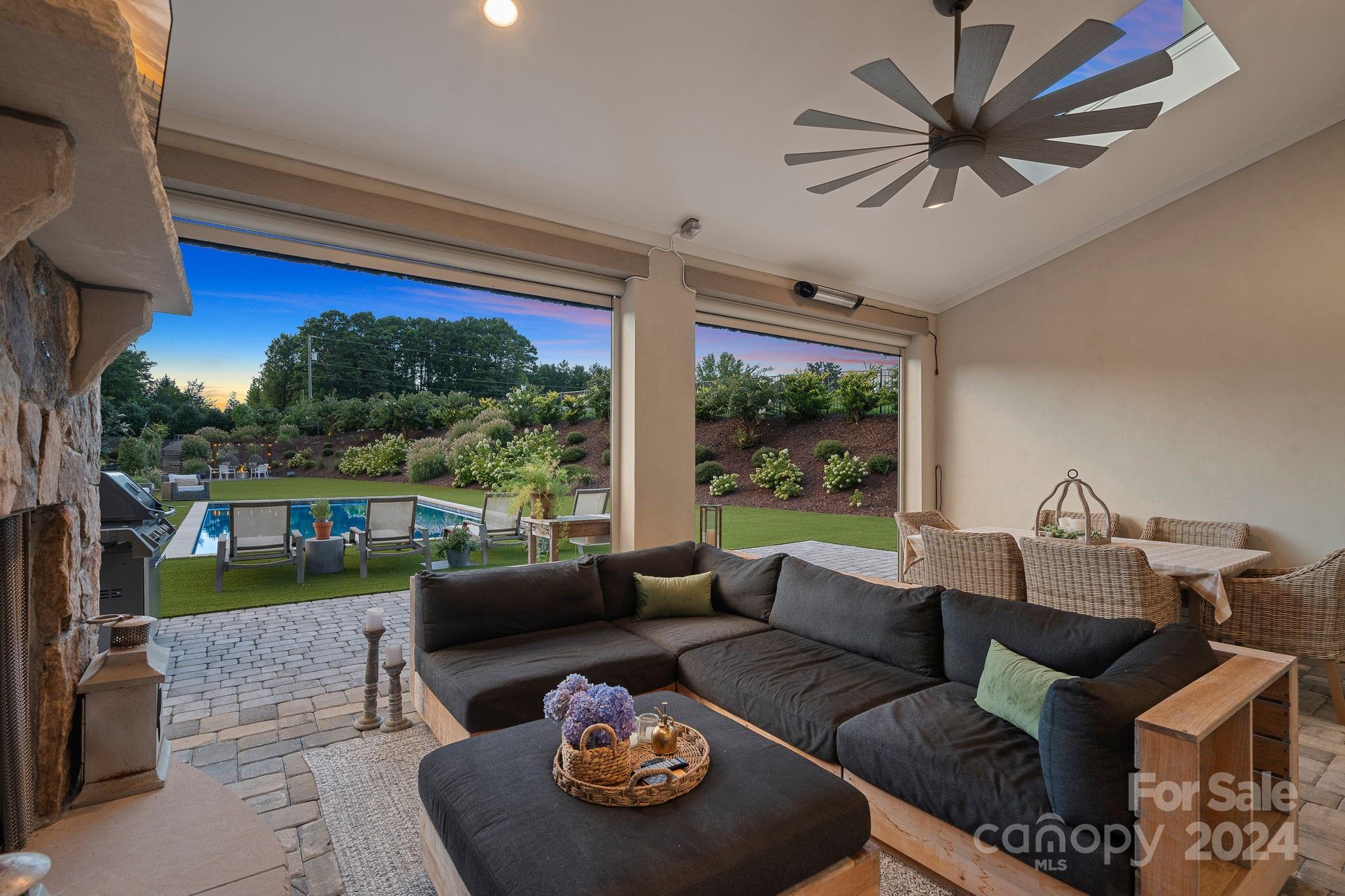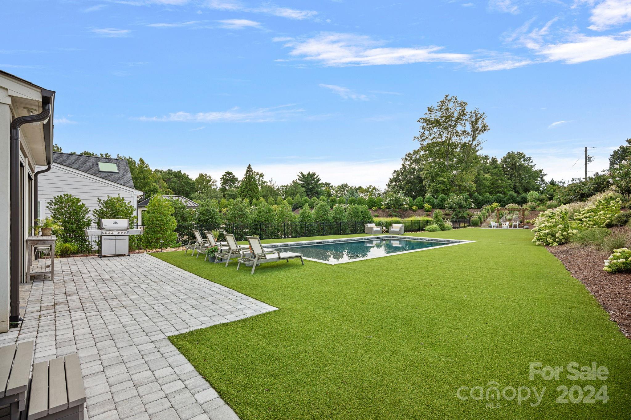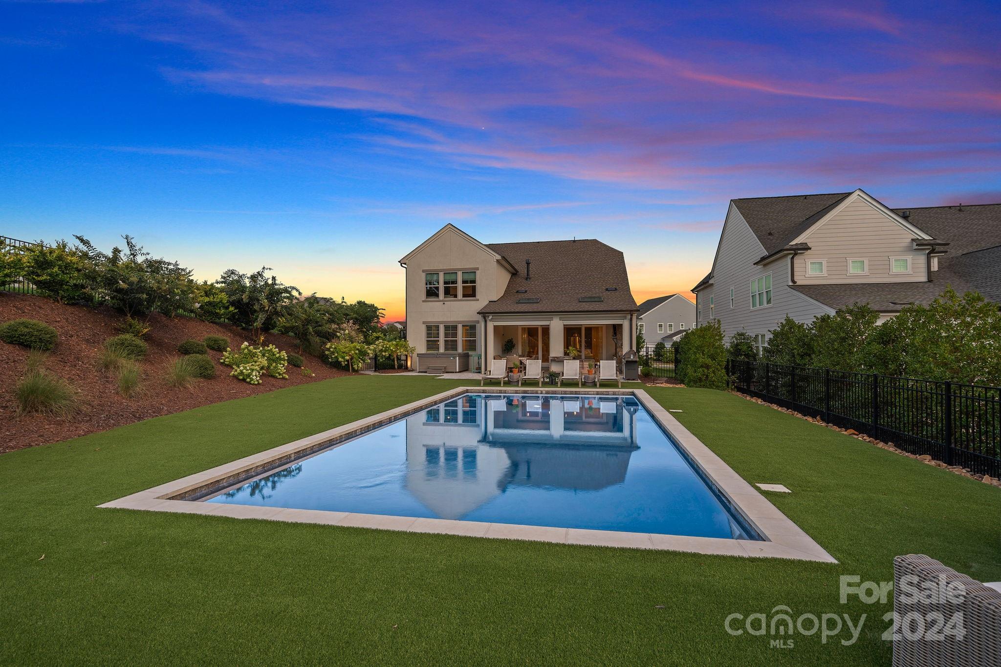 Welcome home to this stunning modern English farmhouse! Prepare to be wowed by the luxurious designer finishes and impeccable attention to detail from the moment you walk in the door. White oak floors lead you through this bright & airy open floor plan featuring a gourmet chef's kitchen with 6 burner gas range, quartz countertops, upgraded soft close cabinets & sizable island which opens into your dining area and spacious yet cozy living room with a striking white brick fireplace. Glass doors open to your outdoor living retreat complete with stone gas fireplace, skylights, automated screens & heaters and overlooks your remarkable oasis with a heated salt water pool, lush landscaping, fire pit & garden and features all premium turf for low maintenance living. Primary suite, office & private guest room with ensuite on main level. Upstairs hosts 2 add bedrooms, 2 baths, flex room, bonus & media room. 3 car garage for added storage. Prime location close to schools, shopping & restaurants.