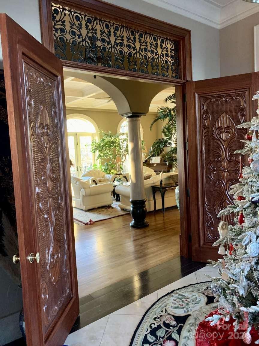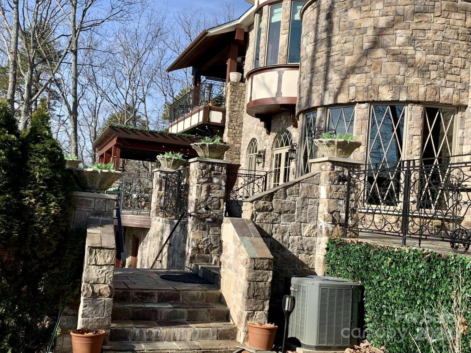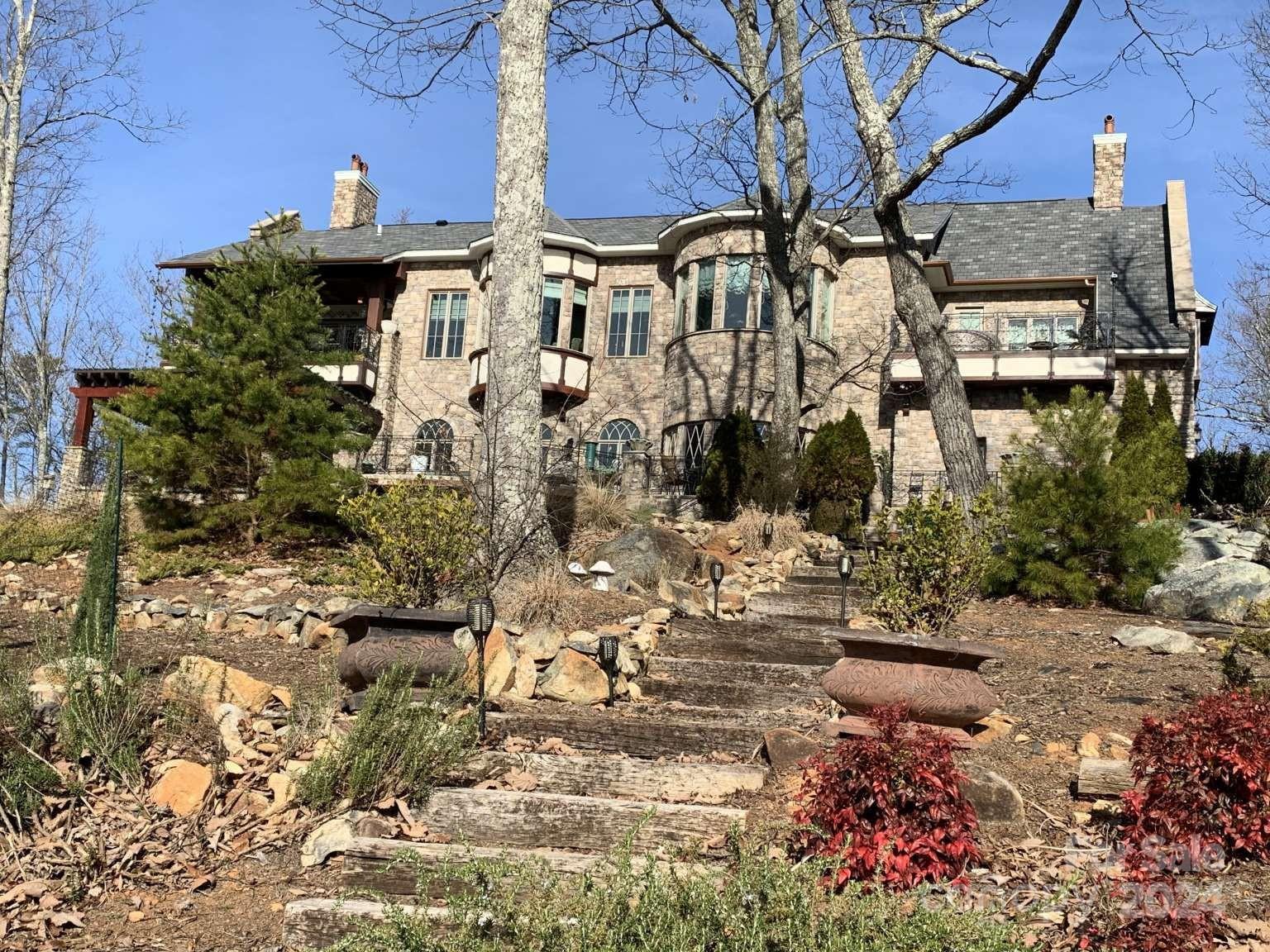 FeatherStone Manor. All Stone home on 14.4 acres in a gated, lake/mountain community. Stunning home with spectacular views of the Yadkin River/Uwharrie National Forest. Magnificent exterior and interior details with custom woodwork and cabinetry, marble baseboards & window sills, decorator designed windows, a lower level rustic wine cellar and wine vault. Three slate floored porches lookout over the southern mountains and river and a large cypress pergola shades the summer sun. Two large front porches offer seasonal views of the lake. There are 5 landscaped levels including fire pit area, putting green and sand trap, small vineyard and target range. All levels are easily accessed by stairs or service drive (golf cart/UTV). Wildlife in abundance. The Springs community offers lake access (High Rock Lake - 2nd largest in the State), boat launch, slips, club house with swimming pool, hot tub, tennis and pickle ball courts. A rare find for the selective buyer. Owner is a broker.