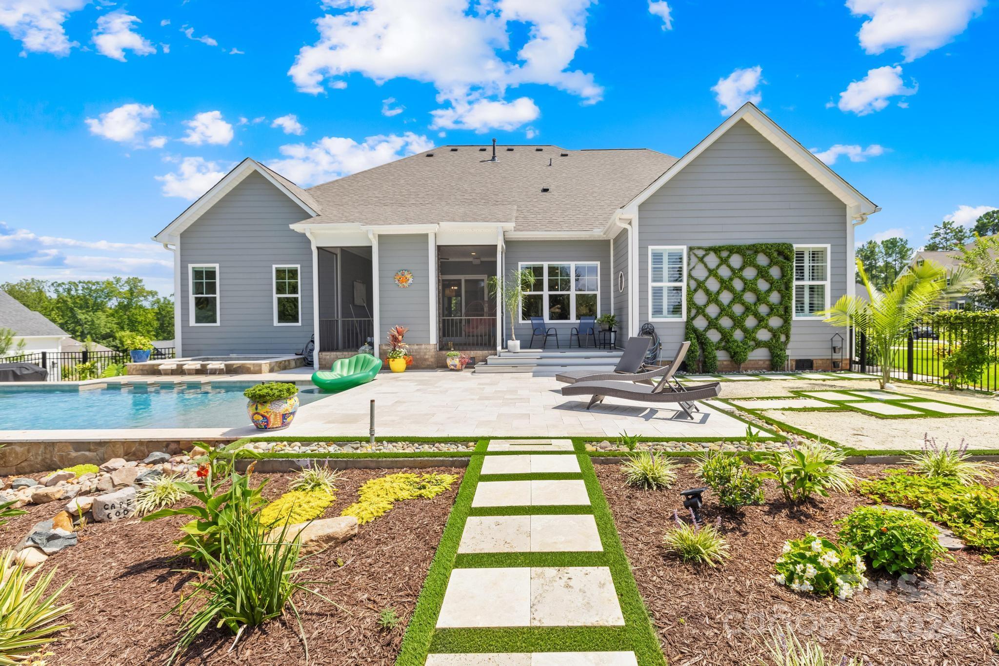 MOTIVATED SELLERS offer this former model home, a true gem in a small enclave of just 16 custom residences with Lake Norman access. This stunning property boasts an open floor plan, highlighting luxurious finishes and beautiful natural light throughout. The gourmet kitchen is a chef's delight, featuring premium SS appls, quartz countertops, and custom cabinetry. Step outside through stacking glass doors to your outdoor sanctuary, where a saltwater heated pool and spa awaits, surrounded by an elegant travertine patio and screened porch with gas FP - ideal for entertaining. This home offers the unique advantage of a low interest assumable VA loan to eligible buyers providing financial flexibility. Located in a vibrant area poised for growth, the future expansion of Hwy 150 promises increased accessibility and future value. Experience the perfect blend of luxury, comfort, and opportunity in this exceptional home, where every detail has been thoughtfully curated for unparalleled living!