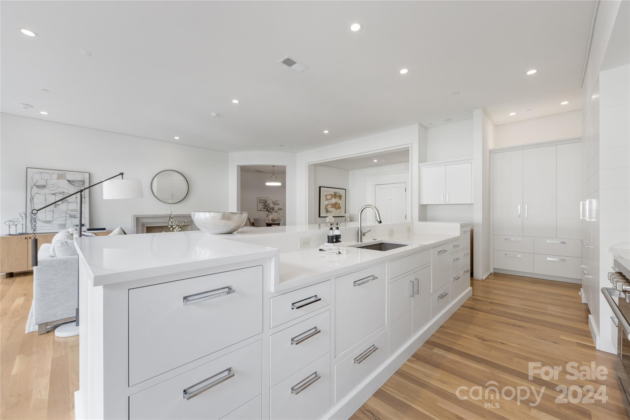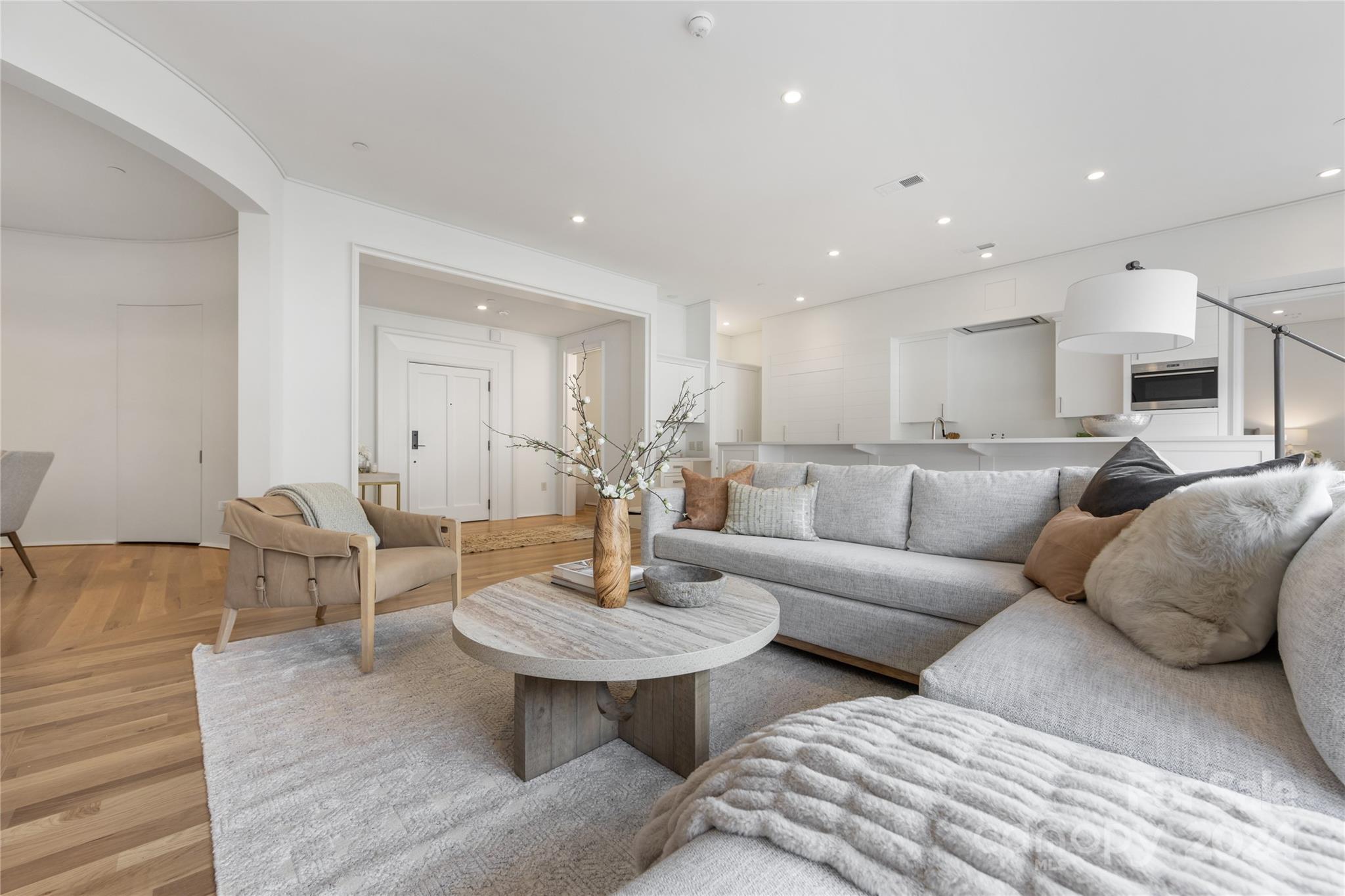 This newly completed condo in Myers Park sets a new standard for luxury living. The 3-bedroom, 3.5-bathroom home features 10’ ceilings, site-finished white oak floors, custom cabinetry, exquisite millwork, and abundant natural light. The sought-after main-level unit boasts a 700 sq ft terrace with easy come and go access. The chef’s kitchen, equipped with Wolf and SubZero appliances, offers an expansive island with storage and bar seating. The great room centers around a gas fireplace with a cast stone surround, flowing into an impressive round dining room. The primary suite, opening to the terrace, includes two walk-in closets and a spa-like bathroom with dual vanities, a walk-in shower, and built-in storage. A laundry room with side-by-side and stackable W/D options, two additional bedrooms with baths, a powder room, and a cozy study complete this stunning home. A collaboration by Brian Speas, Pursley Dixon, and Emily Bourgeois, exemplifying unparalleled design and craftsmanship.
