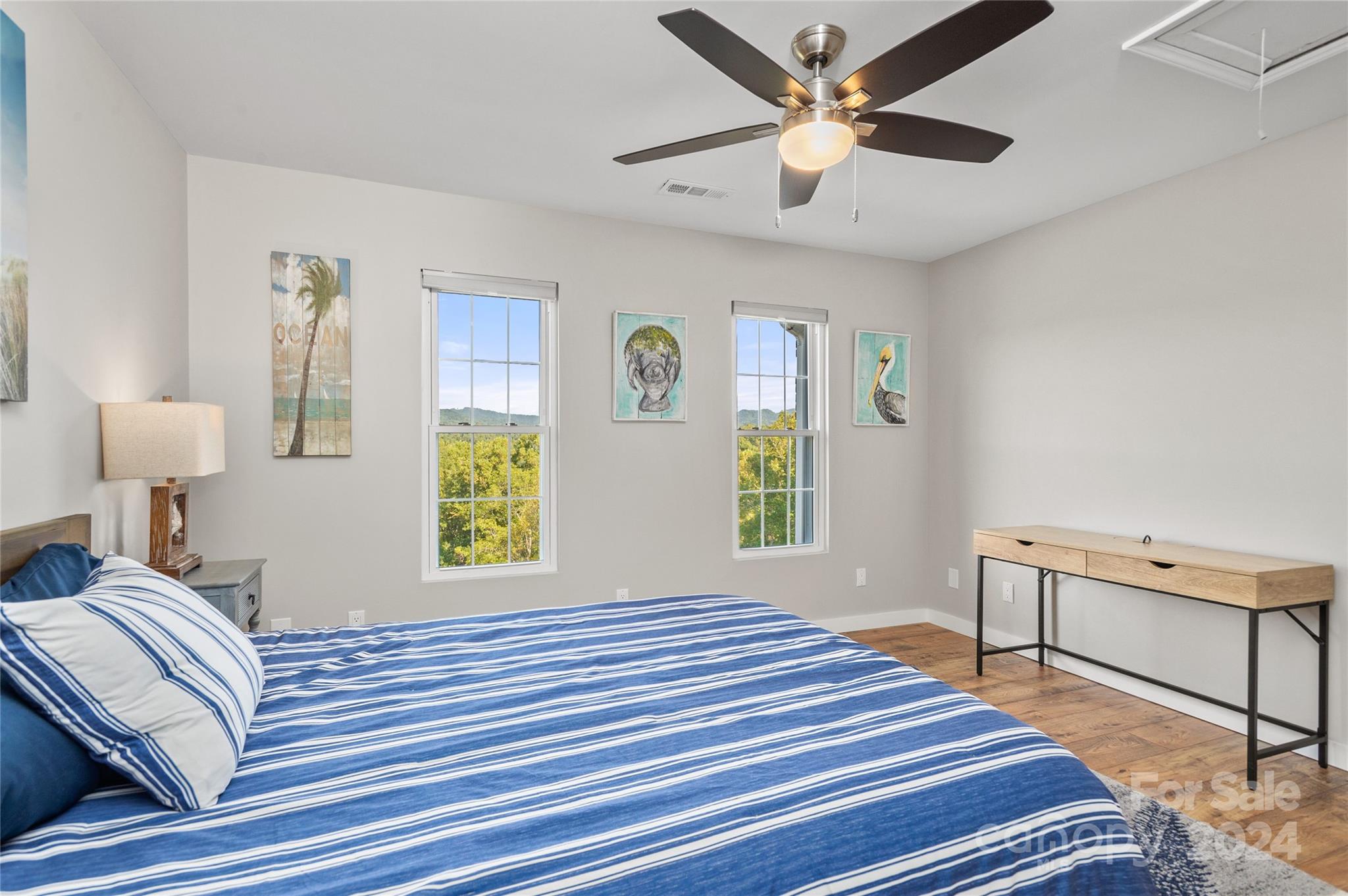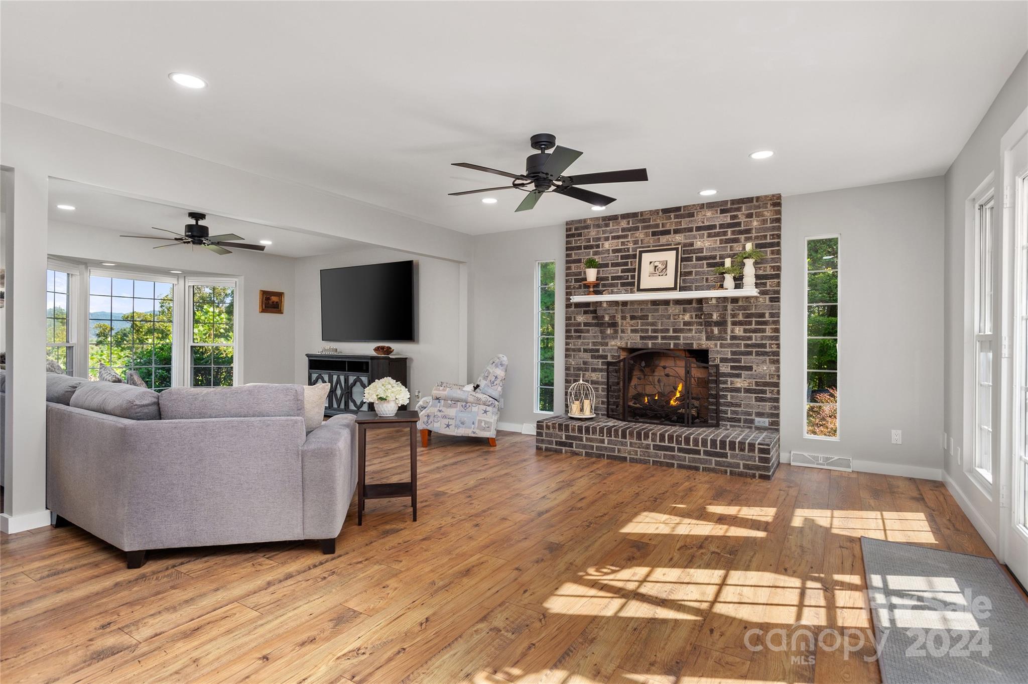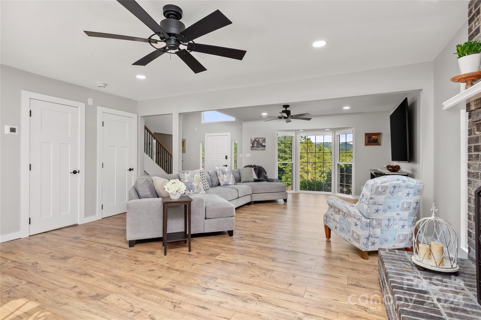 Unscathed by storms! Dreaming of a GRAND home on a hill with breathtaking, long range mountain views, and privacy? Consider this gorgeous brick beauty that is perched upon four plus peaceful acres. What a sense of permanence! In your view shed you'll see only panoramic, long range mountain views and BIG sky! Inside, find extensive, tasteful updates and windows that allow light to pour in for a bright sunny interior. The layout flows fabulously. On the property you'll find a charming two-story hobby barn with three stalls and electricity! No HOA, or restrictions means no one will complain if you get that miniature horse, or baby goat you've always dreamed of! All of this, yet only 25 minutes to Asheville, 8 minutes to Mars Hill, and Weaverville's grocery. pharmacy, shopping (Publix, Lowes, Walmart, Hobby Lobby, Marshall's) and many restaurants are about 10 minutes away! So much convenience, and yet a world away from the hustle and bustle of ordinary life! Fiber internet connectivity!