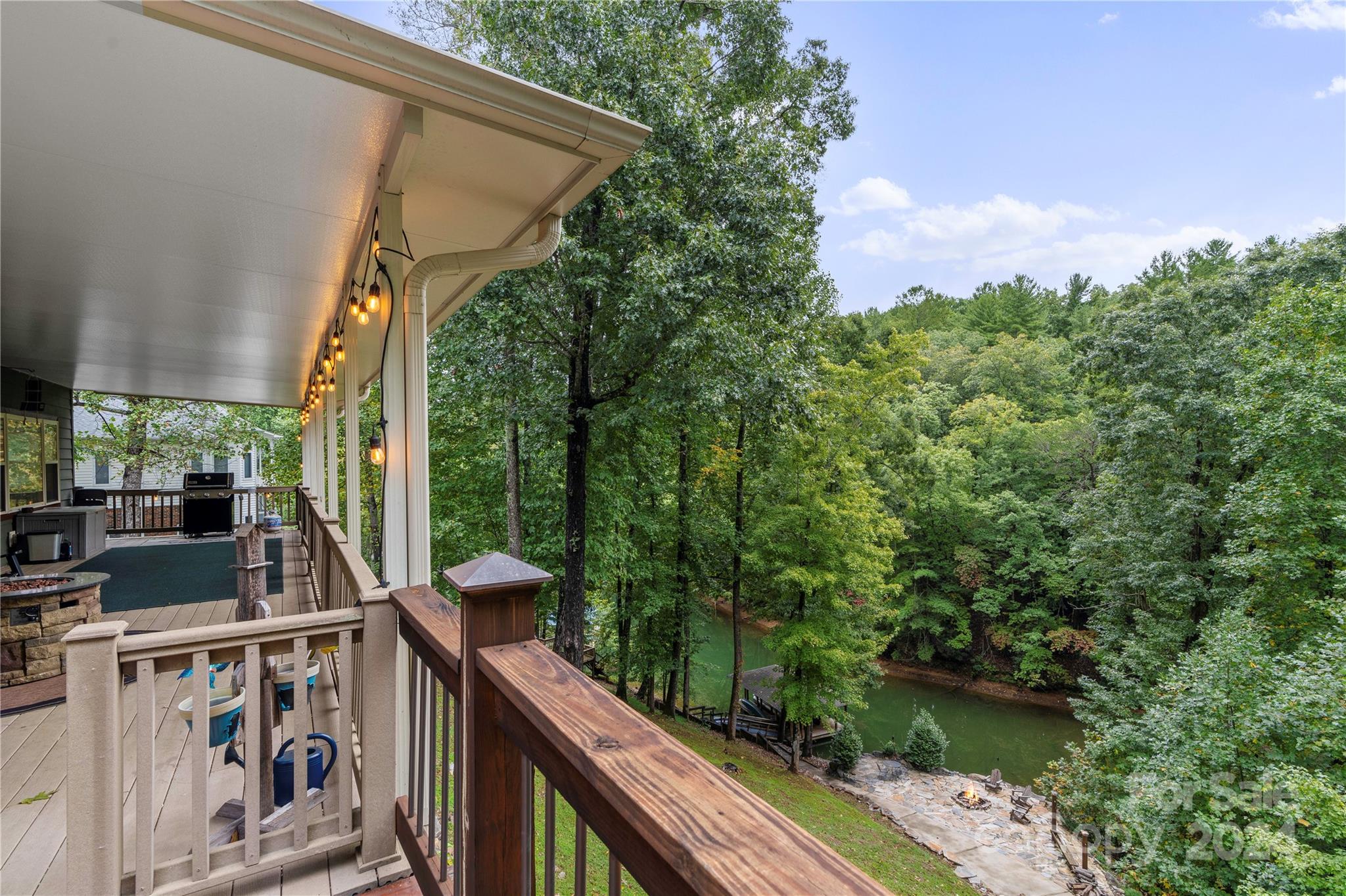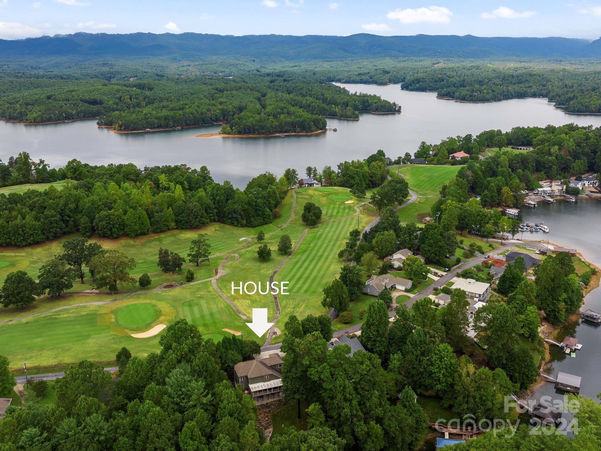 Embrace the ultimate lakefront lifestyle in this extraordinary luxury home nestled across from a scenic golf course with long-range mountain views and a tranquil lakeside cove and flagstone firepit in the back. With over 5,000 sf of living space spread across three levels, every inch of this home exudes top-tier craftsmanship and thoughtful design. The grand entrance leads into a bright, open layout, featuring a gourmet chef’s kitchen and primary suite on the main level. The upper-level hosts additional primary suites, ensuring everyone enjoys five-star comfort. The fully finished basement includes a second living area, ideal for multi-generational living or hosting extended guests. Expansive outdoor spaces invite you to unwind with a large covered back deck and lower-level patio. Paved golf cart access leads directly to the private covered dock. Whether boating, fishing, or enjoying the serene beauty of the lake, this home is your gateway to a life of waterfront relaxation!