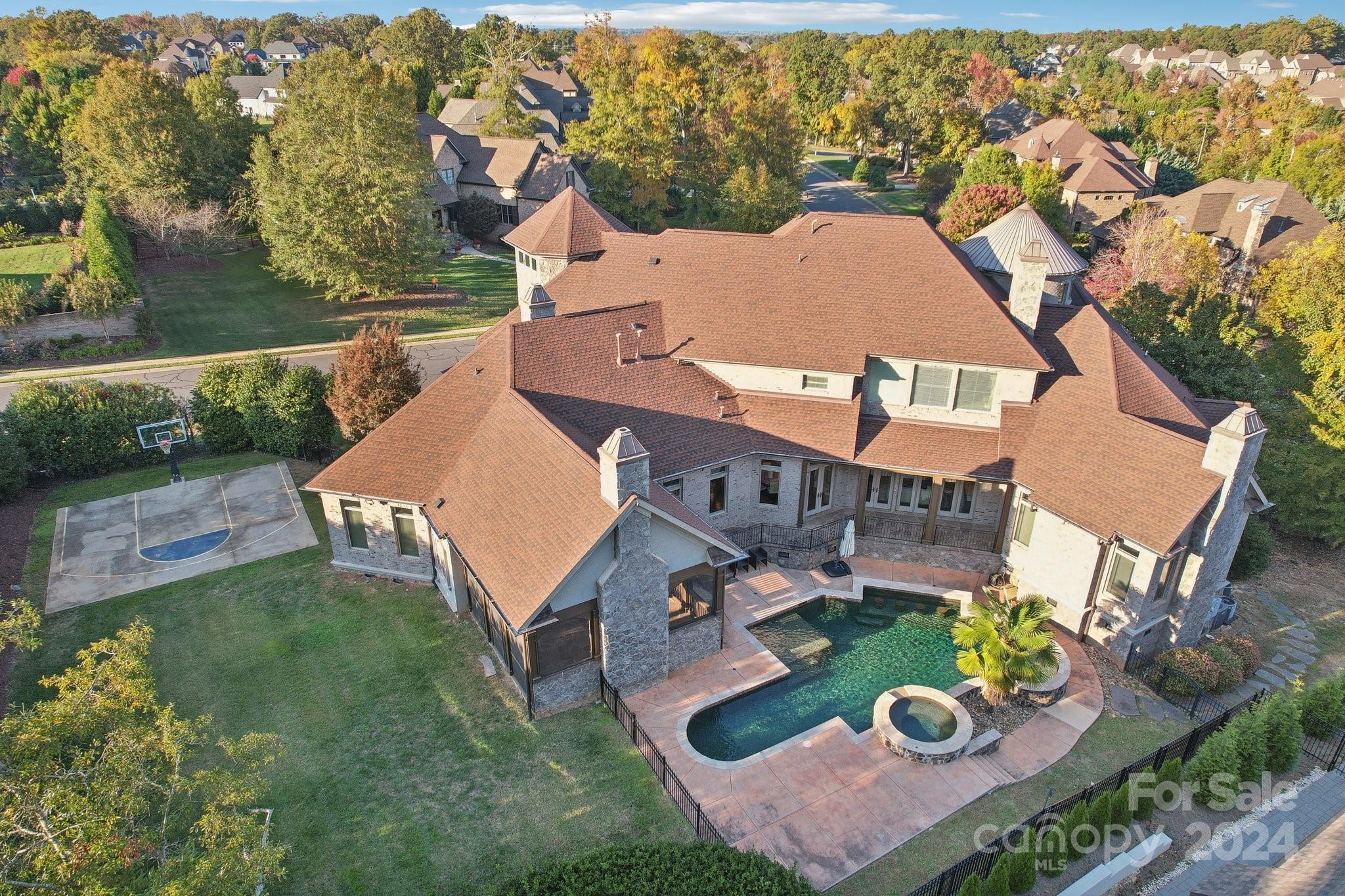 This exquisite property in highly sought after Providence Downs South is more than just a home; it's a lifestyle experience that must be seen to be truly appreciated. Step into the heart of the home and be captivated by the gourmet kitchen, featuring high-end appliances and an expansive pantry that will delight any chef. The luxurious master retreat and executive office are showstoppers, while the wine cellar and movie theater offer unparalleled entertainment options. Outside, you’ll find a beautiful screened porch with a built-in grill station. The backyard oasis continues with a sparkling pool, hot tub, and custom basketball court, providing endless recreation and relaxation opportunities. Practicality meets luxury with ample storage throughout the home and laundry rooms conveniently located on both the main and upper levels. Your new luxury retreat in Providence Downs South awaits. Come experience this extraordinary home in person! This home also has a 364sf bonus room.