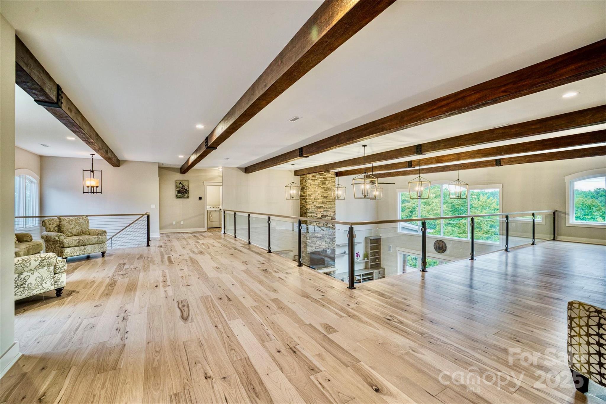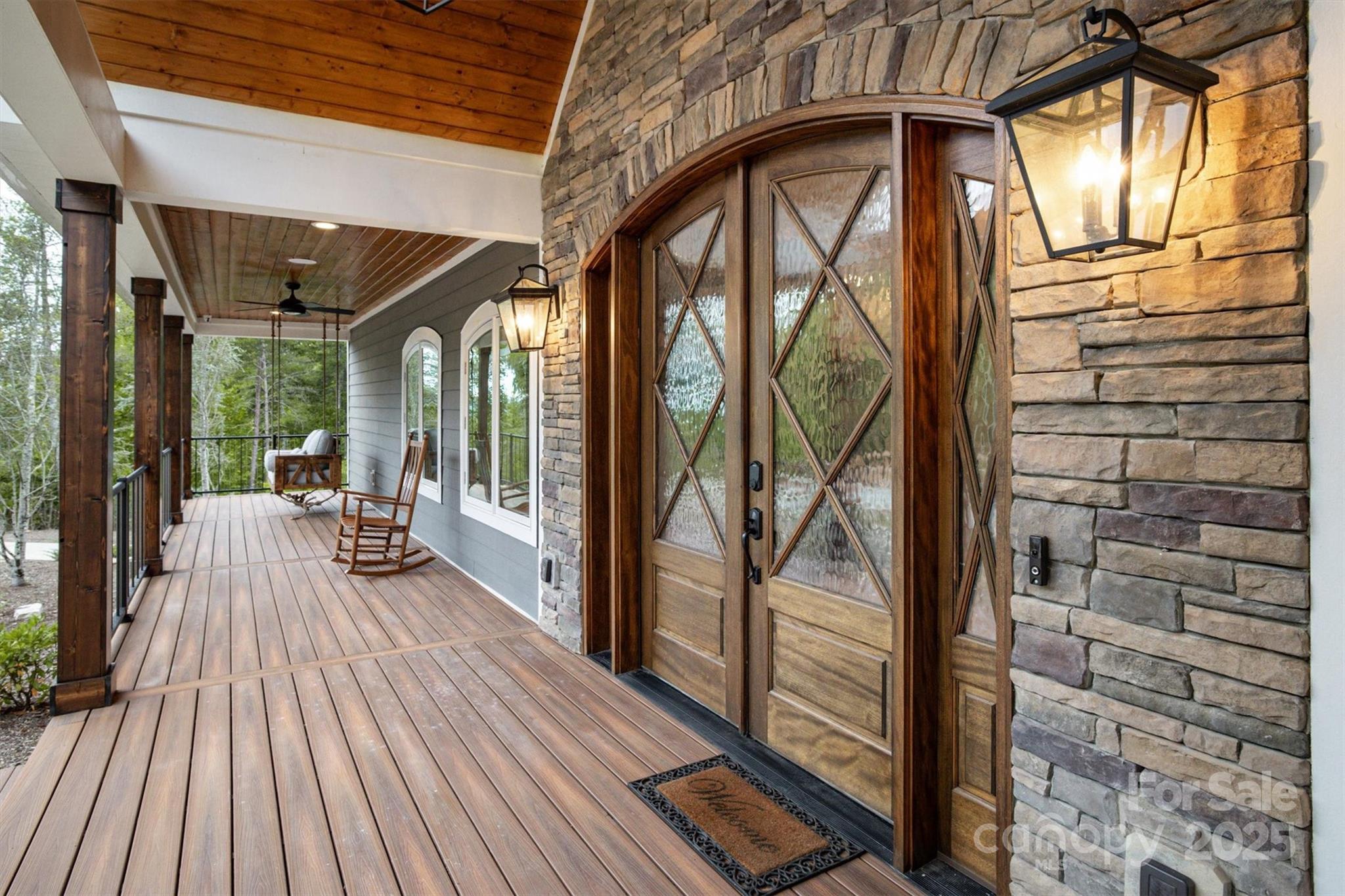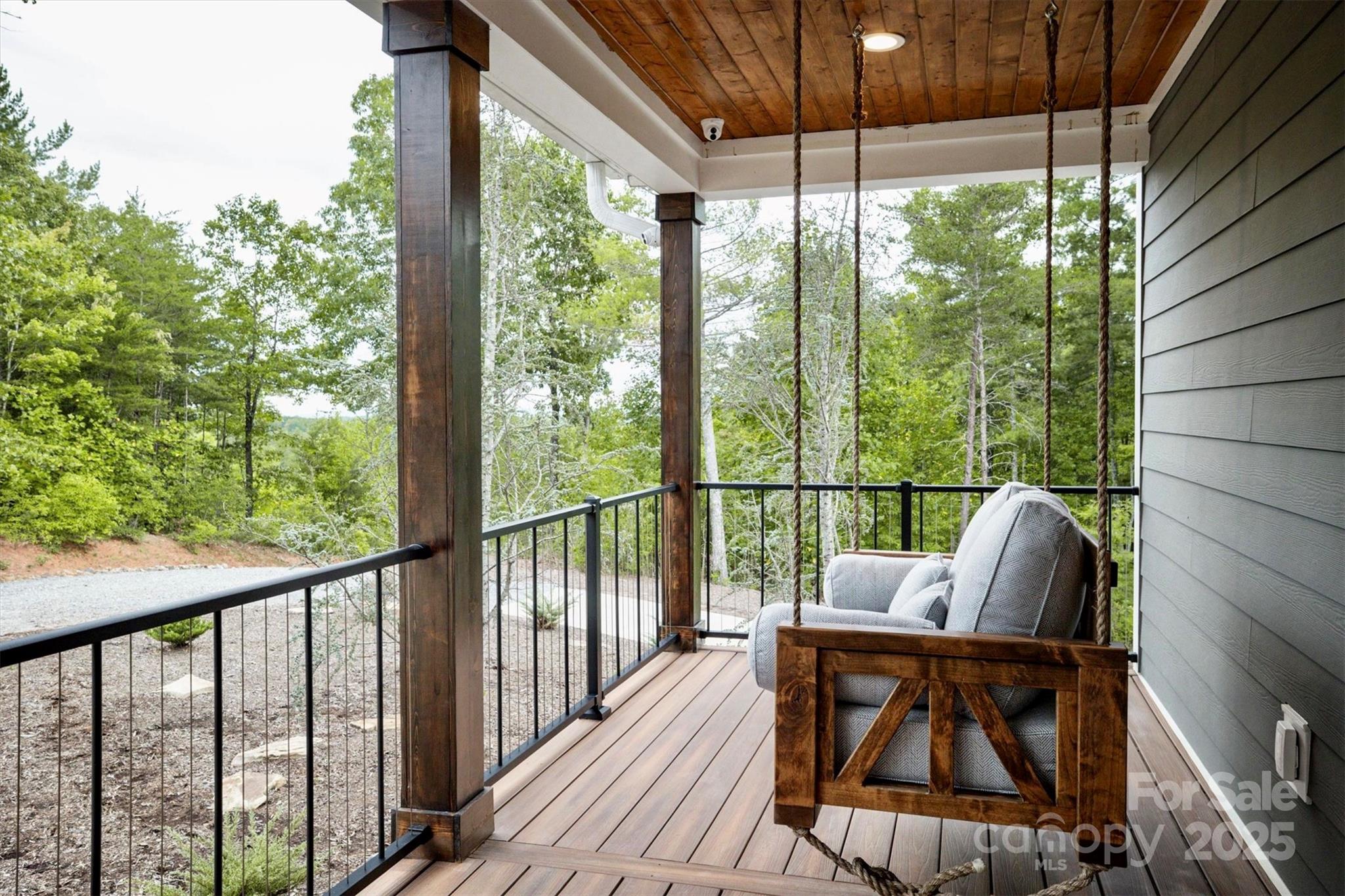 On a 25 acre Blue Ridge Mountain private sanctuary is a stunning modern home, meticulously planned and built for luxury living and memory making. Beamed ceilings soar over floating oak stairs and 2 story stone fireplace. Walls of windows and mahogany French doors frame views of surrounding landscape, including Table Rock Mtn. Barely lived in, available furnished w/top of the line appliances, furnishings, linens, etc. Front and back porches and decks. Kitchen, butler pantry, and wet bar are an epicurean dream. Primary BR w/luxury Spa Bath, wet room, steam shower, soaking tub, heated floors + towel racks, 2 WICs, laundry room. Upstairs: 2nd primary BR, 3rd BR, 2nd laundry and full BA. Multiple bonus rooms. Elevator. Poured concrete foundation. 3,756 sq ft walkout basement with 1/2 bath is heated and cooled and is not counted in Heated Living Area. At The Coves Mountain River Club, a 3,200 acre active lifestyle gated community. See home’s website for details of home and community.
