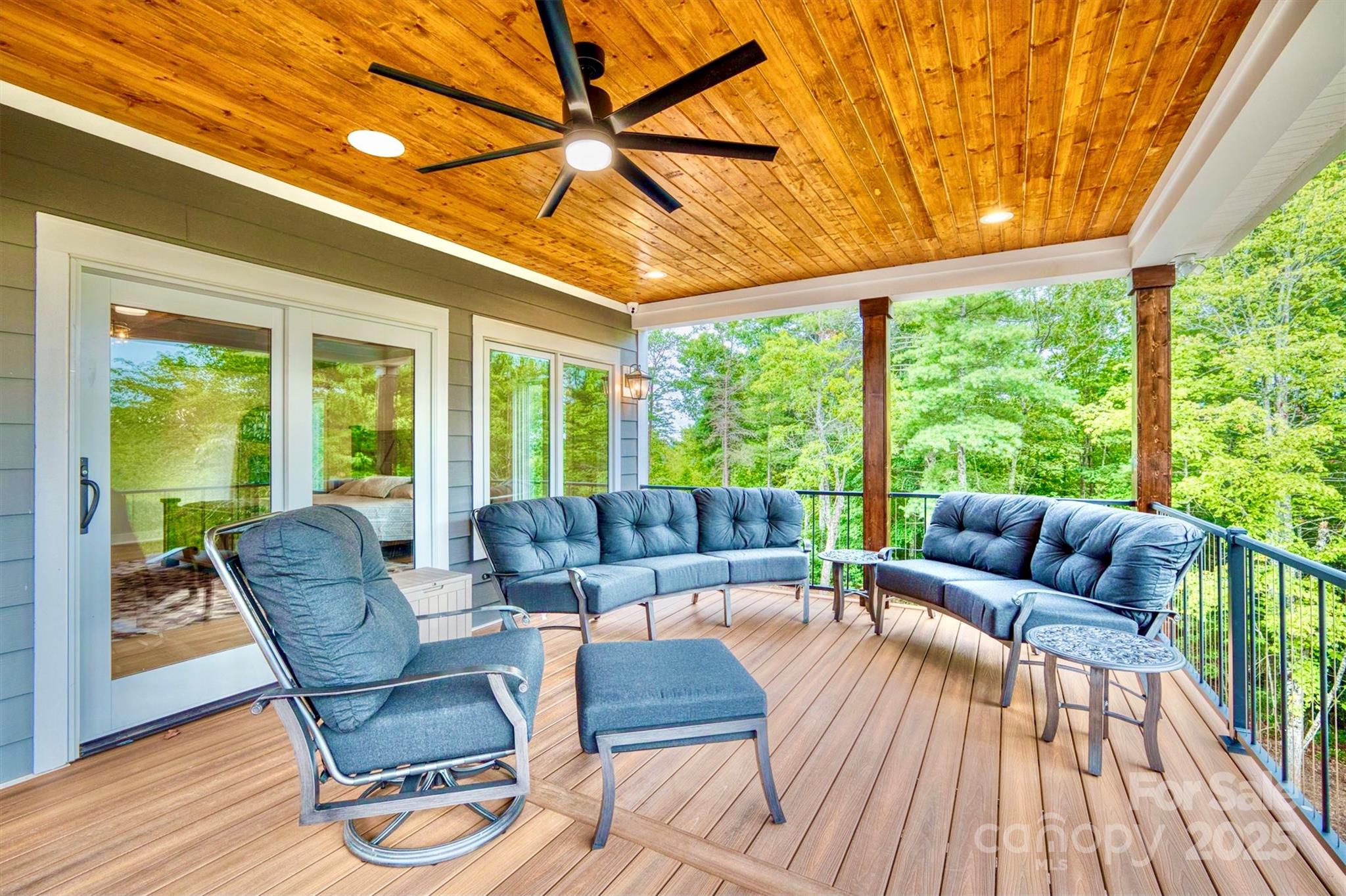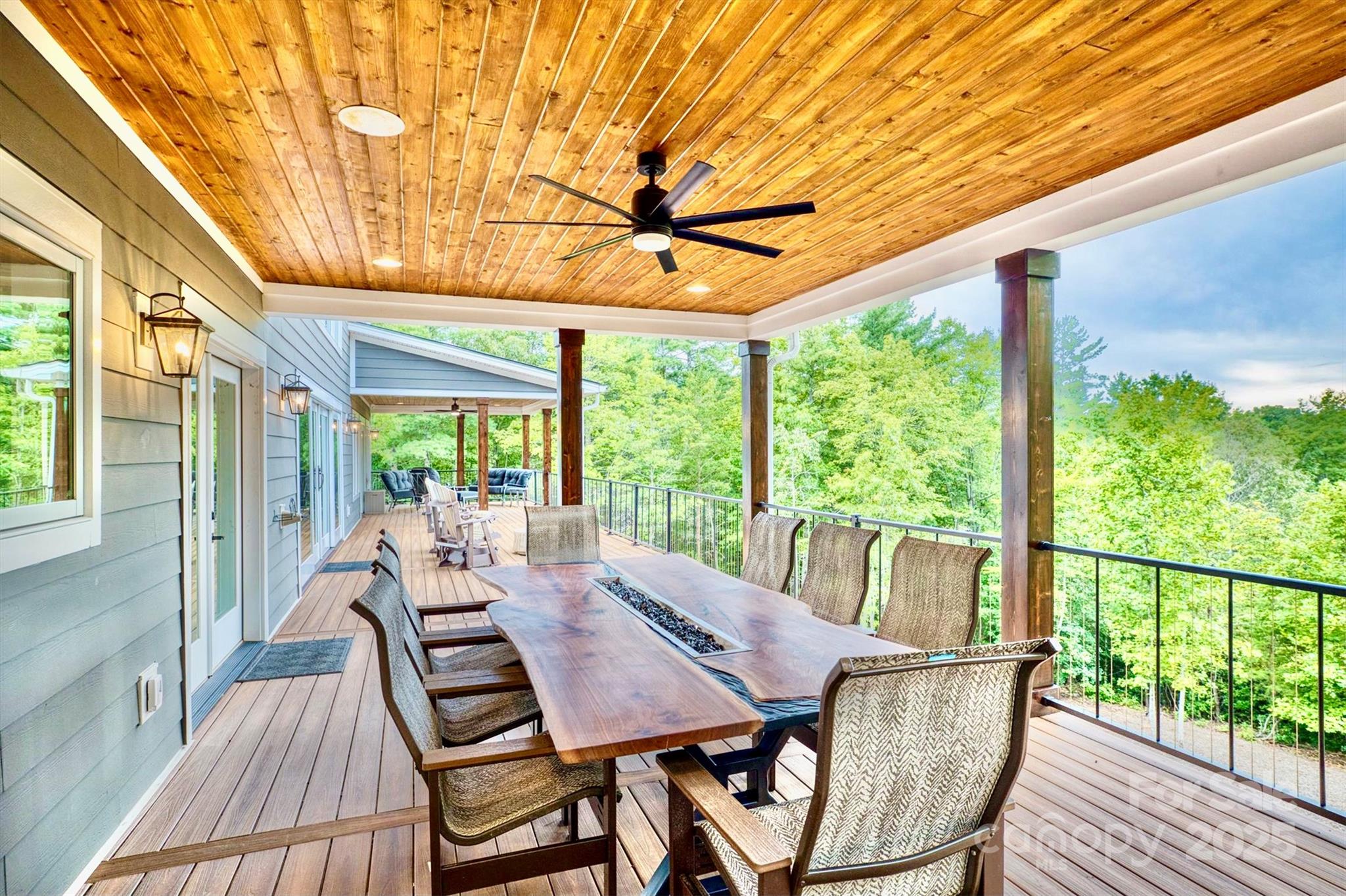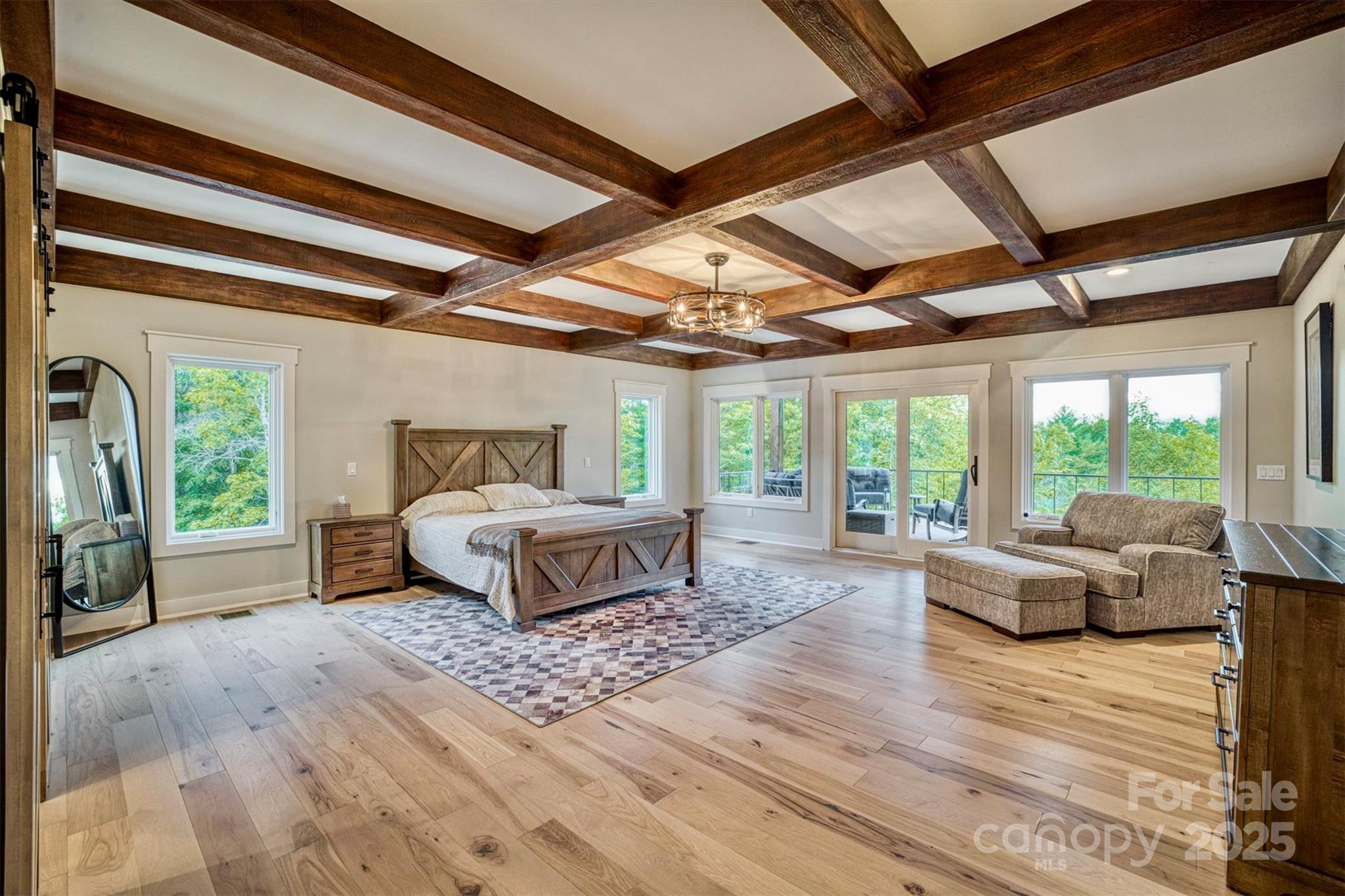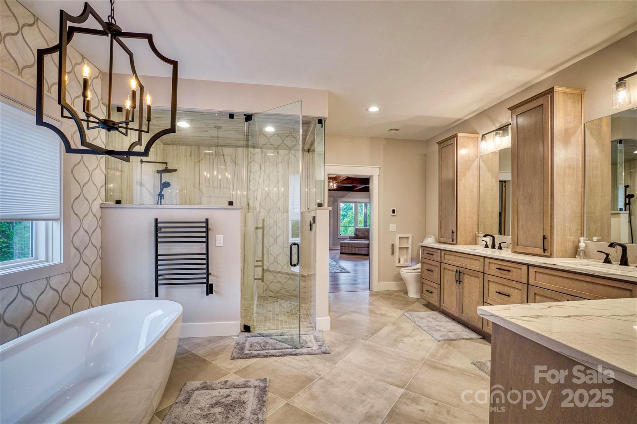 On a 25 acre Blue Ridge Mountain private sanctuary is a stunning modern home, meticulously planned and built for luxury living and memory making. Beamed ceilings soar over floating oak stairs and 2 story stone fireplace. Walls of windows and mahogany French doors frame views of surrounding landscape, including Table Rock Mtn. Barely lived in, available furnished w/top of the line appliances, furnishings, linens, etc. Front and back porches and decks. Kitchen, butler pantry, and wet bar are an epicurean dream. Primary BR w/luxury Spa Bath, wet room, steam shower, soaking tub, heated floors + towel racks, 2 WICs, laundry room. Upstairs: 2nd primary BR, 3rd BR, 2nd laundry and full BA. Multiple bonus rooms. Elevator. Poured concrete foundation. 3,756 sq ft walkout basement with 1/2 bath is heated and cooled and is not counted in Heated Living Area. At The Coves Mountain River Club, a 3,200 acre active lifestyle gated community. See home’s website for details of home and community.