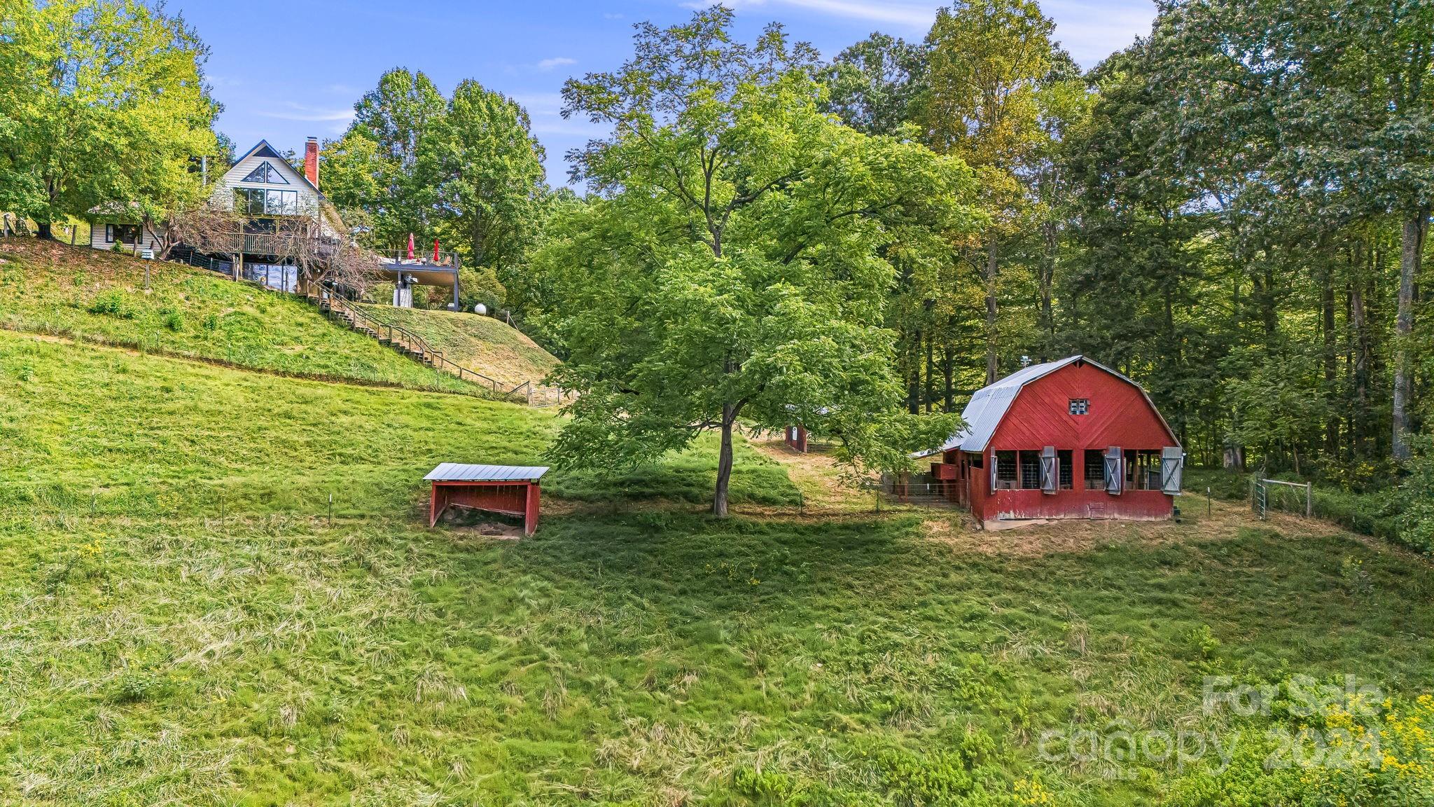 Spectacular homesite and 12 acres sits ready for the next owner to fulfill their NC farm dreams. Enter the property from rural NC-80 on the gentle gravel drive and the home sits 800 feet from the road. This picturesque farm has all the best features land owners look for including fenced pastures, 2 fully functional 2 story barns with water and 1 with power, roofed tractor storage, greenhouse, tack room, multiple lean to's, sheds and a spring fed pond. Property has 2 redundant wells, one for the home for the farm. The home is a '89 built 1.5 story with 1300sf basement garage and workshop with woodstove. Excellent passive heating and pine wood ceilings in the loft and living room. Hardwoods throughout. Geothermal heating and cooling keep utilities efficient. Fresh paint in and out and recently stained deck. Kitchen completely remodeled and roof replaced in 2012. Certified Dark Sky Area and Glen and Planetarium/Observatory is 3 miles from these house. VIDEO: https://youtu.be/dSRf2A9EJK8