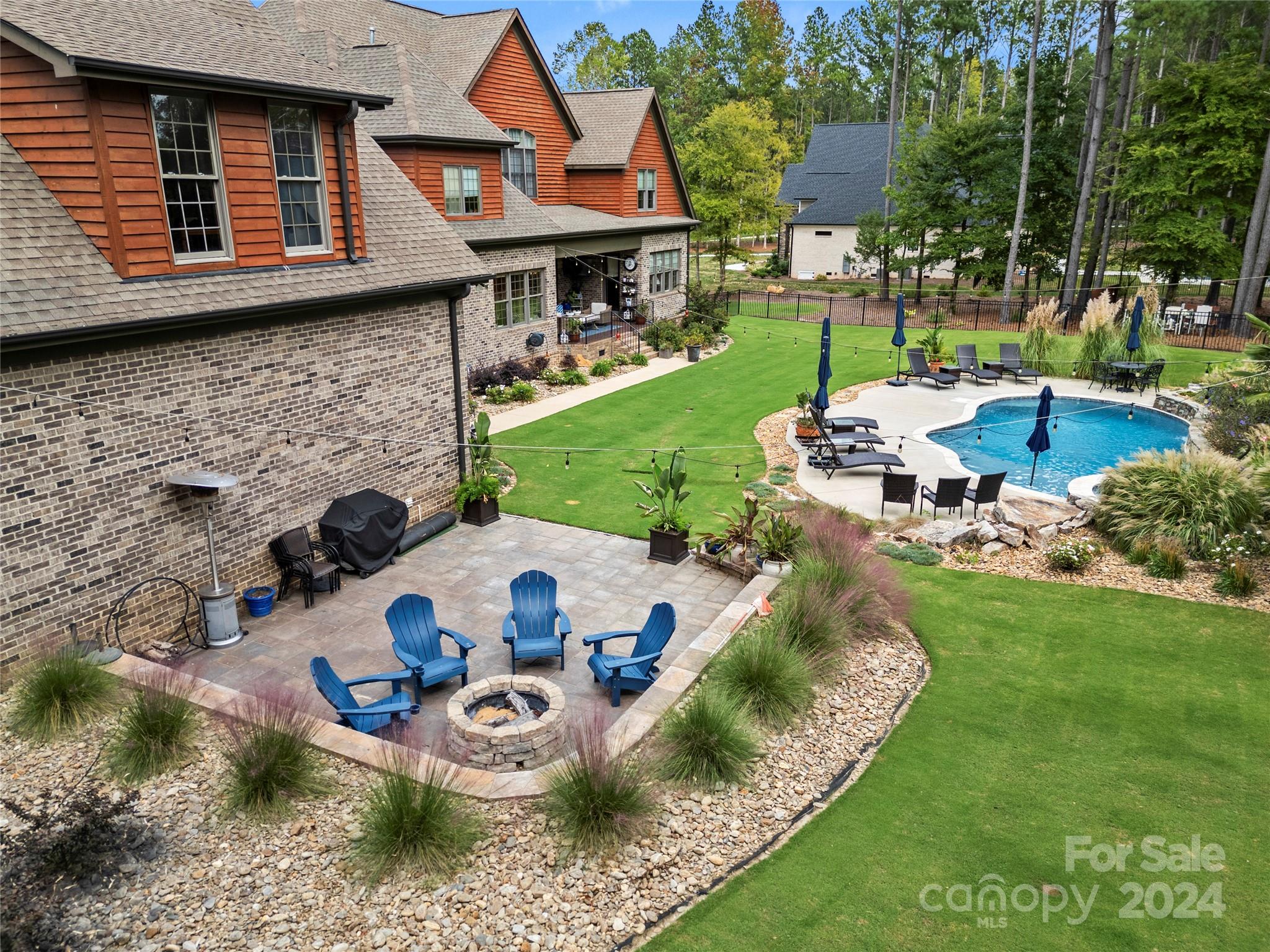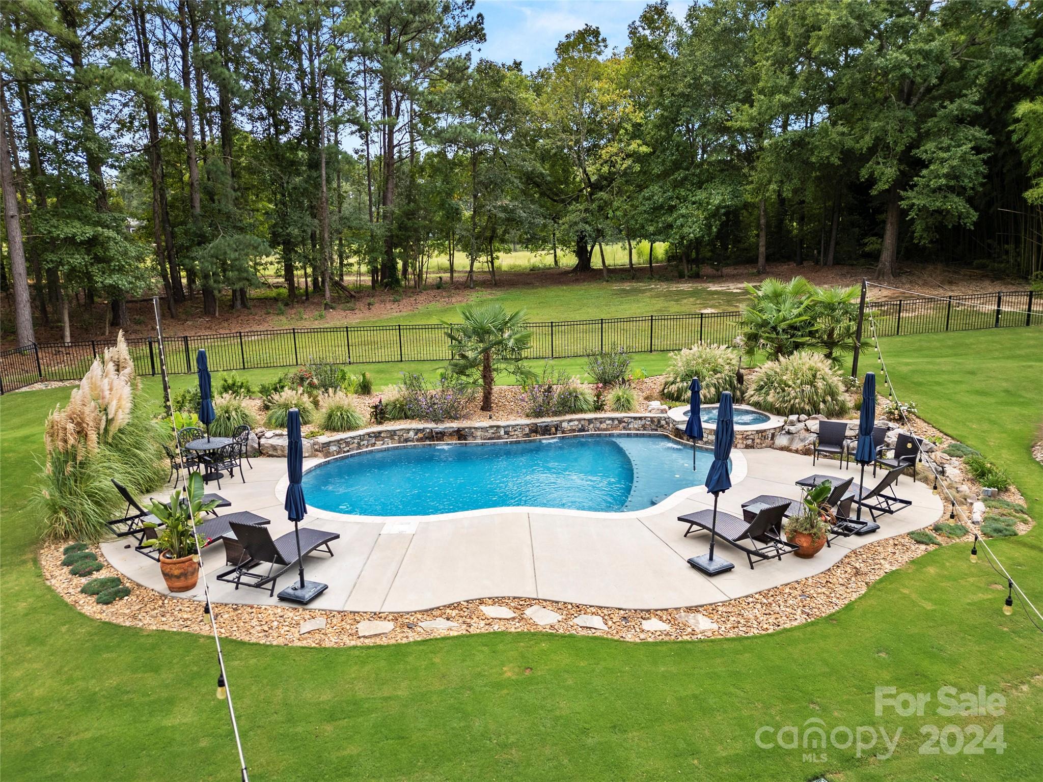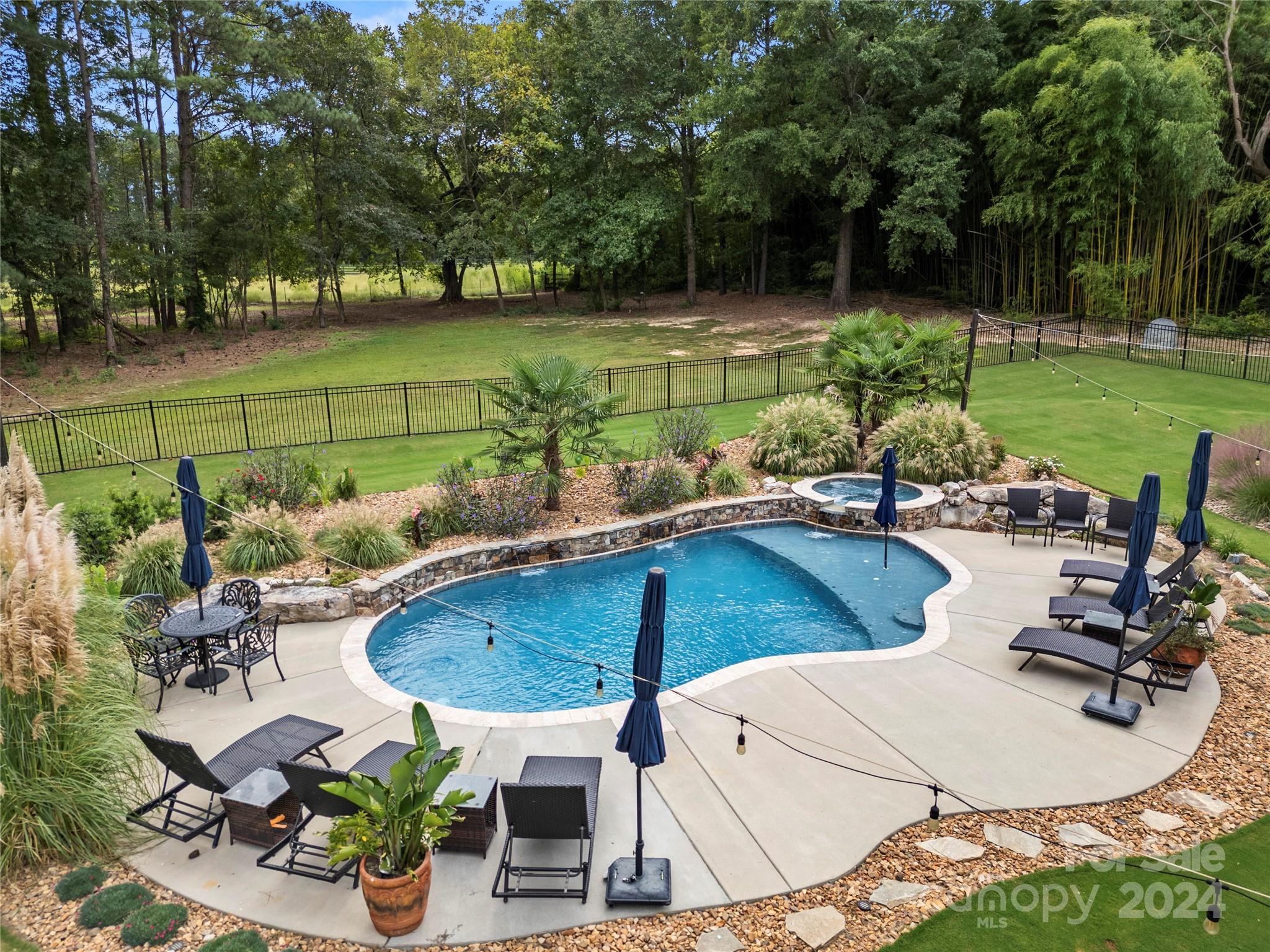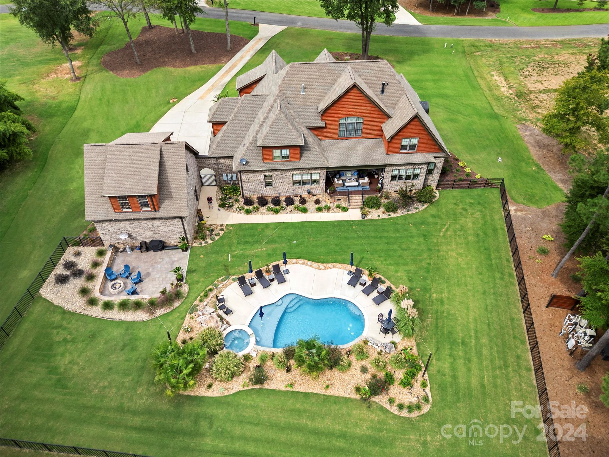 Gorgeous Tudor Estate with exceptional features in Irongate! Open floor plan with rich hardwood floors throughout the main living areas. Great room features a beautiful, coffered ceiling, stone fireplace, and custom built-ins. The kitchen includes a center island, granite countertops, gas cooktop, and tile backsplash. Luxurious primary suite on main. Primary bath has jetted tub, double vanities, and huge walk-in tiled shower. Tons of space on the second level! Bonus room plus a fully equipped media room with fireplace, wet bar and wood floors. 3 car attached garage, and 2 car detached garage with EV charger. 2nd living/guest space over the detached garage is complete with a full bathroom and large bonus room. Step out back to your private oasis with luxury pool, lush landscaping and covered patio w/ built-in firepit. This stunning home sits on a private 1.7 acres. Gated community with equestrian facilities, walking trails, and a pond. Don't miss your chance to own this one!