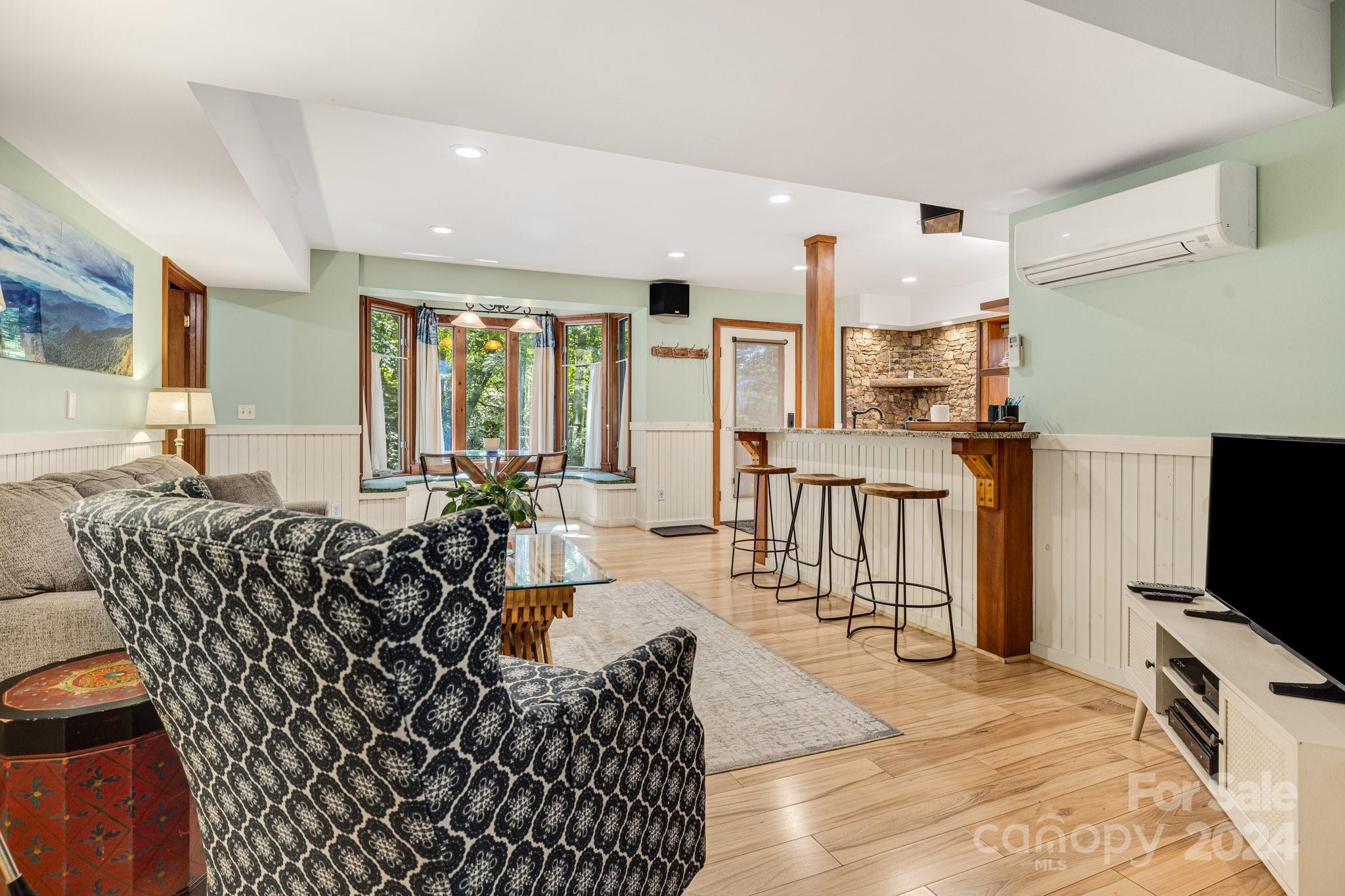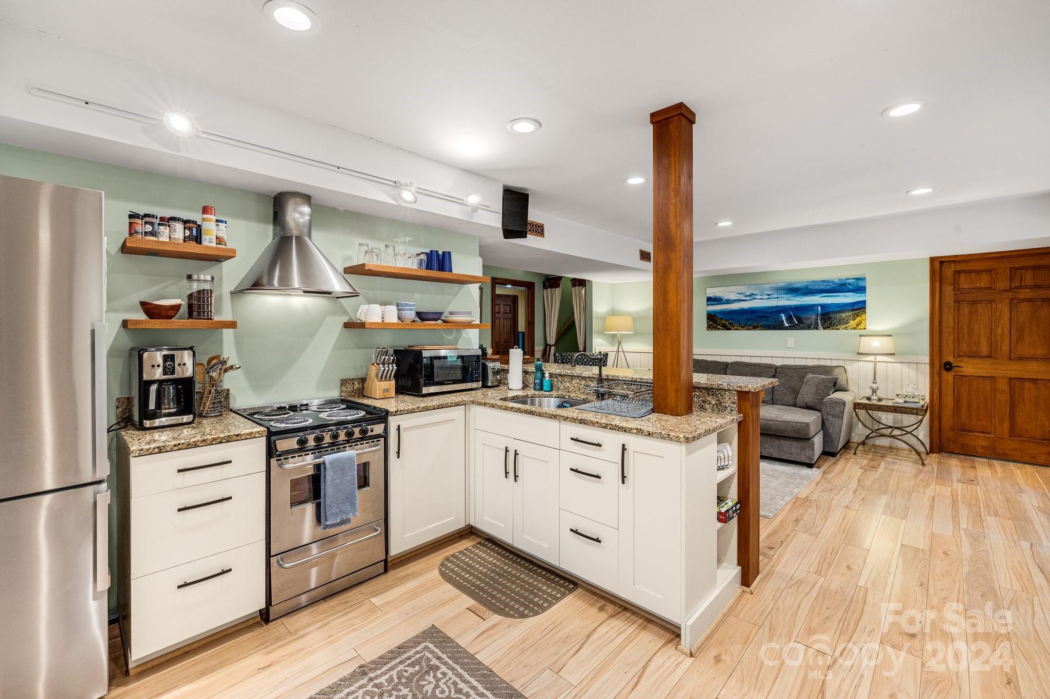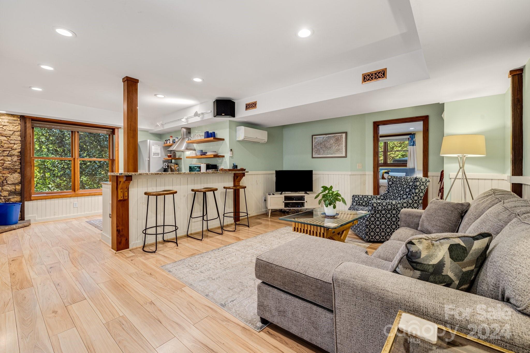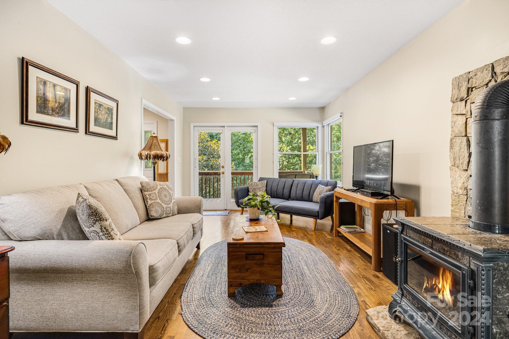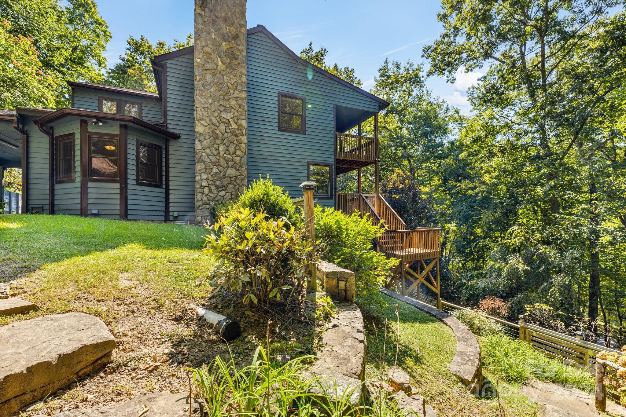 Living amongst the trees in this beautiful 3 BR/4 BA home+Bonus Room+2nd living quarters in the basement w/outside&inside entrance.Sizable kitchen/dining area with tile floors & natural light. Picturesque main level living room w/stone hearth & wood stove. Roomy Primary BR/BA located on the main level. Primary BA has claw foot tub, shower, and laundry closet. Step away to relax in the stylish upstairs loft w/wood vaulted ceilings or step out on the 2nd level deck for some cool mountain air. Beautiful hardwood floors in the primary, main level living room, upstairs loft, and upstairs bedrooms. Invite your guest to stay in the spacious 2nd living quarters~Lovely kitchen w/ granite counter tops & stainless steel appliances. Cozy family room. Large bonus room & luxury bathroom with tile shower.Multiple outdoor spaces include upper and main level decks, patio, and gazebo. Great walkable neighborhood & 5 mins drive to downtown Black Mtn. Currently used as an STR. See list of renovations.
