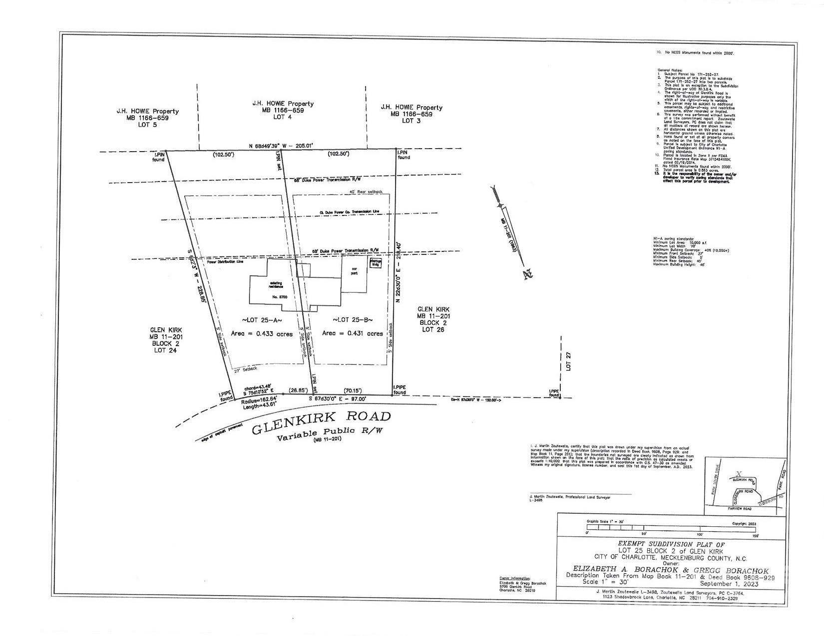 Great SouthPark Location! Heavily wooded lot on cul-de-sac can be divided into two .433 acre lots, offered at $550,000 each. Purchase one or both! Subdivided site plan and house renderings of two proposed homes and floor plans are in listing photographs. City water and sewer available at the property. Seller financing offered at 5.75% APR simple interest with 10% down for 3 year term giving ample time to finalize your house plan. Subdivision is approved by Charlotte Unified Development Ordnance (UDO) contingent on the removal of the existing house. If purchaser desires one .433 acre lot, seller will retain ownership of the other lot reducing the listing price by $550,000 to $1,200,000 for house and lot. Call listing agent to discuss details on the subdivision process. Listing price of $1,750,000 for proposed home includes the entire property of .85+ acres. Home priced by Stratx Construction Company, Juan Plasencia ,President. Buyer is not restricted to building with any one builder.