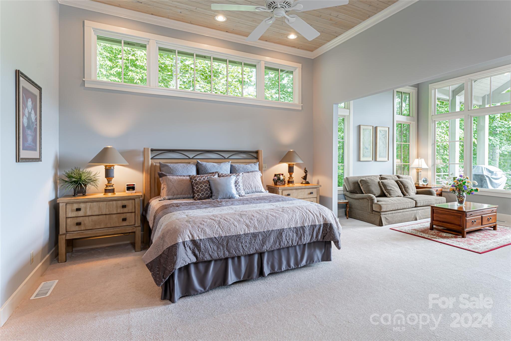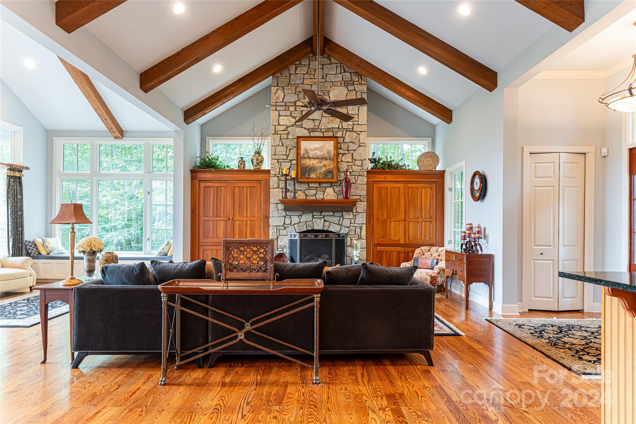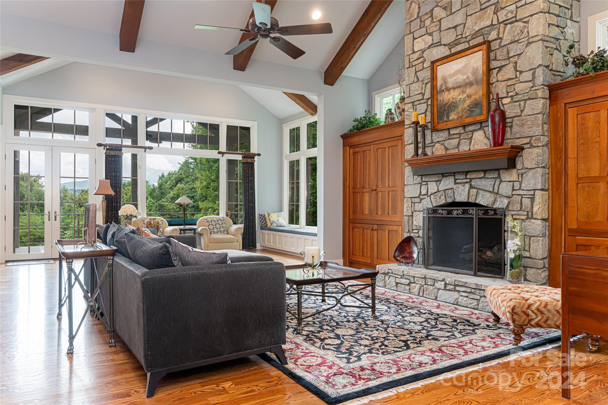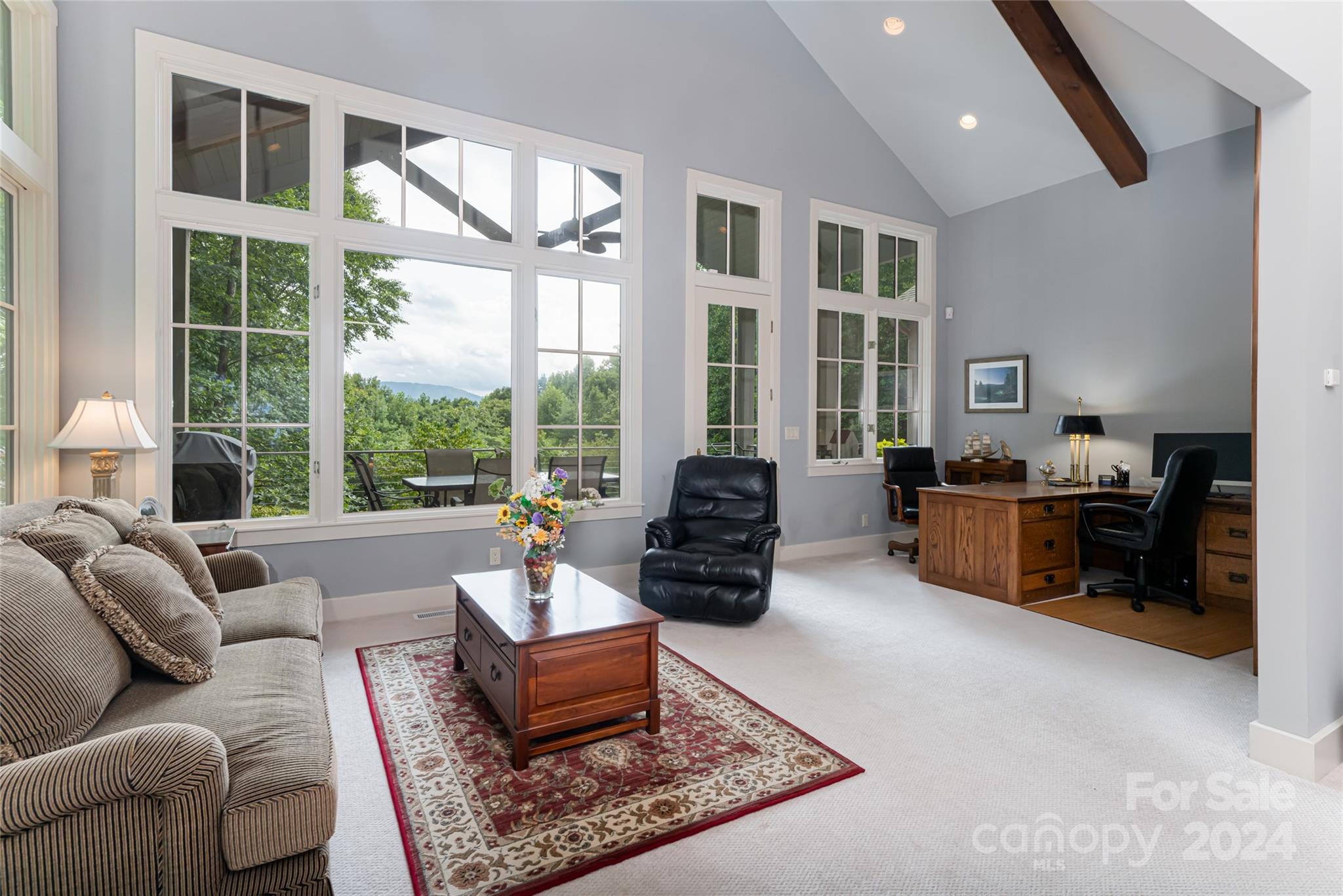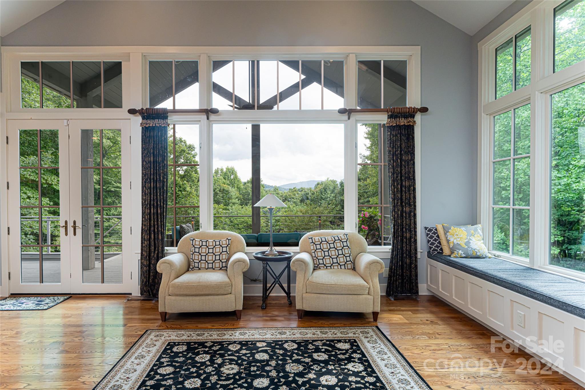 Set in the Champion Hills golf course community, 296 Cedar Rock Trail spans two homesites, offering unparalleled privacy and breathtaking long-range views. Carefully expanded in 2014, the light filled, open floorplan seamlessly blends the kitchen, dining, and living spaces together highlighted by a vaulted ceiling and stone fireplace. A full-length deck offers a perfect vantage point to enjoy stunning vistas and the soothing sounds of a private waterfall. The primary suite, located on the main level, is a serene retreat with a spa-like bath that includes a steam shower. Upstairs, two spacious en-suite bedrooms and a sitting room provide ample space for guests. The terrace level boasts a family room with fireplace and wet bar, a home gym, an additional en-suite bedroom, and versatile bonus room. A private putting green is perfect for golf enthusiasts. Champion Hills membership opportunities provide access to amenities including golf, fitness, dining, tennis, hiking, and more.