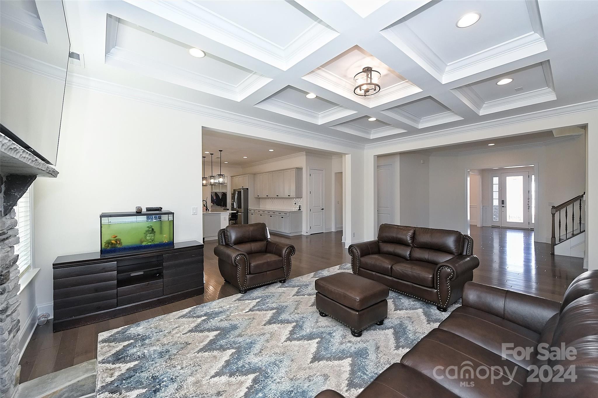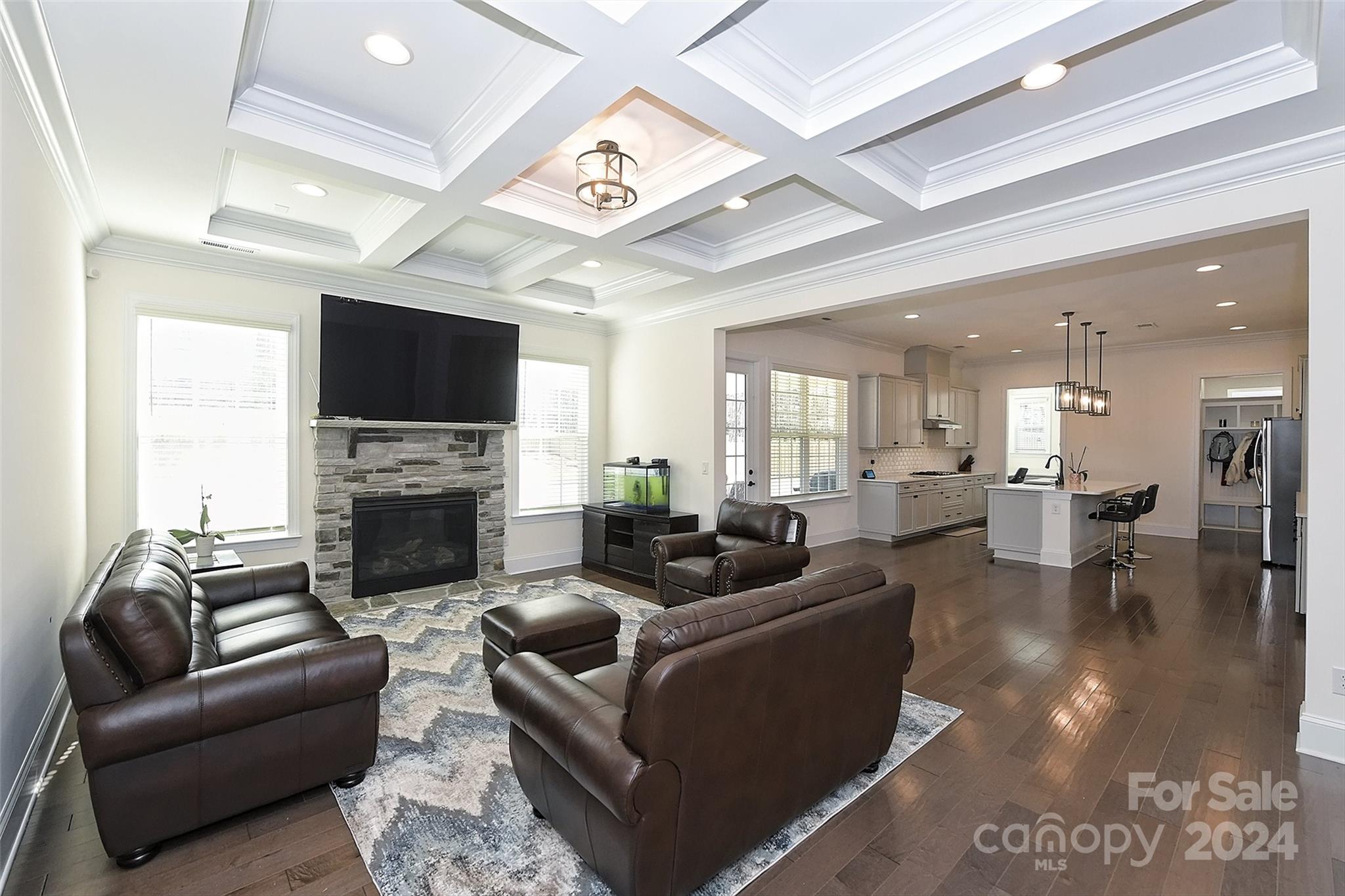 This home is located in the highly sought-after neighborhood of Harlow's Crossing. It is a stunning brick home that offers the perfect blend of charm, and modern elegance. Step inside to discover an open floor plan, that is illuminated by natural light dancing across the beautiful flooring throughout. Every detail of this home was thoughtfully crafted offering a warm and inviting atmosphere. The kitchen is complimented by an oversized pantry, and the primary bedroom bathroom offers Jack-and-Jill style sinks. Not to forget the beautiful coffered ceiling in the living room, spacious bonus room or the lovely dinning room and office space near the entrance. The exterior of the home features a very spacious fenced in yard, and three car garage.
