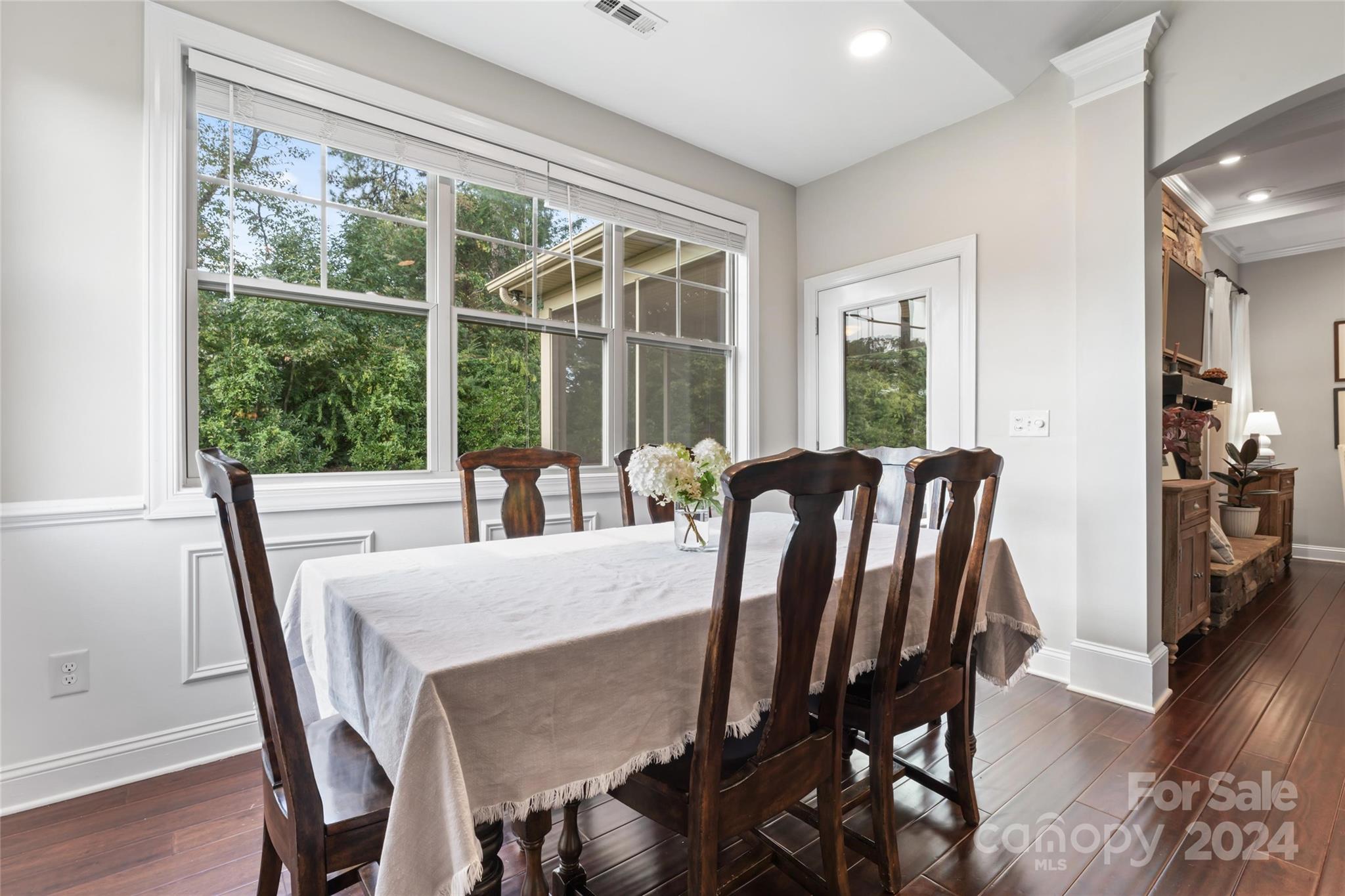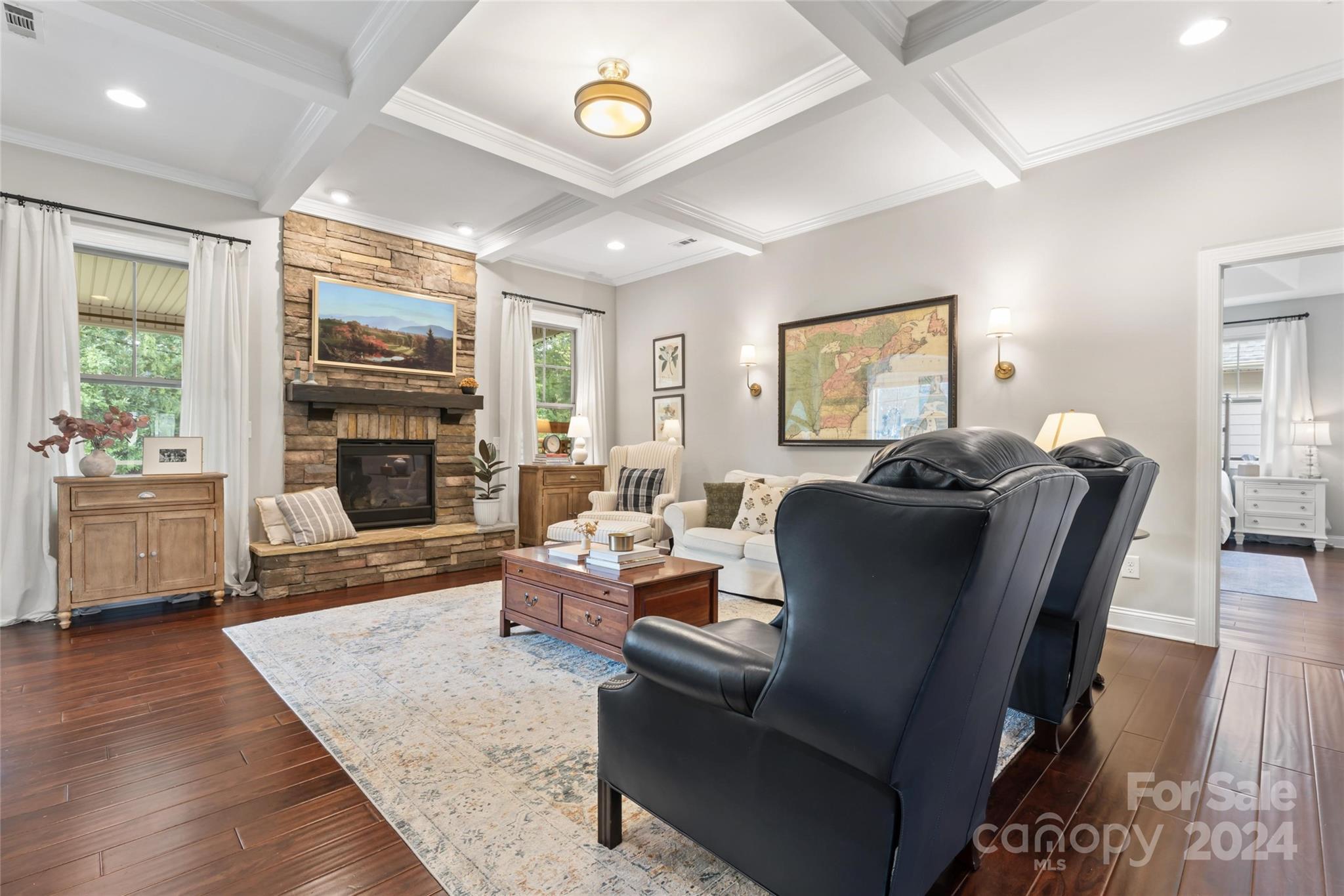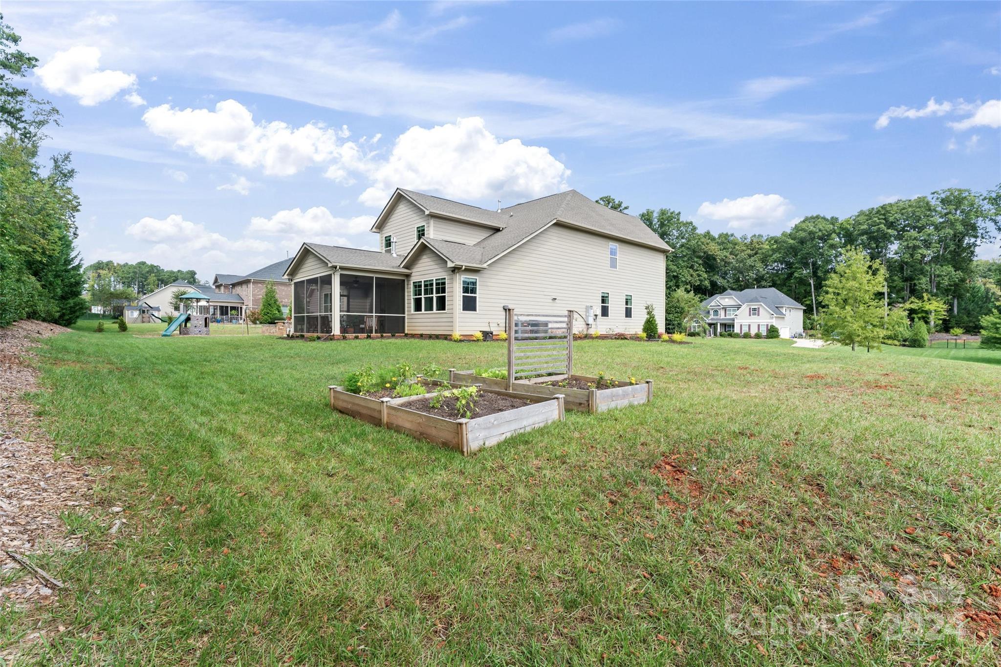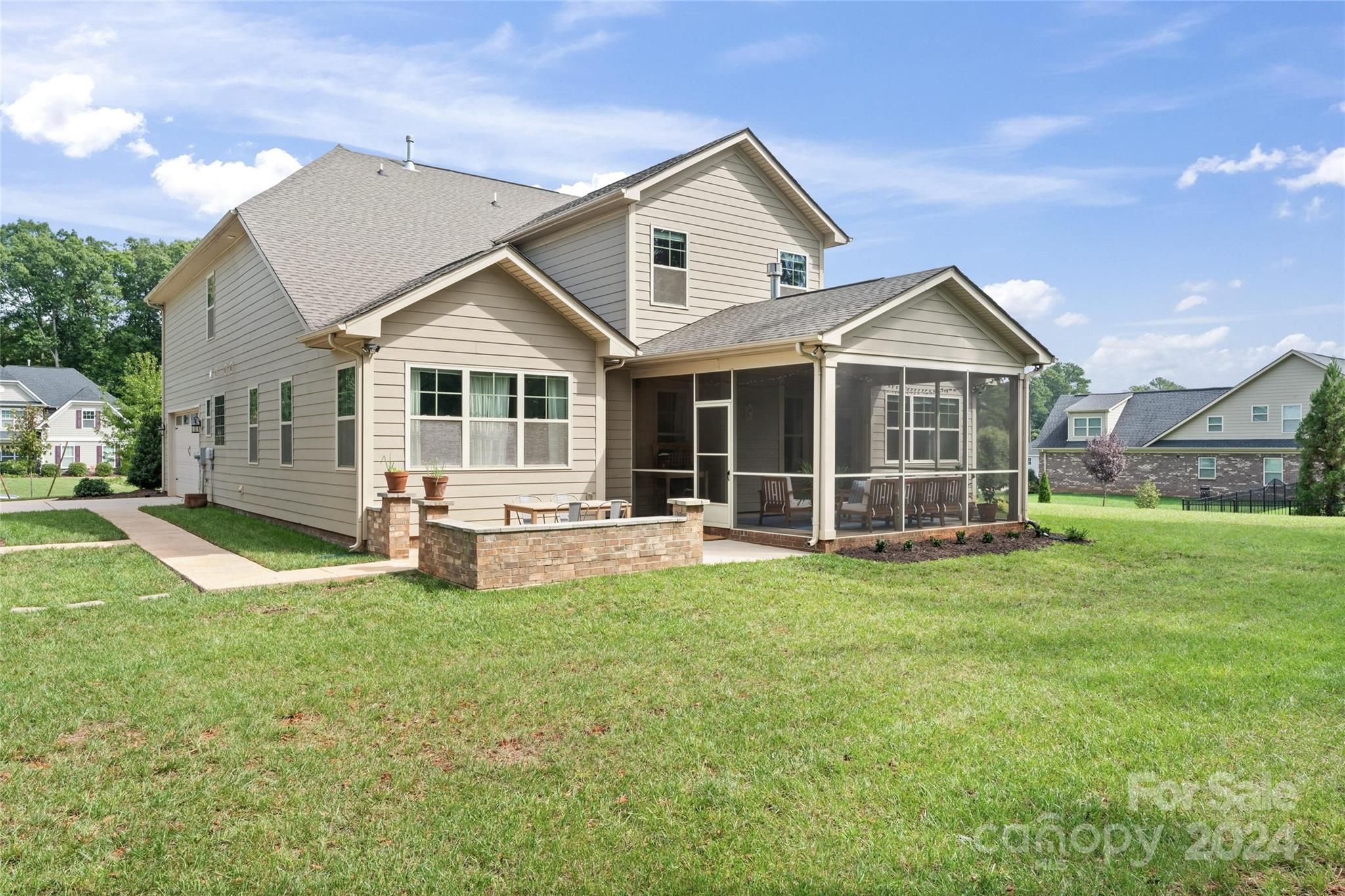 This spacious 5-bed, 4-bath residence on ¾ acre lot offers open-concept living with two-story foyer, living room, formal dining, and modern kitchen with SS appliances (double ovens!), island, butler’s pantry, and walk-in pantry. Breakfast nook and family room with coffered ceiling, stone fireplace, and access to the screened-in porch and patio also on main level, along with private primary suite with sitting area, two walk-in closets, and luxurious bathroom with dual sinks, soaking tub, separate shower, and toilet room. Upstairs are four bedrooms with walk-in closets and tray ceilings, two full bathrooms, and bonus room. Sought-after design features throughout the home include espresso hardwood floors, off-white cabinetry, and granite countertops in the kitchen and all full bathrooms.