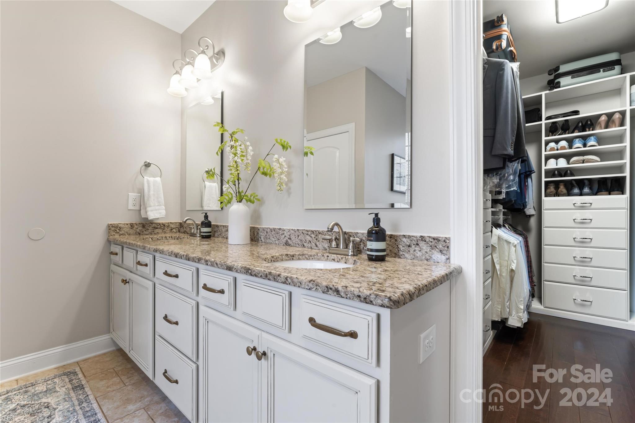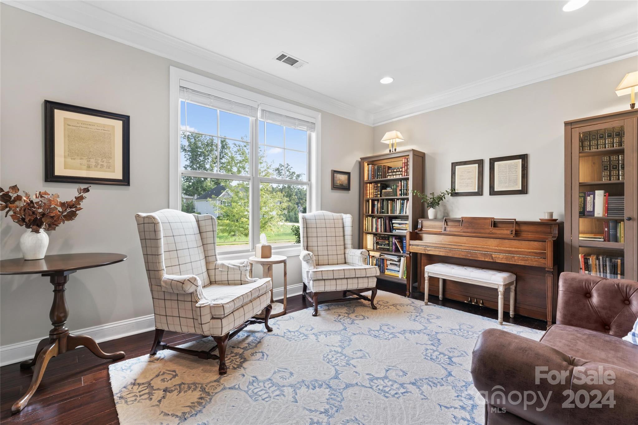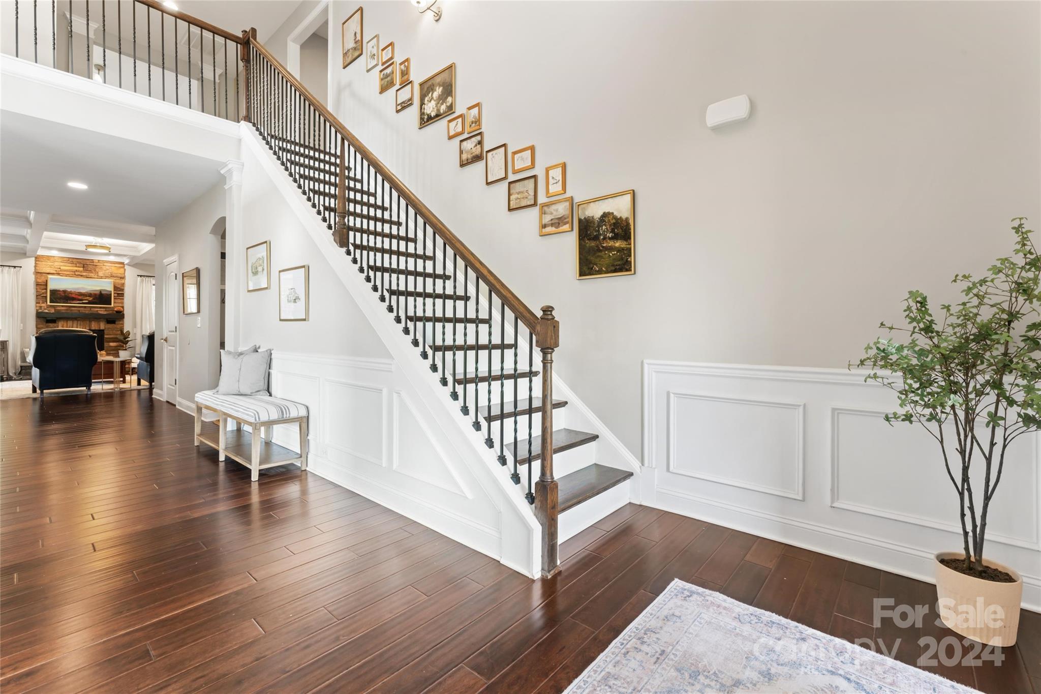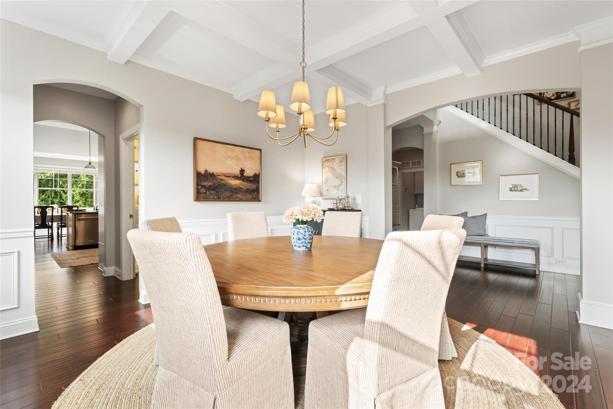 This spacious 5-bed, 4-bath residence on ¾ acre lot offers open-concept living with two-story foyer, living room, formal dining, and modern kitchen with SS appliances (double ovens!), island, butler’s pantry, and walk-in pantry. Breakfast nook and family room with coffered ceiling, stone fireplace, and access to the screened-in porch and patio also on main level, along with private primary suite with sitting area, two walk-in closets, and luxurious bathroom with dual sinks, soaking tub, separate shower, and toilet room. Upstairs are four bedrooms with walk-in closets and tray ceilings, two full bathrooms, and bonus room. Sought-after design features throughout the home include espresso hardwood floors, off-white cabinetry, and granite countertops in the kitchen and all full bathrooms.
