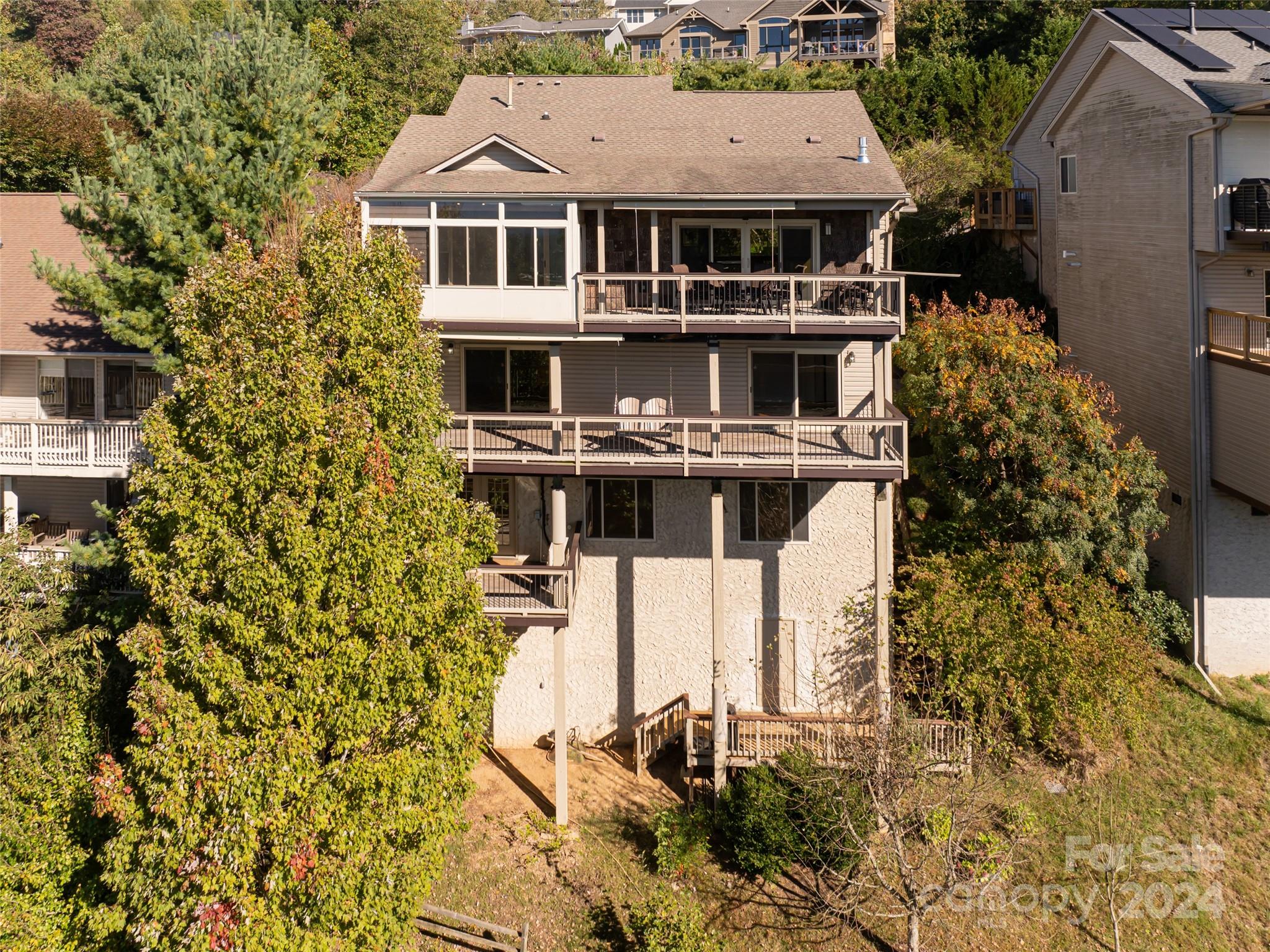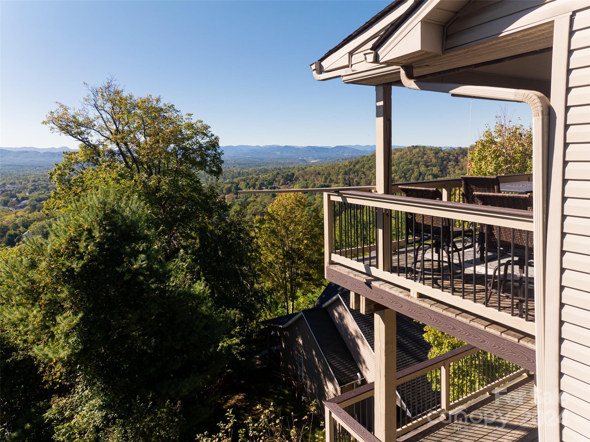 SAFE FROM STORM: This stunning home is immediately available and offers a breathtaking 30-mile view in Asheville at an elevation of 2,700 feet. It’s easy to maintain with natural gas and electric utilities, and comes equipped with a Generac whole-house generator. Each of the three 1,300 sq ft floors has independent heating and cooling systems, ensuring year-round comfort. Built on undisturbed soil with a poured concrete foundation and a 20-foot crawl space, the home offers abundant storage throughout. The total living space is 3,900 sq ft on a manageable 0.1 acre lot. The first floor provides all the essentials, the second floor offers added comfort, and the third floor adds versatility to the layout. Everything has been meticulously maintained, and all improvements were done with permits. The Mendota fireplace adds warmth and charm to the living spaces. Located within 3 miles are a hardware store and three grocery stores, and the Blue Ridge Parkway is just a mile away.