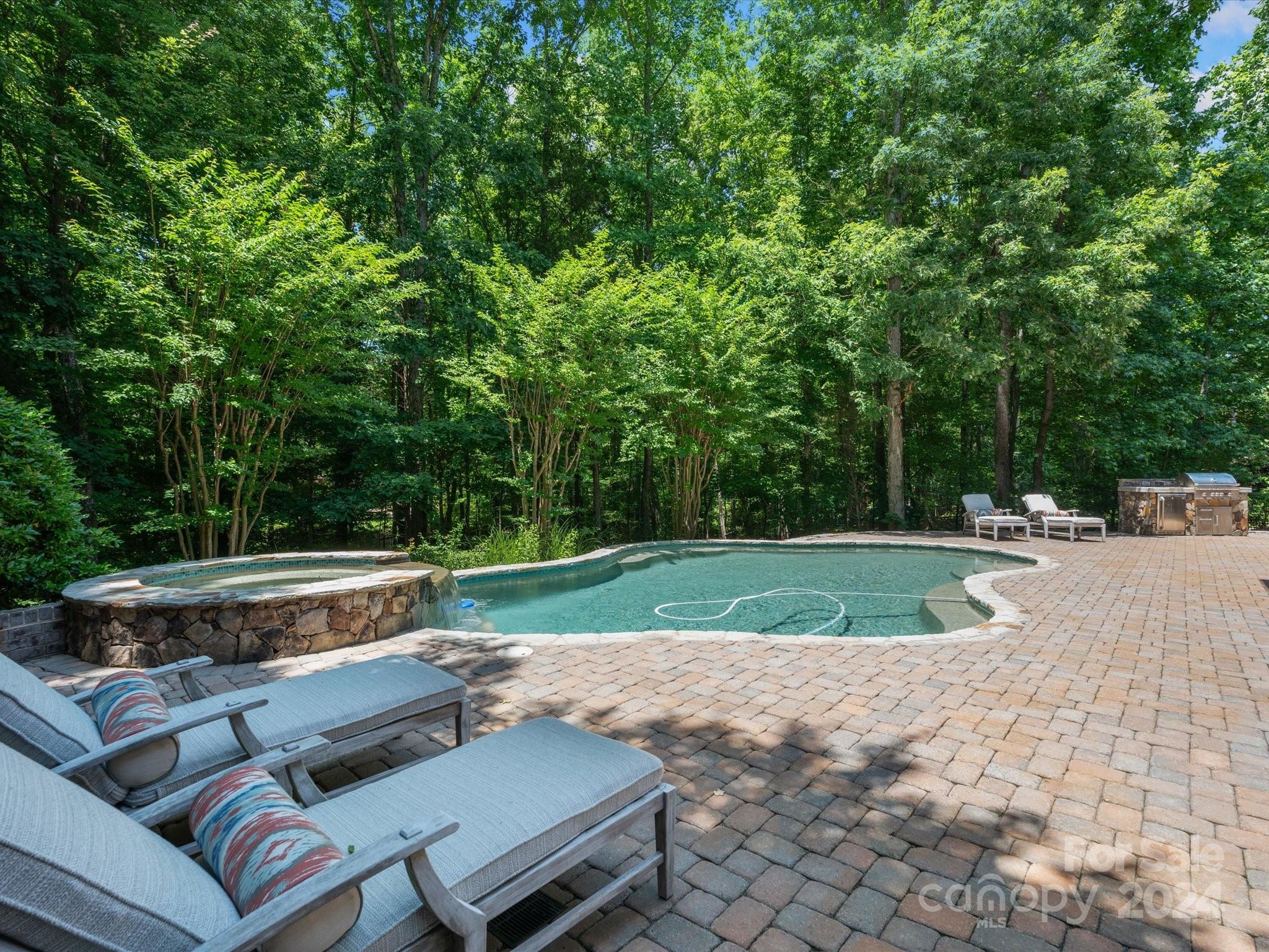 Embrace the essence of luxury living in this extraordinary residence, where a grand entryway leads to a tranquil outdoor sanctuary. Located on a quiet cul-de-sac in the prestigious Providence school district of The Forest, this home is ideal for entertaining and relaxation.The outdoor living space is a true highlight, featuring a saltwater pool, hot tub, and firepit—perfect for gatherings or peaceful evenings. Inside, two gourmet kitchens, a spacious game room, a media room, and a state-of-the-art exercise room equipped with premium fitness gear and a TV. The Gathering Room captivates with its elegant design, a stunning walnut island, a professional-grade Thermador gas range, a Butler's Pantry, and a large pantry. Recent updates include a new roof (2020), zoned HVAC systems (upper level 3 years, middle & basement 2 years), resurfacing of the pool and hot tub (2022). Pool renovation 2018, and NEW Tesla charger 2020. Additionally,the seller offers a $20,000 buydown w/an acceptable offer.