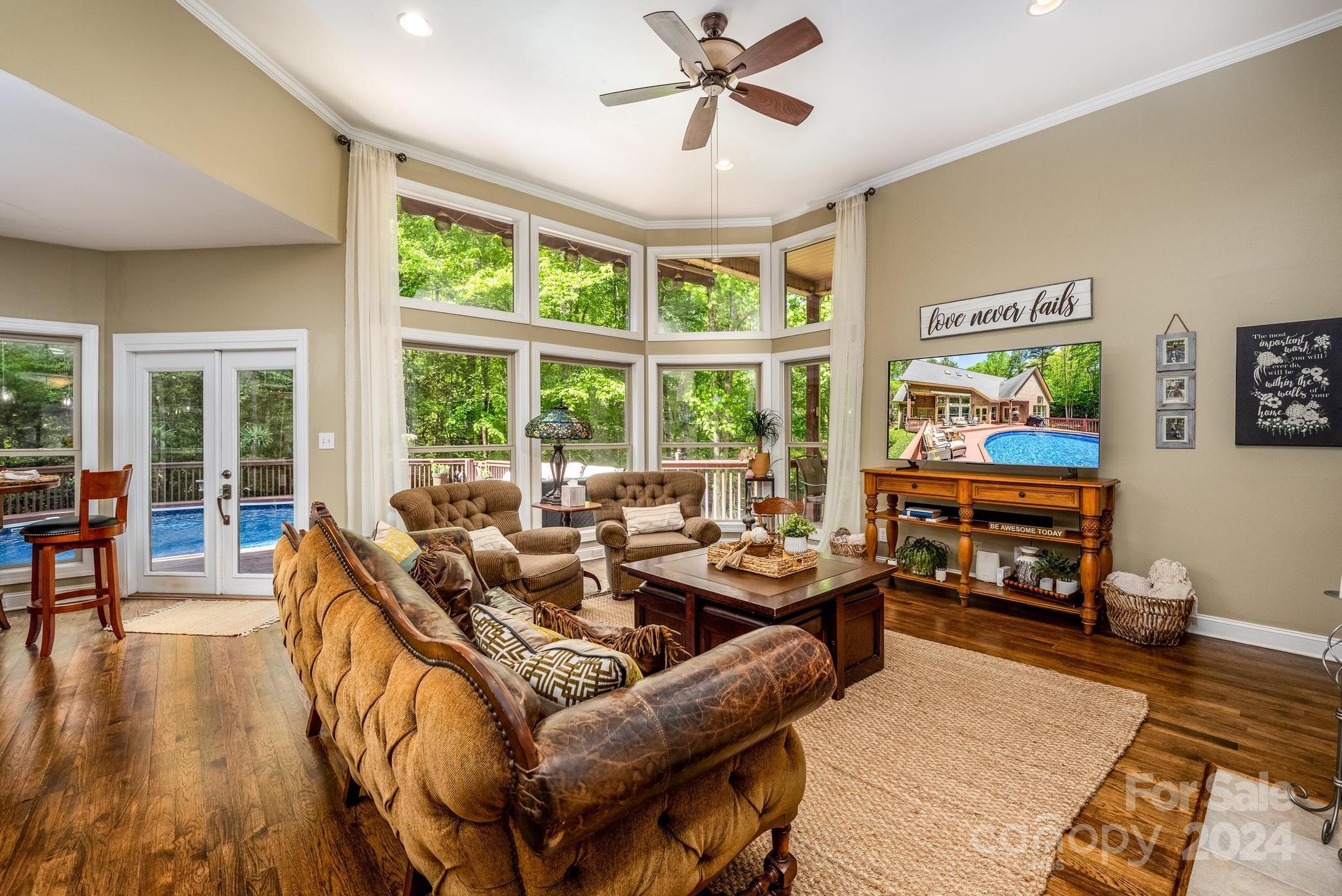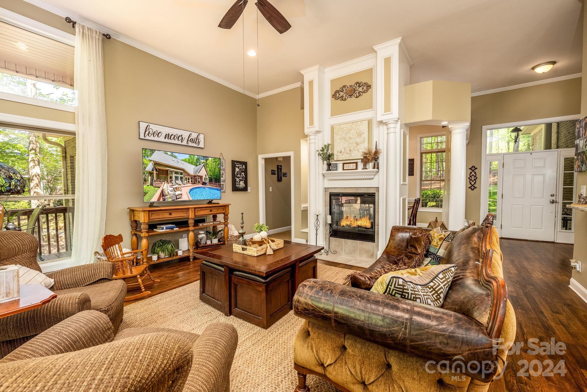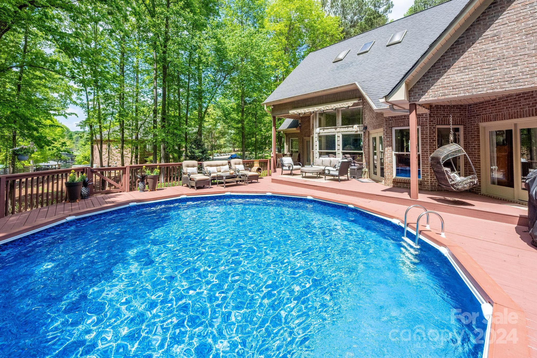 Welcome to your private retreat on LKN. Nestled on 2 acres, you'll adore the beautifully manicured yard & outdoor entertaining areas. The environmentally protected cove offers a retaining wall w/boat tie-offs for your guests to dock, ladder to take a dip, picturesque seating, & a fire pit. Enjoy relaxing by the pool (new liner) encompassed by your 307 SF deck (freshly painted).Step inside & fall in love with the open floorplan. Gas log fireplace graces the great room & dining room. High ceilings & abundant light cascade in through your wall of windows overlooking the backyard/pool area. Lives large with two add'l rooms upstairs used as BR's (total 5). You'll love this home's newly renovated kitchen and fine finish work throughout. BRs are 'generously sized. Custom Elfa shelving in the his/her walk-in closets in Primary. guest BR & kitchen pantry. New HVAC units in 2021, new hot water heater in 2022. Selling as-is, where-is with no known defects