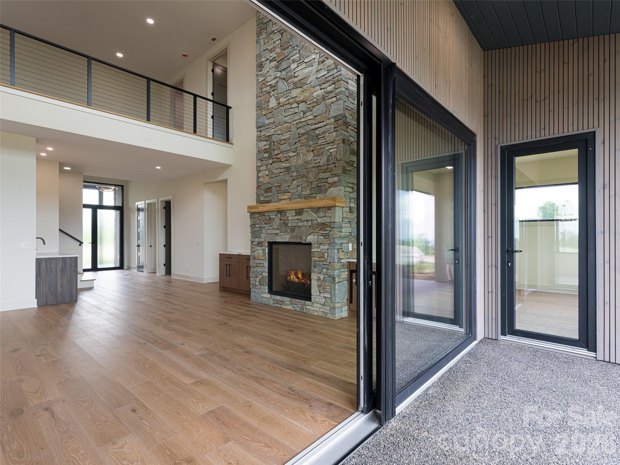 Nestled within Summit Vista, the newest luxury enclave of the gated Carriage Park community, this brand-new mountain-modern residence is thoughtfully positioned to capture breathtaking, long-range layered mountain views from nearly every room. Designed for effortless lock-and-leave living, the home offers an exceptional blend of privacy, elegance, and convenience just 7 minutes from Historic Downtown Hendersonville and minutes from Asheville Regional Airport. Summit Vista spans +/- 6 acres of beautifully maintained common space, extending outdoor living while preserving a serene sense of seclusion, with homes carefully sited to live privately while remaining naturally connected to neighbors and the greater Carriage Park community. The open-concept main level is both dramatic and inviting, anchored by a floor-to-ceiling stacked-stone fireplace and expansive 7’ x 14’ sliding glass doors that open seamlessly to the terrace patio, creating the perfect setting for entertaining or enjoying sweeping mountain vistas. The chef’s kitchen is a true showpiece, featuring Cristallo quartzite countertops and a full suite of Thermador appliances that blend striking design with everyday functionality. The main-level primary suite serves as a private retreat with direct patio access framed by spectacular views and an indulgent spa-inspired bath, while the upper level offers outstanding flexibility with a second primary suite, an additional guest suite, a family room with wet bar, and a laundry room ideal for hosting family and friends. Built with durability, efficiency, and quality craftsmanship in mind, the home features thermally treated natural wood siding, stone accents, a standing-seam metal roof, European Oknoplast high-performance windows and doors, hybrid insulation, two Navien tankless water heaters, and a two-car garage pre-wired for a generator and EV charging. Residents of Carriage Park enjoy an exceptionally active social calendar including yoga, bridge, golf, fly fishing, and potluck dinners, along with resort-style amenities such as 24-hour manned gated security, a clubhouse, heated indoor pool, tennis and pickleball courts, and scenic shared green spaces, making this a rare opportunity to own new-construction luxury in one of Hendersonville’s premier mountaintop communities—schedule your private showing today and experience Summit Vista for yourself