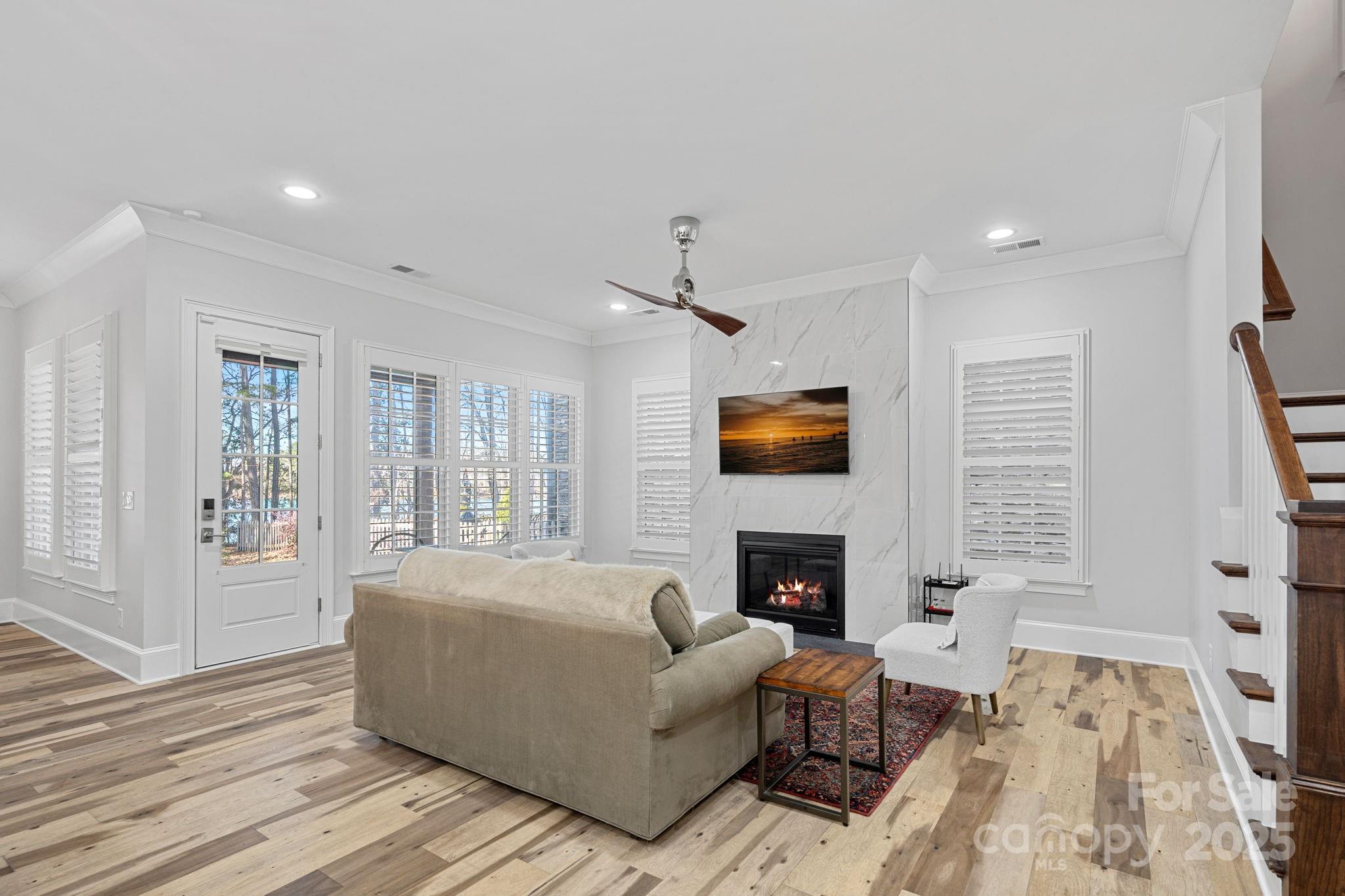 European inspired Cottage is located in a small enclave on a point at Lake Cornelius. This Waterfront home allows easy access for kayaking & paddle boarding. Walkable to downtown Davidson, shopping & other amenities. HOA covers water, sewer, exterior home maintenance & landscaping. Worry free living in the heart of Davidson! Main level offers a Bedroom with Ensuite Bath in addition to the Primary Suite. Primary has waterfront views & custom tile/countertop design. Primary closet links to Laundry for efficient flow. Gourmet Kitchen includes Gas 6 Burner Range & second oven on wall with convection/microwave. Amazing cabinets, backsplash, & island with seating for 3-4 makes entertaining simple. Upper level has large Loft, Office & 2 Bedrooms that accommodate queen sized furnishings & a Shared Bath-Dual Sink Vanity. Spacious walk in Attic storage. 2" Plantation Shutters throughout, Upgraded Lighting, Custom Tile & Countertops, 8' doors on Main with 10' ceilings.