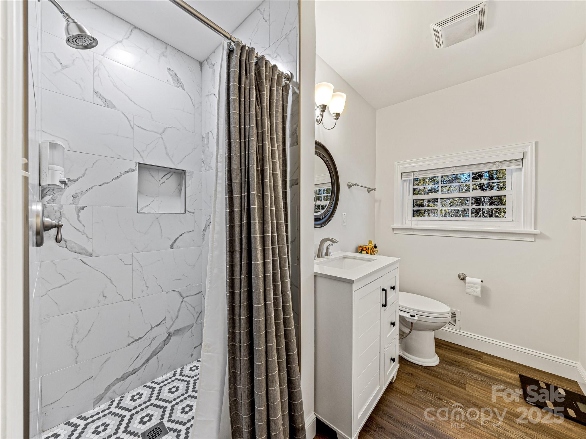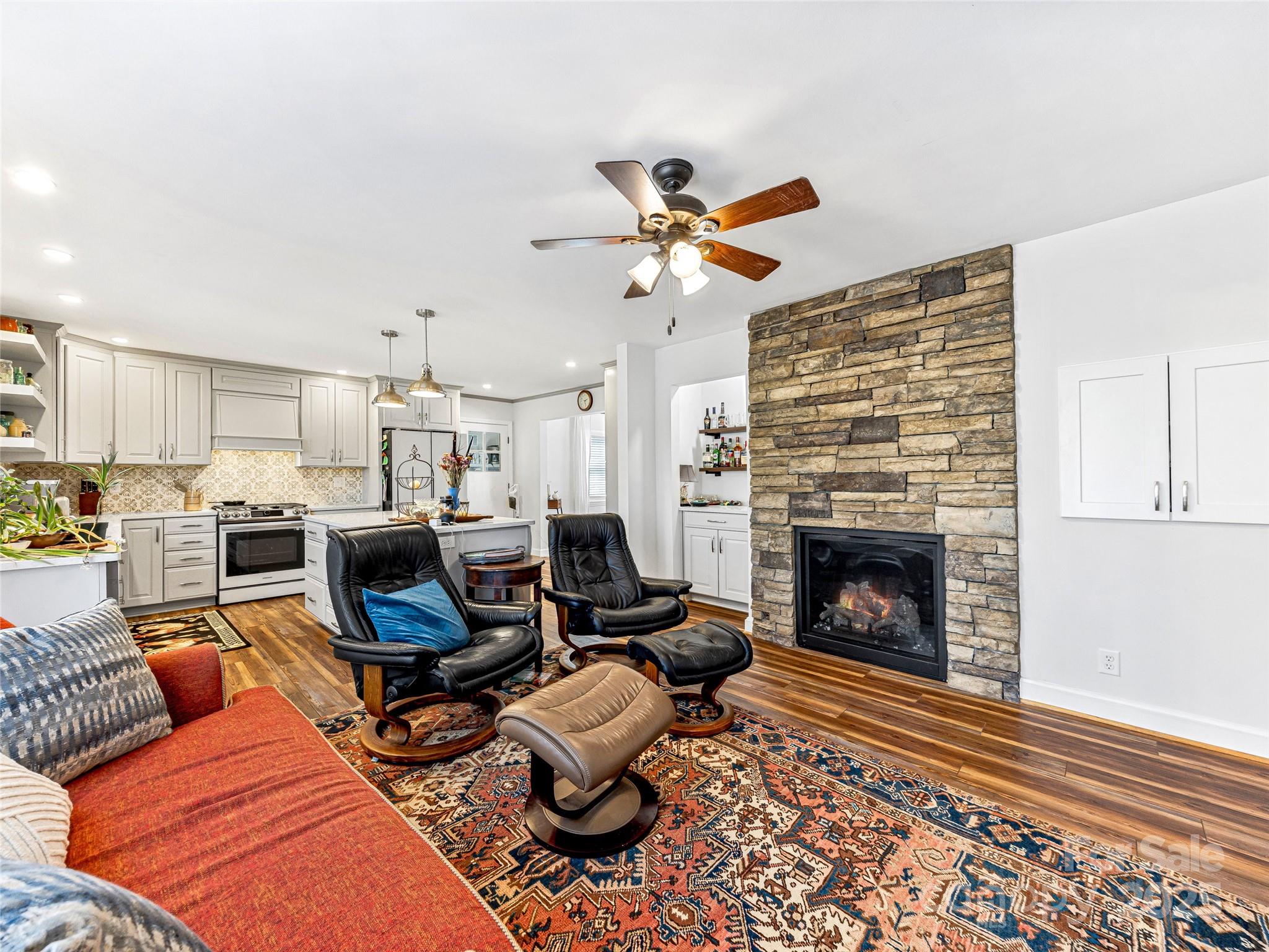 This newly renovated home located in a quiet circle offers the perfect blend of tranquility and accessibility, being just a short stroll from the heart of downtown Brevard. The home has been thoughtfully updated with brand-new appliances, flooring, plumbing, and lighting, ensuring modern comfort and convenience. A cozy fireplace adds warmth and charm to the main living space, and one can gather outdoors in the backyard’s delightful garden area, ideal for relaxation and outdoor entertaining.