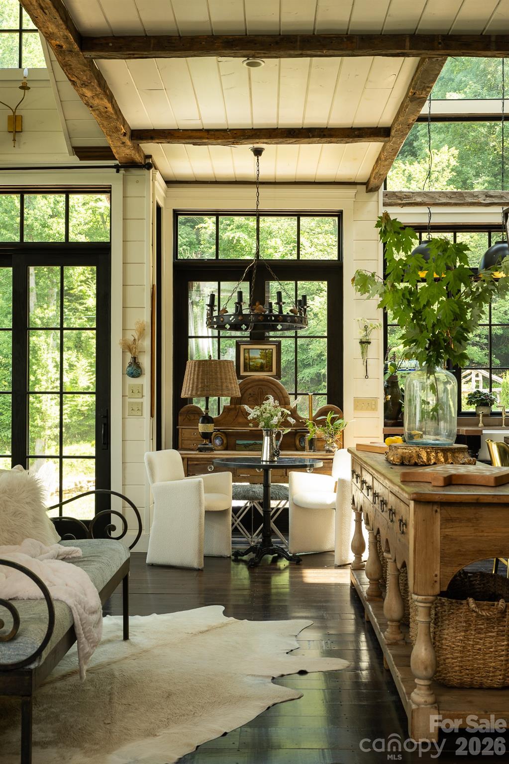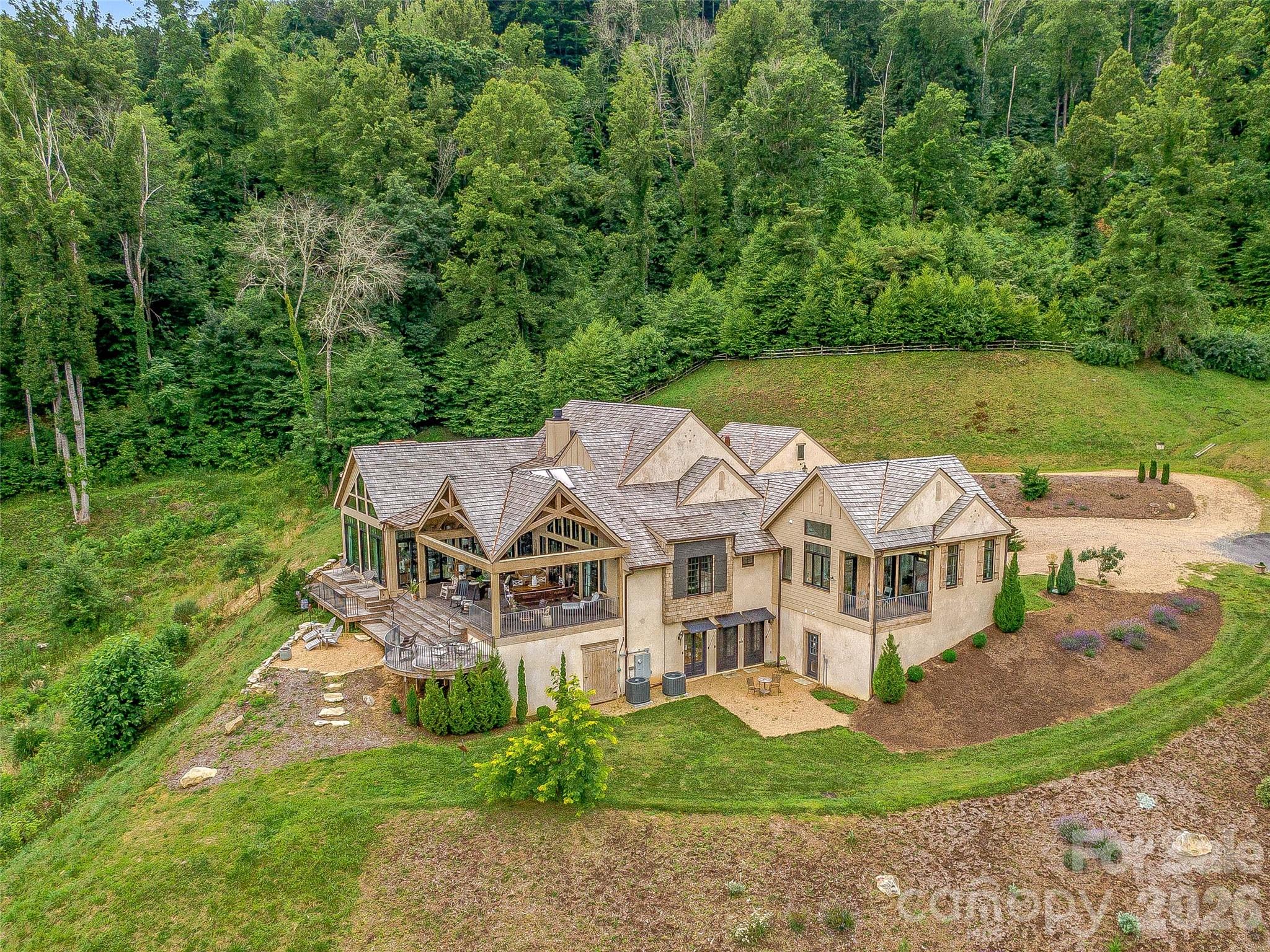 REDUCED 1 MIL - An Enchanting Chateau Country Estate & Mountain Retreat designed for those seeking ultimate privacy, beauty & a true Sense of Place. Set at 3,560 feet elevation on 43 acres, breathtaking long-range mountain views. Southeast-facing offers cool summer temperatures, fresh mountain air, & the rare feeling of floating above the clouds. You can see all the way to Tennessee on a clear day. Privacy is unparalleled—no neighboring homes visible during summer & only one in winter, creating a peaceful, secluded sanctuary of safety. Ideal as a luxury second home or legacy retreat. The land itself is remarkable, featuring abundant natural water - multiple springs, creeks/streams & a pond for relaxation. Rolling pasture land & gently contoured hills make the perfect fit for Biophilic walking & hiking trails, 4-wheeler trails, & open spaces that invite you to explore nature. A natural habitat of wildlife, wildflowers, & native mountain laurel provide stunning seasonal beauty. The residence itself, professionally designed, blends refined craftsmanship with effortless mountain living. A true chef’s kitchen anchors the home complete with a La CornuFe dual-fuel range, two refrigerators, two dishwashers, skylights that flood interior with light. Beautiful wood burning fireplace in kitchen creates warmth & ambiance throughout. This is one of 5 fireplaces, also complemented by an outdoor fireplace & fire pit for evenings under the stars. Butlers Pantry equipped with open shelves for ultimate storage & 1 of 2 laundry stations. Dining Room & Library also nearby for lounging. Main primary bedroom suite offers luxurious living with a gas fireplace, cathedral ceiling with a wall of windows that allow star gazing from bed, & a private covered deck. Primary bath offers a large marble shower, (with door to an outdoor shower) a Victoria + Albert tub, & a huge walk in closet. Second Primary suite also with large cathedral ceiling & private covered deck, small kitchenette, sitting area, bath with Victoria + Albert tub, & separate shower. Two additional guest rooms, all with private baths & showers. Marvin doors and windows frame panoramic long range views from every room, seamlessly connecting indoor and outdoor living. Multiple covered decks and a spacious covered back porch provide ideal spaces for quiet morning & evening year-round enjoyment of the mountain setting & views! This property is all about the views! Bottom level offers a great space ready to turn into the perfect artist studio, gym, yoga or meditation studio. A rare private mountain sanctuary, rich in feeling. Conveniently located just 10 minutes from I-26 and approx 25 minutes from historic Asheville. Also home to Mount Mitchell—the highest peak east of the Mississippi! Fun fact, (Yancey County), has more artist per capita than any state in the US. Also, fly fishing, rafting, hiking trails, waterfalls, and gem mining, just minutes away. Skiing & Golf, 20 minutes away -Great restaurants and Breweries within 15 min. If you are searching for the perfect mountain escape, this is it. Imagine waking up to the quietness of only the birds chirping, the deer roaming, where time seems to stand still. This could also be an amazing equestrian farm, event center or wedding venue. If you are looking for STR investment property, this could be amazing rental property. It’s not just a home, It’s a feeling. Property is Broker Owned - Seller would possibly consider some owner financing with substantial down payment Please see attached feature sheet for complete details -Home comes fully furnished with some exemptions, (see attachments) https://youtu.be/_Q43AJeG2_0 APPROX 12 MIN TO BURNSVILLE APPROX 20 MIN TO WEAVERVILLE APPROX 25 MIN TO ASHEVILLE APPROX 10 MIN FROM I-26 -/MARS HILL APPROX 45 MIN TO ASHEVILLE AIRPORT APPROX 1 HOUR TO TRI CITY, TENN AIRPORT APPROX 2 HOURS TO GREENVILLE/SPARTANBURG SC AIRPORT APPOX 2 HOURS TO CHARLOTTE AIRPORT APPROX 3 HOURS TO ATLANTA, GA AIRPORT