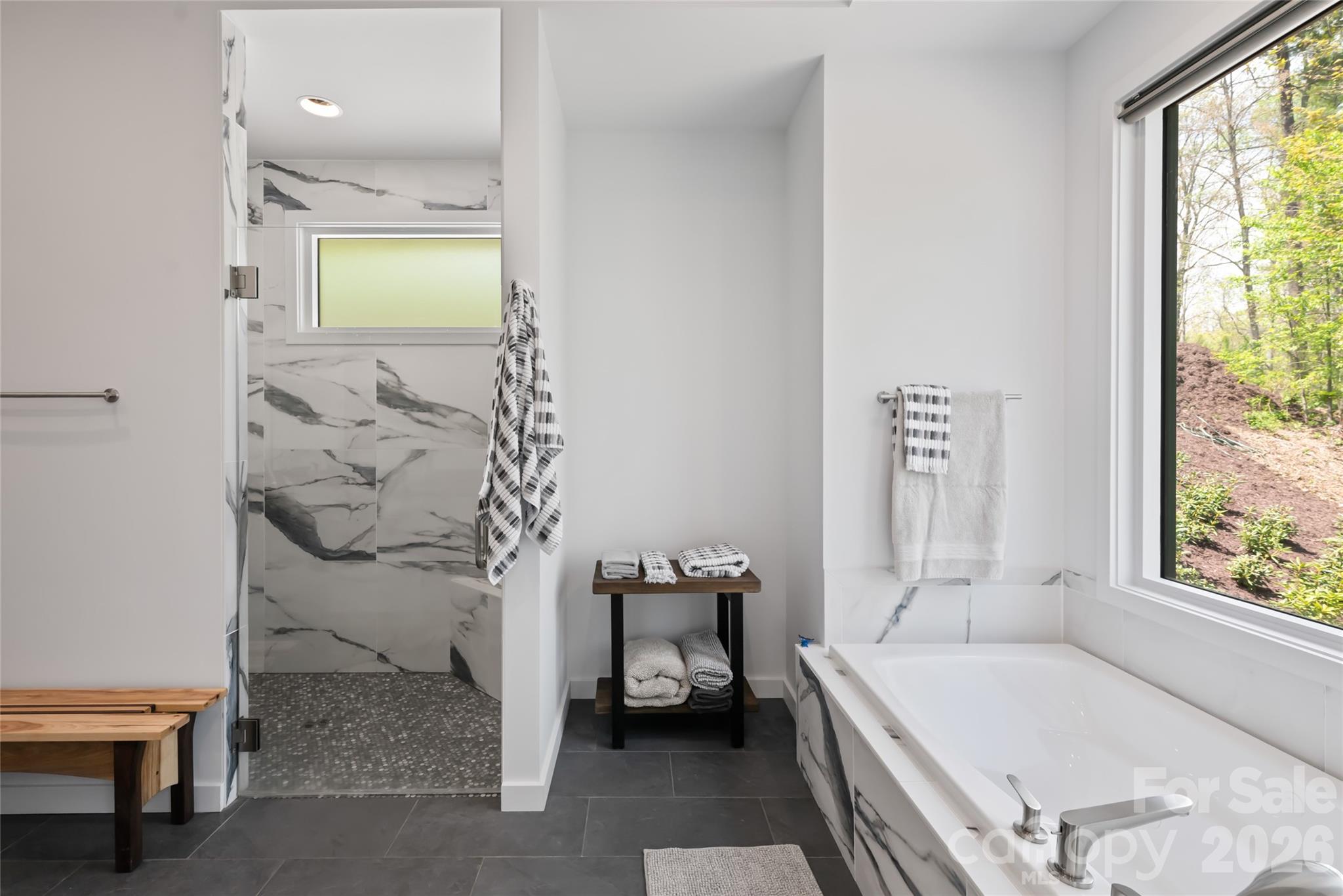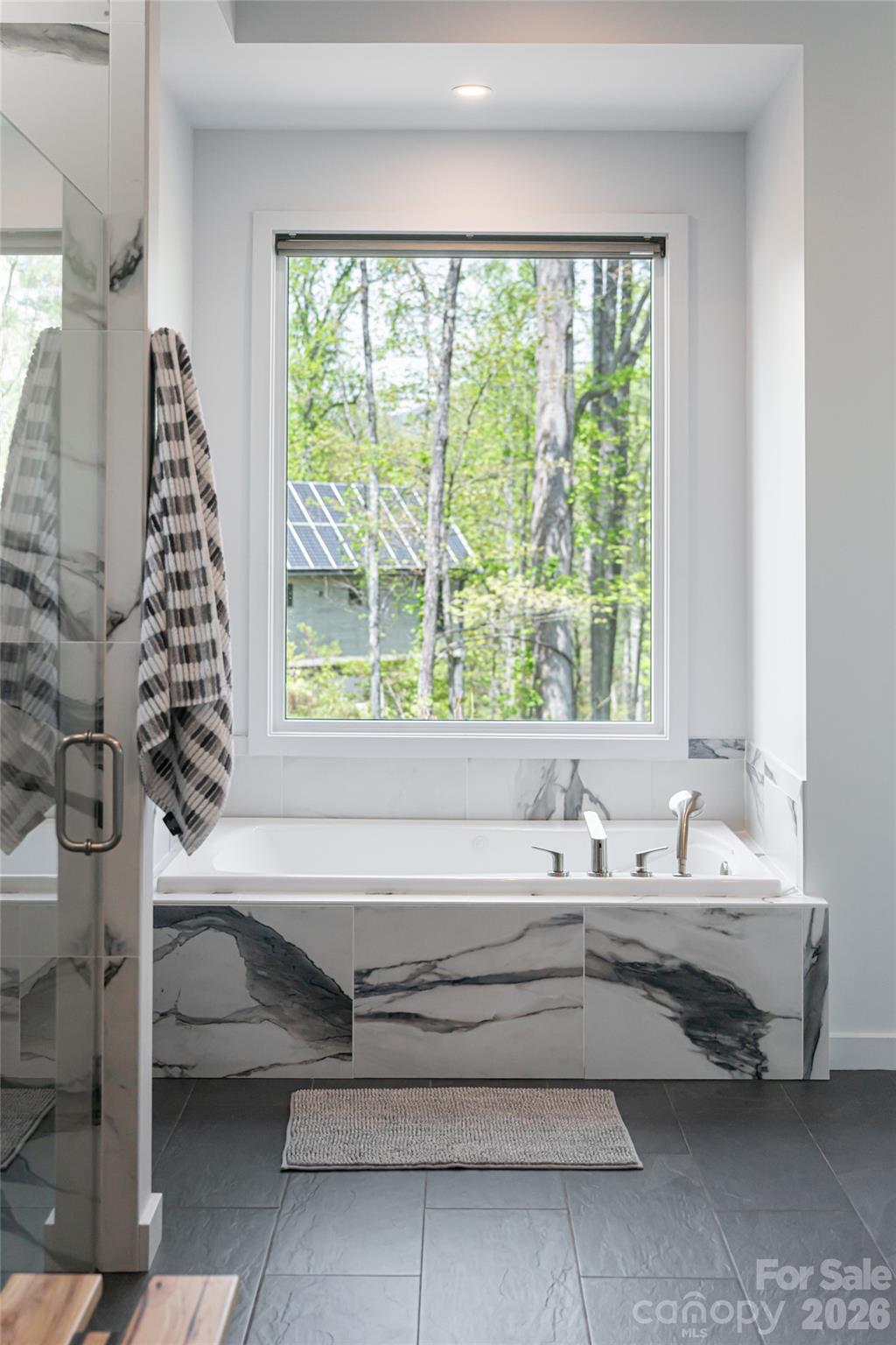 Set within the gated enclave of Sovereign Oaks, this custom modern retreat offers a rare balance of luxury, sustainability, and woodland serenity just seven miles from downtown Asheville. Thoughtfully designed to honor its natural setting, the home blends refined architecture with the quiet beauty of the surrounding forest. Vaulted ceilings and expansive windows fill the open interiors with light, while natural textures and rich wood detailing create a sense of timeless calm. A striking fireplace anchors the main living space, ideal for both intimate evenings and relaxed gatherings. The main-level primary suite is a private sanctuary, featuring a spa-inspired bath with whirlpool tub, designer tile, separate shower, and custom walk-in closet. Three additional bedrooms and three-and-a-half baths provide generous accommodations, while an open kitchen and flowing living areas extend seamlessly to expansive decking for indoor-outdoor living. Sustainability is integral to the design, with energy-efficient systems enhancing comfort and reducing impact. Thoughtful amenities—including a deluxe dog-washing station and like-new sauna—reflect a home crafted with intention. Residents enjoy access to community trails, gardens, and direct connections to the Warren Wilson trail system. Offered furnished, this exceptional residence is more than a home—it is a modern sanctuary grounded in nature. Can be sold furnished and offers an incredible like new sauna.
