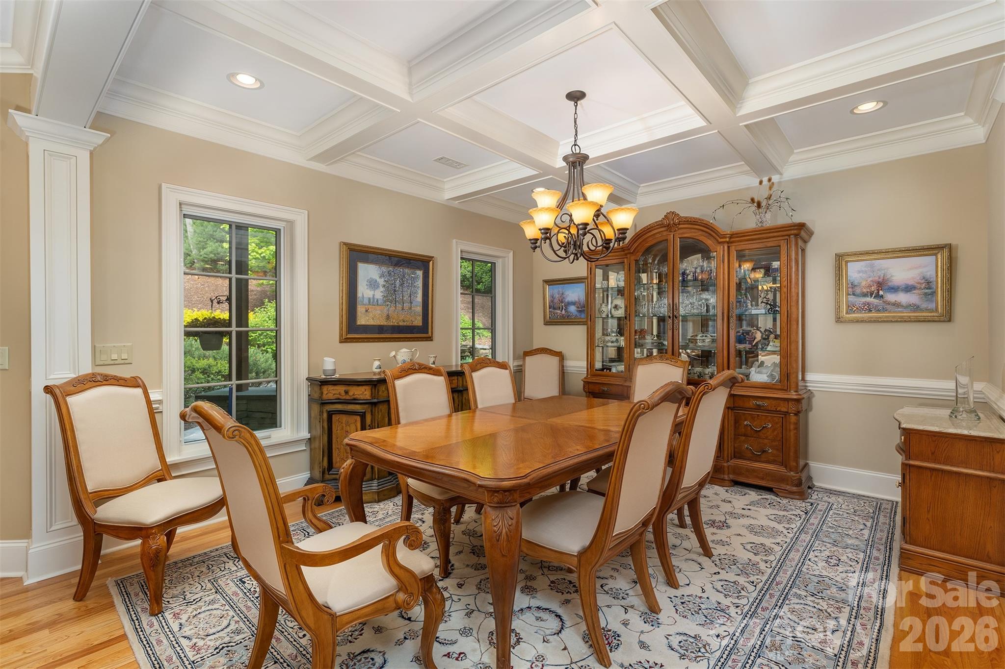 Elegant Estate in a Prestigious Golf Course Community! This meticulously crafted home is nestled in a private setting, offering premium amenities and refined living. From the moment you arrive, you'll notice the attention to detail and the careful selection of the lot, perfectly suited to the home designed for its surroundings. A custom-crafted wood entry door sets the tone for the sophistication found throughout. Soaring ceilings, a neutral palette, and rich architectural details—paneled walls, crown molding, fine wood trim, and wood floors—create an airy atmosphere with timeless craftsmanship. Designed for comfort and entertaining, the home offers two porches—one screened and another with a cozy natural gas fireplace for autumn evenings. The spacious floor plan includes two guest en suite bedrooms and a versatile downstairs room for entertaining/recreation. Quality is evident throughout the home, blending comfort, design, privacy, and space for a truly refined living experience.