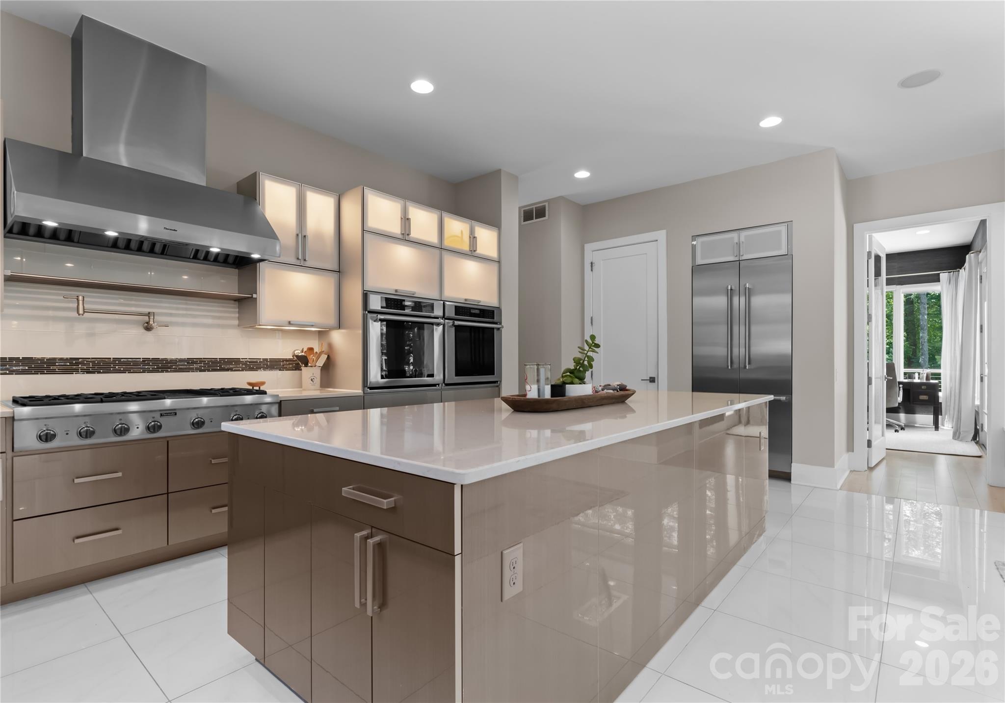 Rare Simonini-built contemporary waterfront home offering privacy, style, and flexibility with no HOA , CC&Rs, or rental restrictions. Situated on a sprawling 1.4-acre lot, this architectural gem is designed for effortless indoor-outdoor living. Soaring floor-to-ceiling windows flood the space with natural light while expandable sliding glass doors open to a covered lanai complete with ceiling heaters and an automated screen system, perfect for year-round entertaining. Inside, the chef’s kitchen is outfitted with top-of-the-line Thermador appliances and custom backlit cabinetry. Additional features include Sonos whole-house audio and Honeywell smart home automation managing HVAC, humidifier, lighting, security, and more! The luxurious Master bath features heated floors, digital showers, EAGO jetted soaking tub. Additional highlights include: custom wood stairs with cable railing, auto shades, high-end lighting by Visual Comfort, and a beautifully crafted home office with built-ins.