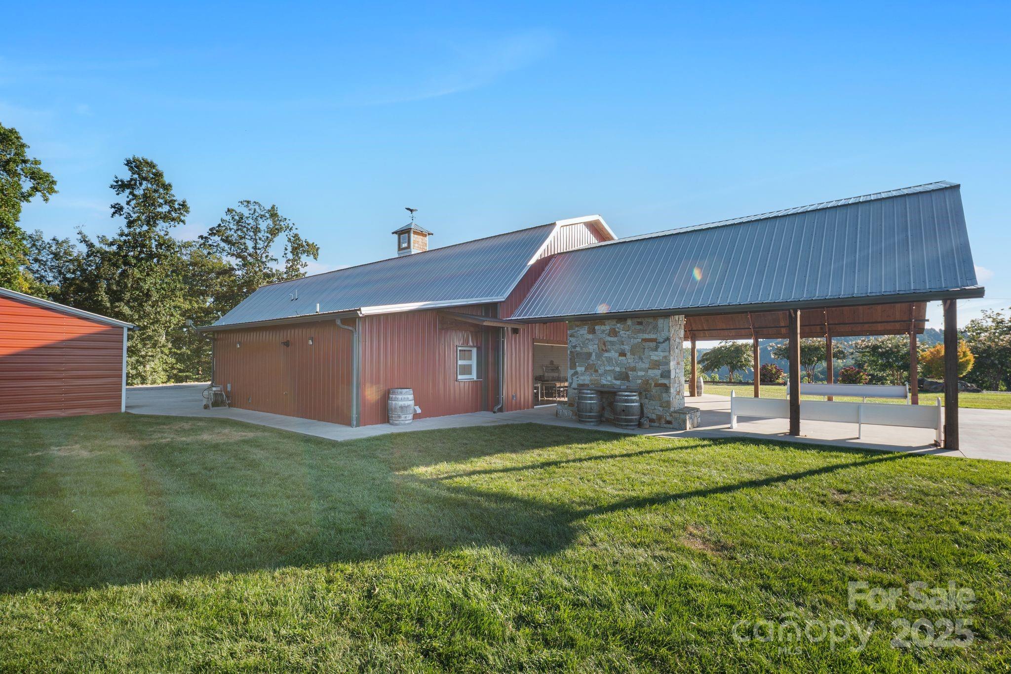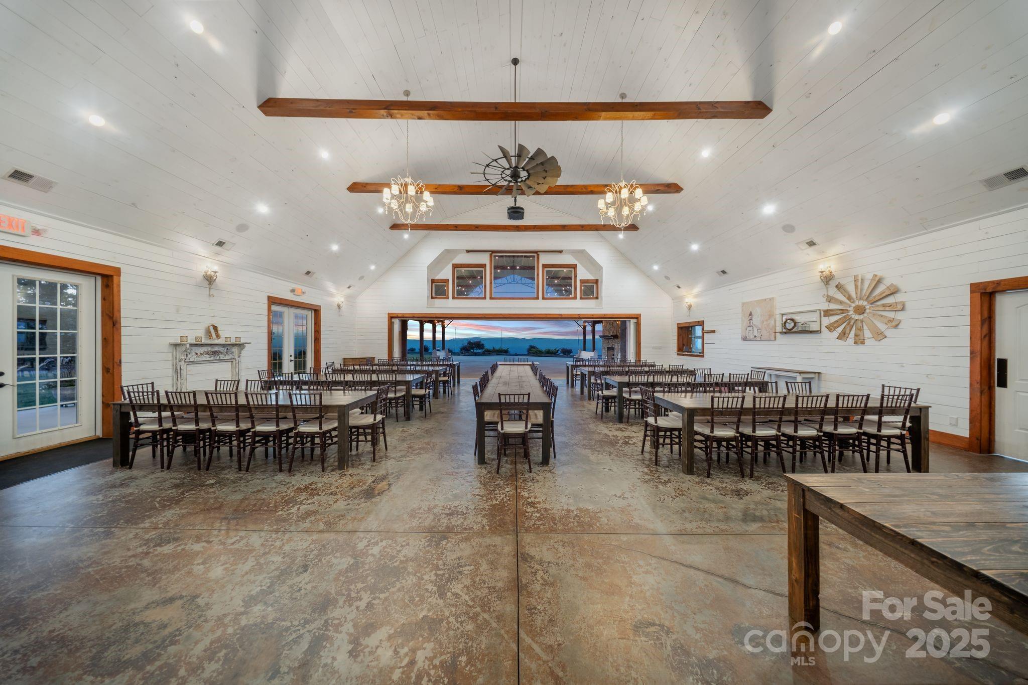 At 2,539 ft elevation, Hidden Hill Venue & Conference Center delivers sweeping panoramic views of Grandfather Mtn, Lake James, Mt.Mitchell & the Black Mtn Range w/ potential for both continued commercial use or a private luxury estate conversion. The centerpiece is a 4,790 sq ft barn-style structure built in 2017, blending the elegance of a southern estate w/ the functionality of an open-concept event space. Soaring ceilings, upscale finishes & seamless indoor-outdoor flow provide a stunning backdrop for weddings, retreats, or residential living. 2024 updates include a new extended patio ($20K), sealcoated driveway, new underground drain pipes & fresh sod across 40% of the front yard. New booster pump, sprinkler pump & water pressure tank. HVAC unit received a new compressor in 2024. Serene & accessible, between Asheville & Charlotte. 70-car parking lot, established vendors & a loyal client base. This is a turn-key venue opportunity—or a mountaintop retreat waiting to be reimagined.