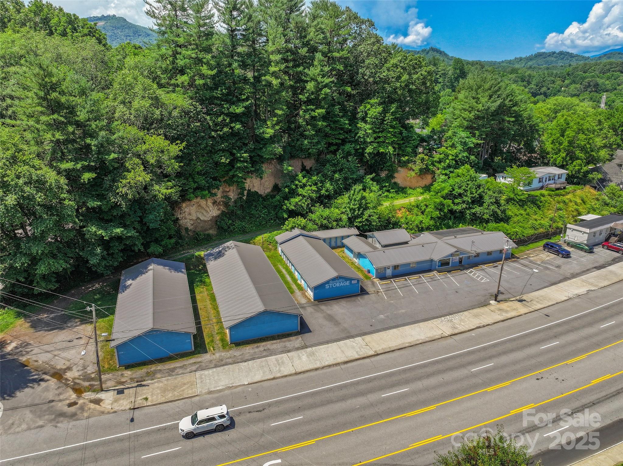 Own a piece of Haywood County history with endless potential. Don’t miss this rare opportunity to invest in a highly visible, income-producing property in the heart of Clyde. Formerly home to the beloved Sentelle’s Seafood, this 3,000+ sf building is full of charm and ready for its next chapter, whether that’s a restaurant, retail, brewery, or other commercial venture (subject to Town of Clyde ordinances). The property also includes 53 stick-built (not metal) storage units (6,500+ sf), a steady revenue stream with only one current vacancy. Many units are leased below market, offering immediate upside by adjusting rents. With over 200 feet of prime road frontage, this high-traffic location offers incredible exposure. Whether you're an investor, entrepreneur, or developer, the possibilities here are nearly unlimited. A proven investment with history and potential, this is the opportunity you’ve been waiting for. Don't snooze! This property may not be around long.