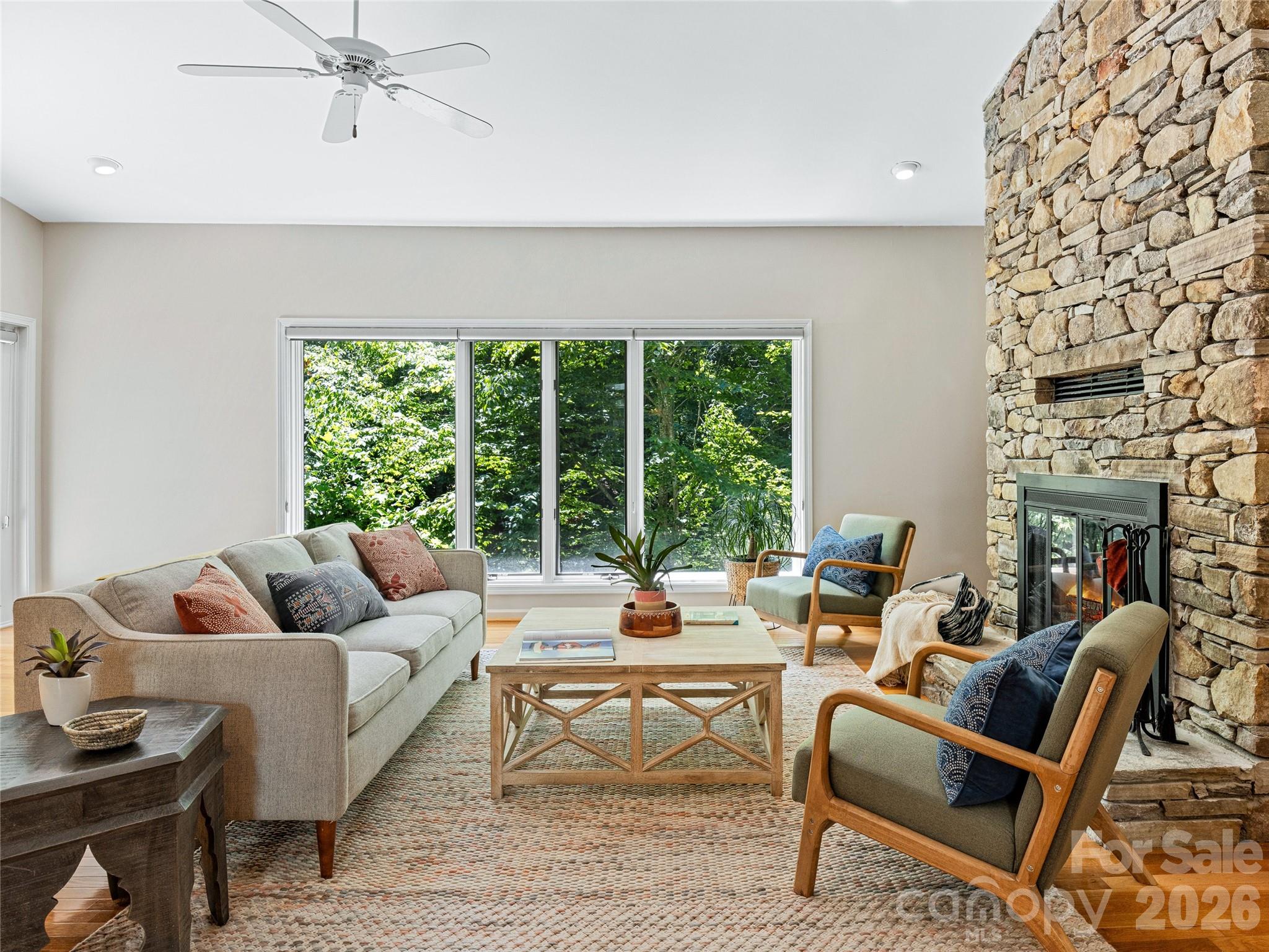 Nestled on nearly 1.5 private acres in the coveted Sondley Estates, this stunning Asheville home offers the perfect blend of luxury and tranquility. A picturesque waterfall cascades down a rock-faced creek, creating a serene backdrop for your dream retreat. Inside, you'll find hardwood floors and soaring vaulted ceilings complemented by a cozy stone fireplace with a custom mantel. Step outside onto multiple decks to soak in the natural beauty surrounding you. This home boasts numerous upgrades, including a new HVAC system (2023), roof (2023), radon mitigation system (2023), and a new water heater and disposal (2025). Enjoy peace of mind with a security system, and relish the convenience of primary his-and-her custom closets, updated bathrooms, and a modern kitchen. A sunny office with pocket doors provides the perfect workspace. All of this is just minutes from downtown Asheville, where you can explore vibrant dining and cultural attractions. Don't miss this exceptional opportunity!