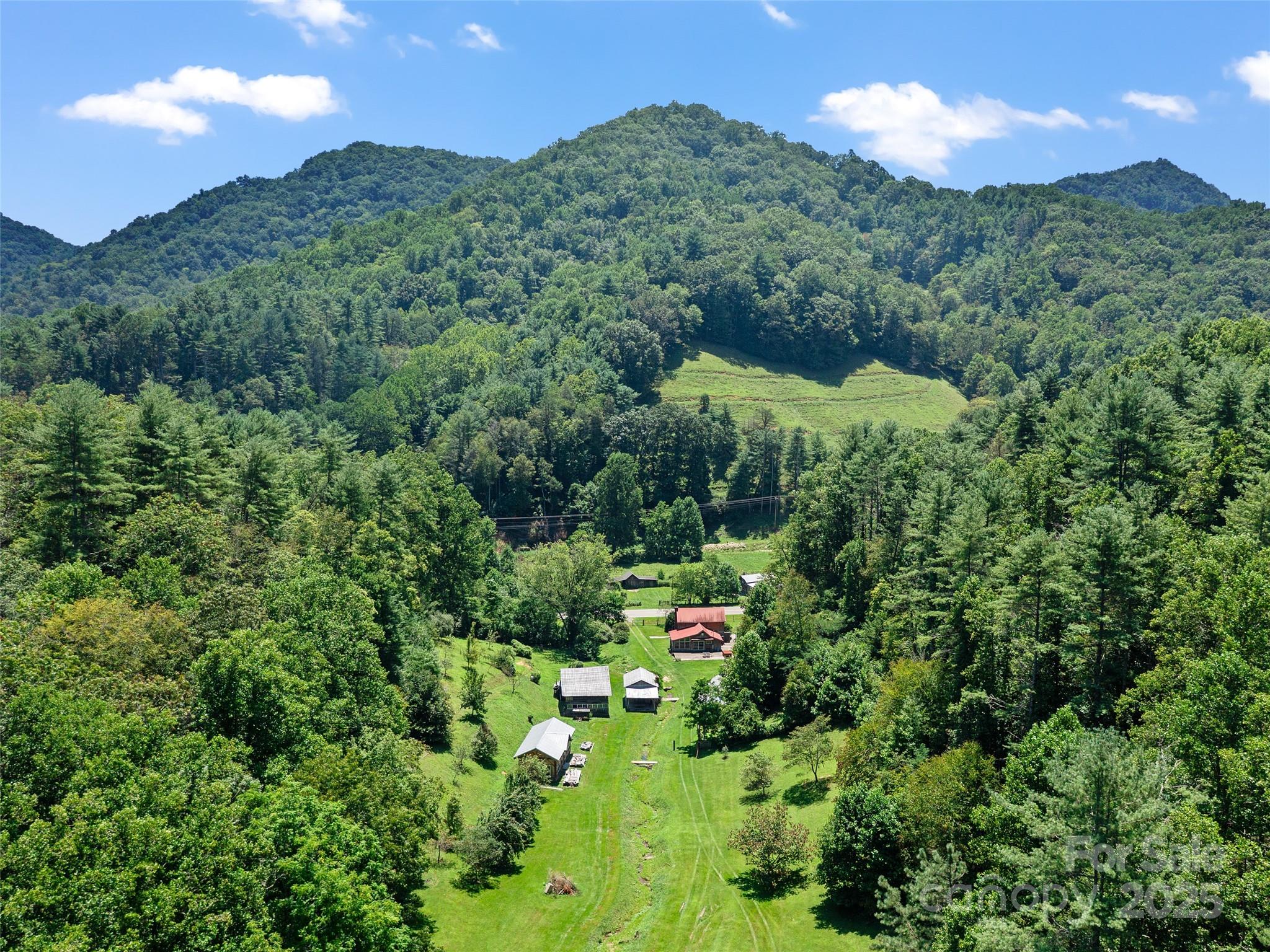 Welcome to Heartrock Hollow: a soulful 81-acre retreat with big skies, long-range views and an invitation to slow down. The 1910 cedar shake farmhouse, sitting at the base of the hollow, has a wood-burning stove, open kitchen with radiant floor heat and a bright sunroom. Sliding glass doors open to a large back deck, to reveal the land: rolling pasture, year-round springs, a small swimming hole, fruit trees and a water fall stream that runs along the house. A large outdoor kitchen and fire pit beg you to invite friends over to gather. Strong internet supports remote work. Or close the laptop and opt for wineberry picking and chantarelle foraging as you hike the trails etched into the hillside. The property has partial fencing around open, usable ground for gardening. Multiple out buildings and barns support animals or events. Zoned R-A with no restrictions or HOA, this farm is on a paved state rd, just 30 minutes to AVL, making it the perfect year-round home or Appalachian retreat.