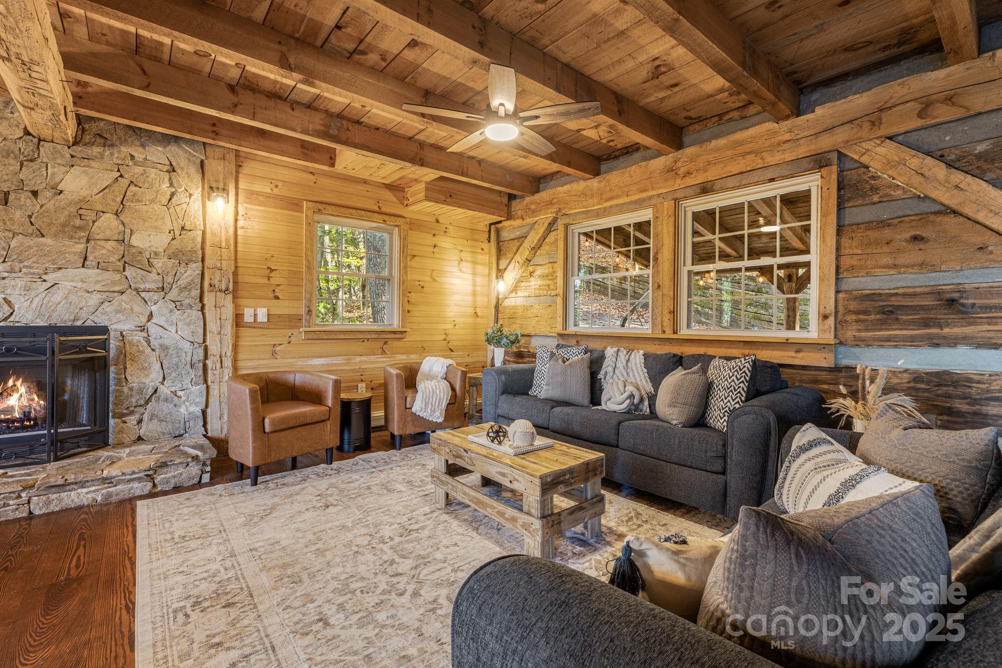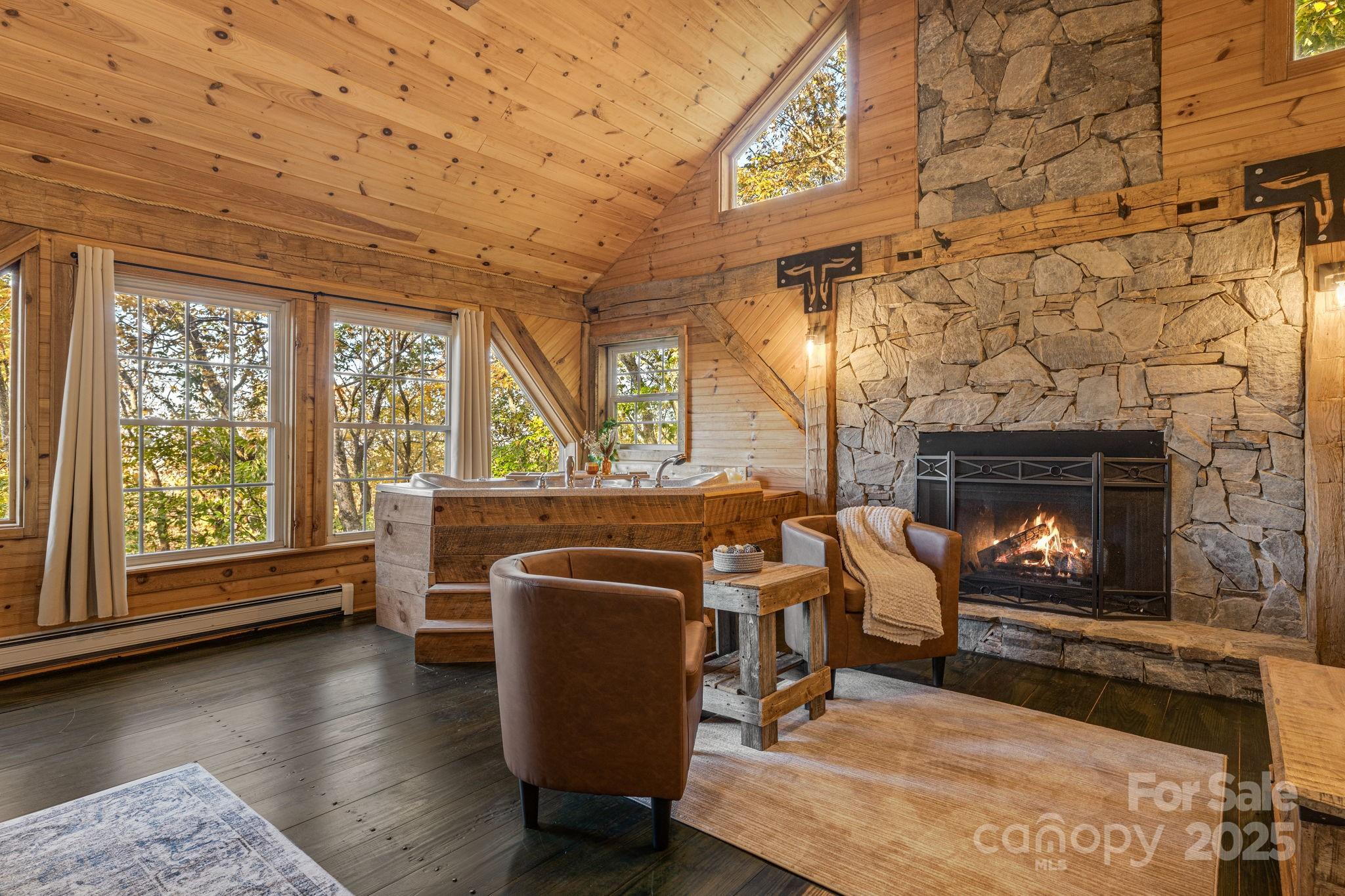 Incredible opportunity to own a successful short-term rental just 20 minutes from Asheville. This stunning 5BR/4BA with one bonus room mountain lodge retreat sits on 3.14 private wooded acres and sleeps up to 15. Blending rustic charm with modern comforts, it features a fully equipped kitchen with stainless appliances, stone fireplaces, and a spacious game room with pool table, skee-ball, board games, and smart TV. Multiple porches offer breathtaking mountain views, including one with an outdoor movie theater. Relax in the hot tub nestled among the trees or gather around the stone fire pit under the stars. The property comes with king, queen, bunk, trundle, and sleeper sofa options. Fast Wi-Fi, in-unit laundry, and parking for 4–5 vehicles. Minutes from hiking, attractions, and Asheville. Launched in mid-Nov of 2024, this short-term rental is a turn-key opportunity for investors or second-home buyers. One or more photo(s) was virtually staged or rendered to show use concept.