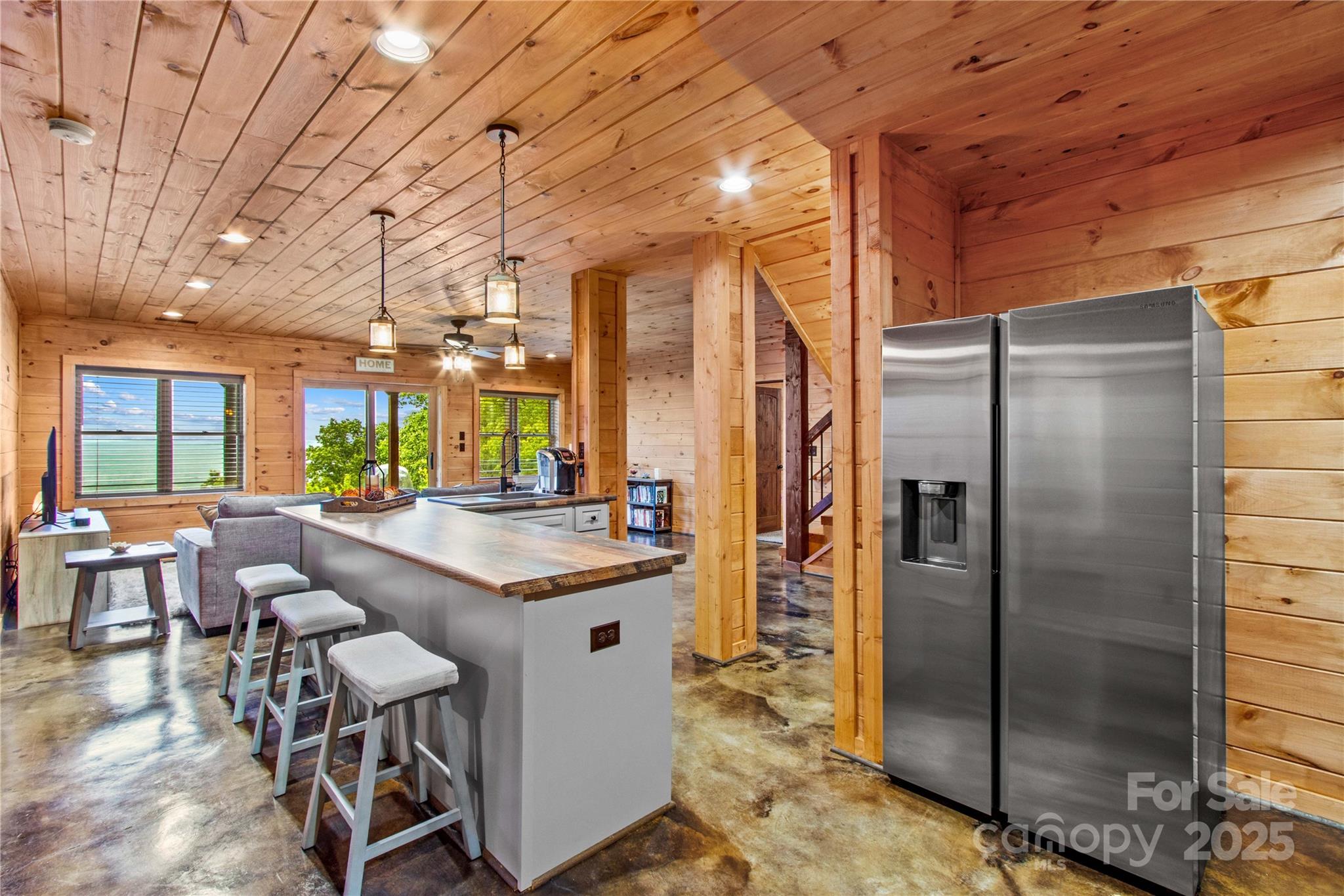 Stunning custom designed log home with breath-taking views from nearly every room in the house. Located in The Springs at High Rock Lake, this home has 3 bedrooms, 3 full and 2 half baths along with a bonus room over the garage that could be guest quarters, an office, a gym...so many possibilities! The primary bedroom and bathroom are luxurious and well thought out - with features including heated floors, a soaker tub with separate shower, and custom closet. The kitchen is warm and inviting with beautiful stonework, granite countertops, high-end cabinets, fixtures and appliances. Choose from screened, open or covered porches off the back to enjoy the amazing views from outside in any weather. The walk-out basement offers an additional relaxing living space with wet bar. Two large bedrooms with views and private baths in the basement make an ideal set up for guests or even the possibility for mother-in-law quarters. Unmatched views, versatility and peace await you at this special home.