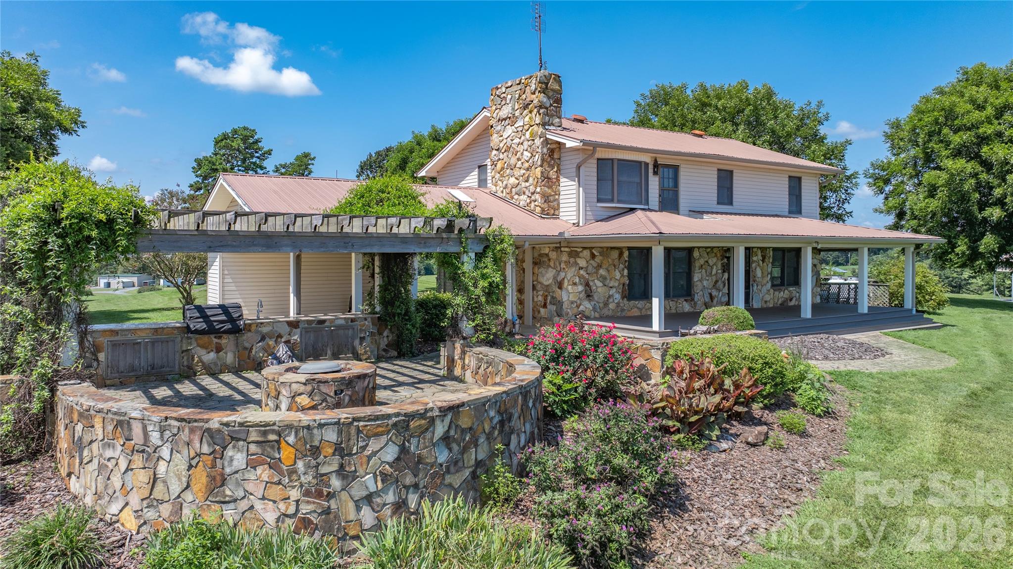 Experience the ultimate blend of elegance and country living on 33+/- acres with panoramic views and unforgettable sunsets. This beautifully appointed 3-bedroom 3 bath home offers a bonus room & home office, perfect for work and relaxation. Heated & cooled basement. Entertain outdoors with Trex Decking expansive covered porches, a custom stone grilling station with hot/cold sink, & a cozy propane fire pit overlooking rolling landscapes. Exceptional amenities include a detached heated/cooled 2-car garage, 900 sq ft climate-controlled workshop, covered RV parking with dedicated septic & power, 10x20 equipment building, and tractor shed, 24KW Generac generator. Approximately 20 acres fenced with steel woven wire. Home on 4 acres & 8 acres across the street, this property is ideal for horses, cattle, or a private retreat. A rare offering combining refined comfort, unmatched functionality, and breathtaking natural beauty. Property with many extras and views that are a must see. Outdoor Oasis