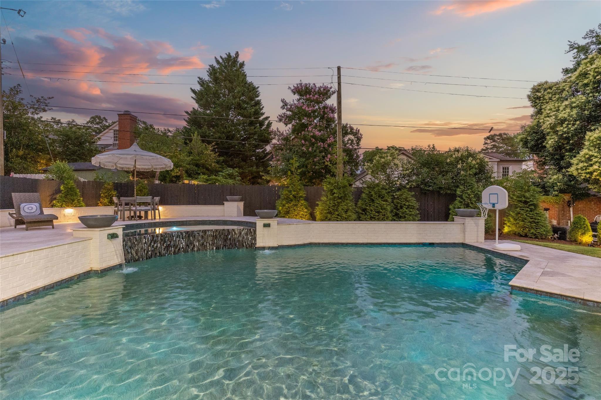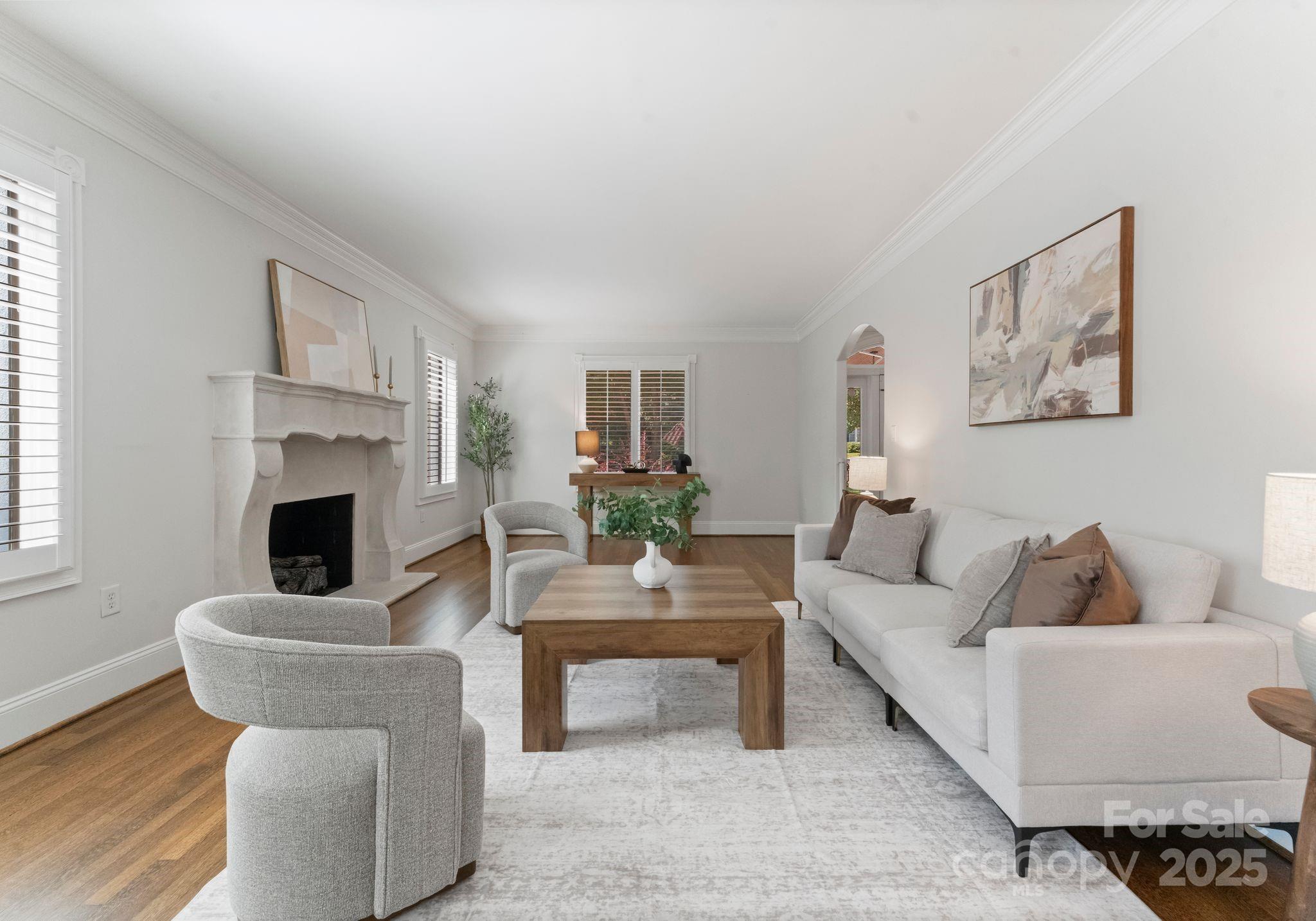 Stately 4 bed, 4.5 bath brick home in Eastover, one of Charlotte's most sought-after neighborhoods. This classic two-story plus basement offers effortless indoor-outdoor living. The main level features an open-concept living room and den with dual stone fireplaces, a gourmet kitchen with richly-stained cabinetry and a center island, and both formal and casual dining areas. The spacious primary suite includes two walk-in closets and a grand en-suite bathroom with separate vanities and a soaking tub. 3 secondary bedrooms, 2 full bathrooms, and a work-from-home space round out the second level. The finished basement adds versatile flex space and has a full bathroom. Hardwood floors, mudroom with built-ins, and a 2-car attached garage enhance the home's functionality. The outdoor space truly shines thanks to the private, gated backyard with multiple seating areas, a sparkling pool with water features, a hot tub and gas fire pit. All just minutes from dining, shops, green spaces, and more!