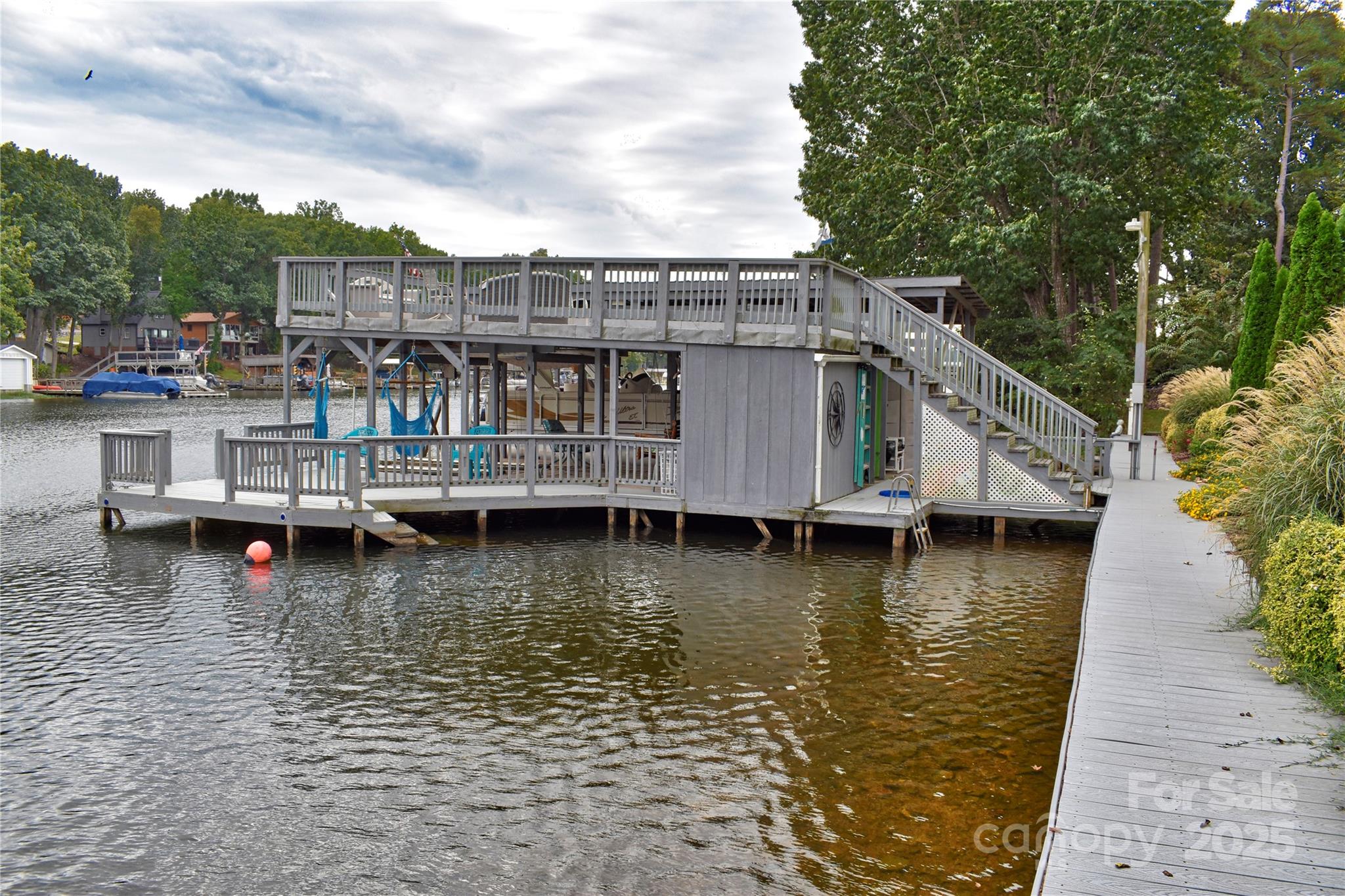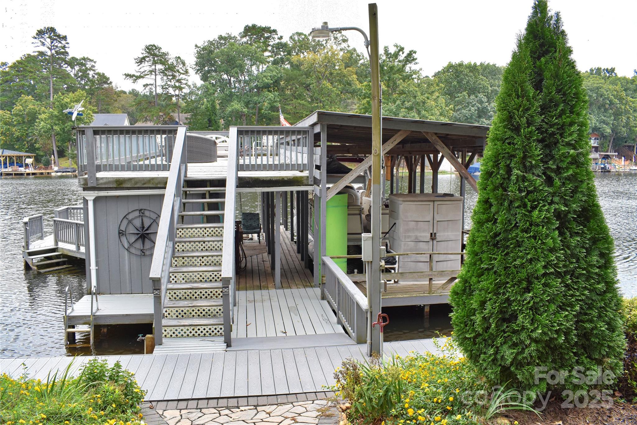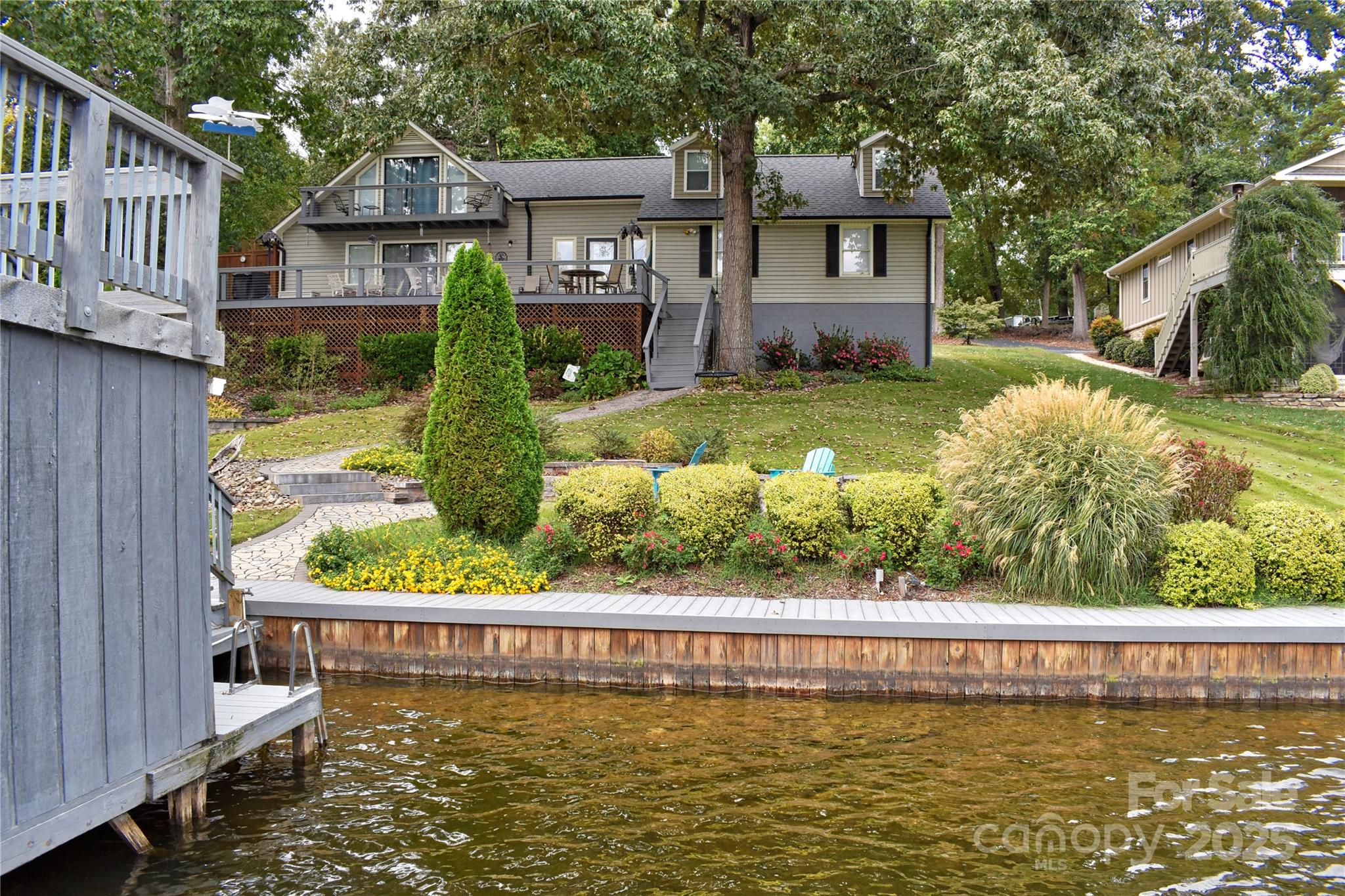 This waterfront home is located off Badin Lake's main channel. Near the mouth of a desirable deep-water cove between Sunrise Point & Dixie Shores. Large .55 acre lot in the peaceful little Sunrise Point area (Lot #1). Recently remodeled home. The main level features a kitchen, living room & dining room with fantastic views. Open kitchen & living area. Granite counter tops. Large lakeview deck & grilling area. Fully shaded deck makes it perfect for families during the hot summers. Cape Cod outdoor shower. Laundry on main. The upper level features 2 bedrooms, a lakefront balcony, game room & office. Huge stationary pier with covered boat slip & heavy lift, 2 covered jet ski slips & grandfathered upper sundeck. Ideal for swimming & fishing, away from heavy boat traffic. Main channel views. Plenty of shaded area under the pier sundeck for relaxing with the steady breeze that comes through the cove regularly. Seawall that spans the 113 feet of waterfrontage. Fully manicured front lawn with Zoysia grass, stone walkways & large stone walls with lakeside fire pit in front. Stone walls with large planter beds in the rear with fruit trees & Crepe Myrtles throughout. Some furniture negotiable. Pontoon boat negotiable-ask listing office for details. County water & sewer. Circular asphalt driveway; plenty of parking. Paved, public Whip O Will Wildlife boat landing within the neighborhood. Convenient to the lake’s marinas that provide dining, gas & watercraft rentals. The Uwharrie National Forest 5 minutes away is a great destination for camping, hiking, horseback riding & ATV/OHV trails. Within 1 hour from Charlotte, Greensboro or Winston-Salem.