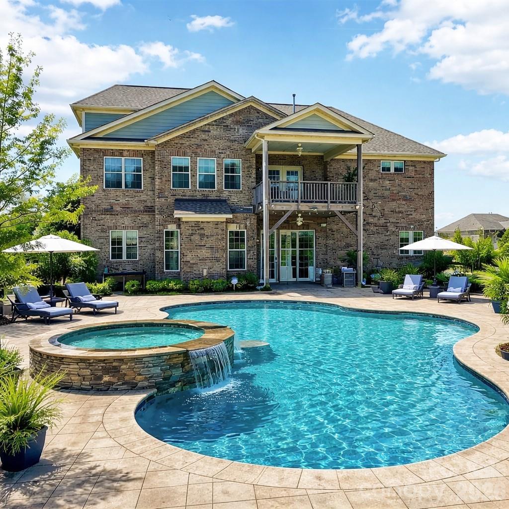 Welcome to this exceptional luxury estate in Weddington—a former model home that perfectly blends refined design, modern comfort, and upscale living. From the striking curb appeal and oversized 3-car side-load garage to the semi-private, wooded backyard, every detail is designed to impress. Inside, a grand foyer with 10-foot ceilings, hardwood floors, and custom millwork opens to elegant formal spaces and a sophisticated family room with coffered ceilings and a gas fireplace. The chef’s kitchen is a true showpiece, featuring a massive island, quartz countertops, stainless steel appliances, SS farmhouse sink, walk-in pantry, and custom cabinetry—flowing seamlessly to a covered patio and firepit for effortless indoor-outdoor living. The main level includes a private guest suite and full bath. Upstairs, the luxurious primary suite offers a spa-inspired bath, dual walk-in closets, direct laundry access, plus a private sitting area and balcony. All secondary bedrooms feature en-suite baths. A designer bonus/media room with shiplap and surround sound, plus a third-floor flex space, provide ultimate versatility. Additional highlights include a finished garage, ample storage, irrigation system, and high-end designer upgrades throughout. Ideally located minutes from Waverly, Rea Farms, and Blakeney, with easy access to Brace Y and Life Time Fitness. Expansive lot with room for a custom pool and outdoor oasis—offering privacy, prestige, and lifestyle.