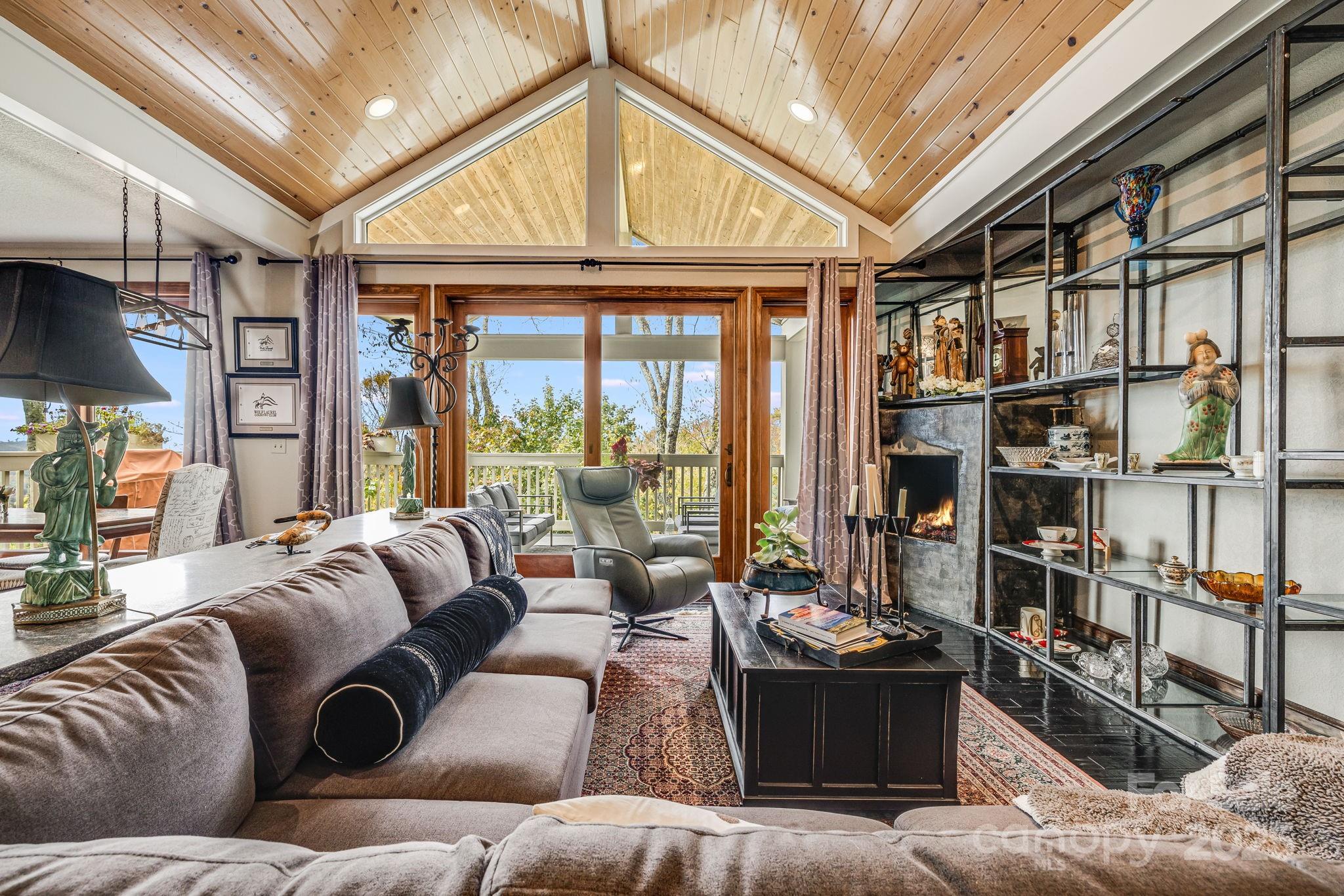 Experience refined mountain living at 4,500 feet elevation in this turnkey 5-bedroom, 3.5-bathroom fully furnished Mountainside Townhome inside the gates of Wolf Laurel Resort—a private, year-round, gated mountain community less than 35 minutes from Asheville, Johnson City, Burnsville, and Weaverville. Resort-style amenities are within walking distance, including the Wolf Laurel Country Club, Fitness Center, and Golf Course. Offering 3,199 sq ft of beautifully finished living space with four fireplaces, an attached two-car garage, and two expansive 488 sq ft decks—one featuring a hot tub and the other a swing bed—this residence combines high-elevation comfort with luxury design. An additional 845 sq ft unfinished basement with 12’8” ceilings offers exceptional potential for expanded living space or an impressive wine cellar. The entrance level features a welcoming living room, kitchen, and dining area, along with the primary suite, which includes an en-suite bath, two closets, and direct access to the main deck overlooking panoramic long-range mountain views. Upstairs, the second level offers another living area, a second bedroom with en-suite bath, and a third bedroom with a full bath for family or guests. Two large bonus rooms add valuable flexibility—one currently used as a media and office space, and another as a private workout and music room. Both could serve as additional bedrooms, hobby spaces, or multipurpose flex areas, offering versatile options for future owners. The second level also provides access to the upper deck from three rooms, where the swing bed invites you to unwind and enjoy cool mountain breezes. The gourmet kitchen features premium appliances, including a SubZero refrigerator/freezer, WOLF gas range and oven, and dual BOSCH dishwashers. A steam shower, updated lighting, and fine finishes throughout add a touch of understated luxury to this move-in-ready home. This end-unit townhome enjoys exceptional privacy, with no neighbor on one side, and the property extends to the cul-de-sac. Step onto your decks to enjoy all-season mountain views—spectacular in winter, lush in summer, and vibrant during fall foliage. The attached two-car garage provides secure parking and extra storage—another rare and valuable feature within Wolf Laurel’s mountain terrain. Connected to community sewer service, a rare amenity in Wolf Laurel where most homes rely on septic systems, this property offers low-maintenance convenience and long-term value. Outdoor enthusiasts will love the home’s direct access to the Wolf Laurel Nature Trail, which connects to the Appalachian Trail just a short walk away, plus miles of biking and hiking trails throughout the resort. The upcoming Hatley Pointe Adventure Bike Park, opening in 2026, will further enhance the area’s appeal to cyclists and adventurers. The Wolf Laurel Country Club is a private, member-owned club featuring a world-class chef, full bar, and extensive wine list, offering fine dining with breathtaking mountain views. The resort provides year-round recreation including Hatley Pointe Ski Resort, golf, tennis, heated seasonal pool, pickleball, stocked trout pond, hiking, and equestrian facilities, all surrounded by thousands of acres of protected wilderness and Pisgah National Forest. The home’s proximity to Hatley Pointe’s Smoke & Timber Restaurant—just a short drive inside the gated Wolf Laurel Resort community—provides convenient, year-round dining and a welcoming gathering place for residents and visitors alike. Whether you’re seeking a primary residence, vacation retreat, or income-producing investment, this Mountainside Townhome at 4,500 feet elevation delivers an unmatched combination of luxury, location, and high-elevation adventure within one of Western North Carolina’s most desirable gated communities.