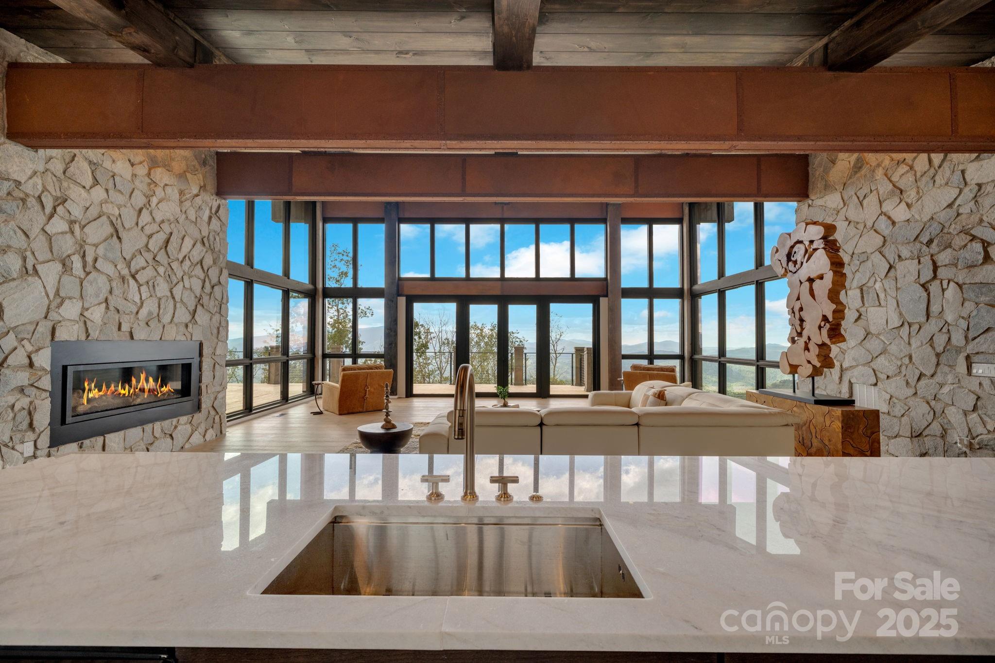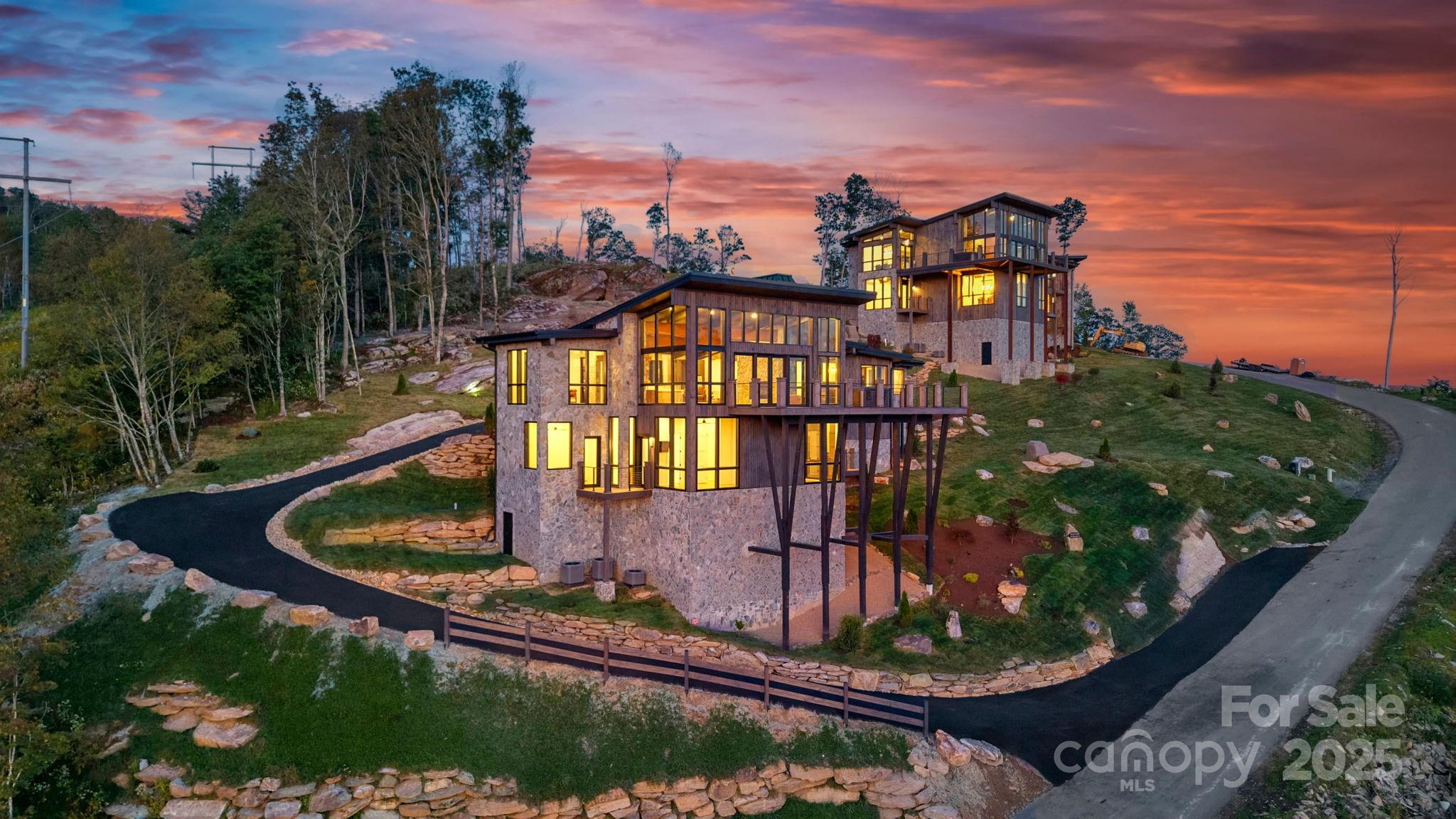 Seize the Rare Opportunity to own "Sunset in Paradise", a $4.5 million Masterpiece nestled in the Elite Sunset Section of The Lodges at Eagles Nest. This architectural triumph redefines luxury mountain living with unparalleled design and craftsmanship. Meticulously crafted over 3 years, this 1.202-acre estate blends rugged natural splendor with exquisite elegance, offering 4,959 sq. ft. of heated living space & a 593 sq. ft. 2-car garage w/ modern frosted glass doors. Perched at an elevation of 4,400 feet above sea level, it commands Breathtaking Panoramic views from North Carolina to Tennessee, where Mesmerizing Sunsets Ignite the Senses. The exterior radiates modern mountain opulence w/ white pine-stained wood siding, expansive floor-to-ceiling windows, & rustic metal beams. A $250,000 investment in bespoke landscaping featuring natural boulders, custom-designed lighting, and intricate hardscaping creates an unforgettable first impression. Unwind on the expansive deck, where a state-of-the-art hot tub sets the stage for starry nights, framed by hand-laid wooden beams and stone pillars that showcase Awe- Inspiring Vistas. Step through the Grand Custom Glass front door, greeted by a dazzling chandelier illuminating the great room. Soaring two-story glass panels bathe the space in natural light, framing the majestic scenery. Nickel gap white pine-stained ceilings, rustic beams, light-toned floors, hand-laid stone, & custom rusted metal gas fireplace marry rustic charm w/ contemporary elegance. The Gourmet Kitchen is a Chef’s Dream, boasting a marble waterfall island, premium stainless-steel appliances, & a wine cooler w/ Formal Dining. Downstairs, a custom-made bar, a wine cooler, & versatile bonus room ideal as a movie theater, family haven, or game lounge elevate entertainment to new heights. Custom Viewrail metal staircase railings seamlessly connect the outdoor deck to the interior, complemented by handcrafted wood ceilings, stone accents, and glass windows that blend exterior grandeur with indoor luxury. The estate features five lavish bedrooms, four full bathrooms adorned with hand-laid stone, marble, and bespoke tiles, as well as one half-bath. The main floor primary suite is a sanctuary, featuring a spa-inspired bathroom and an adjacent utility room. Commissioned Artwork and Lavish Furniture throughout elevate the home’s handcrafted allure. The garage, with its hand-painted bronze epoxy flooring, exudes artistry. Within the gated Eagles Nest community, indulge in a lifestyle of unmatched vibrancy with ATV and hiking trails, a ropes course, playground, dog park, mini-golf, disc golf, archery, a multi-use sports field, and courts for volleyball, basketball, and pickle-ball. Savor luxurious amenities like Eagles Nest Winery, a cutting-edge fitness center, two helicopter pads, dining at Epic Chophouse, Sportsman’s Grille, and BBQ Pavilion, a convenient Dollar General, and an outdoor amphitheater hosting captivating seasonal concerts, Elk River access with over 4,000 Feet of water-frontage for World-Class Trout Fishing! "Sunset in Paradise" is not just a home, it’s a Once-In-A- Lifetime Retreat where Luxury, Nature, and Architectural Brilliance Converge, offering an Unrivaled Lifestyle Amid the Peaks. 4 YEAR HOME WARRANTY! Don’t miss the chance to own this Extraordinary Estate. A neighboring 7,055 sq. ft. property, listed as MLS #258143, is also available for purchase, presenting a Rare Opportunity to create a Main and Guest House Legacy.