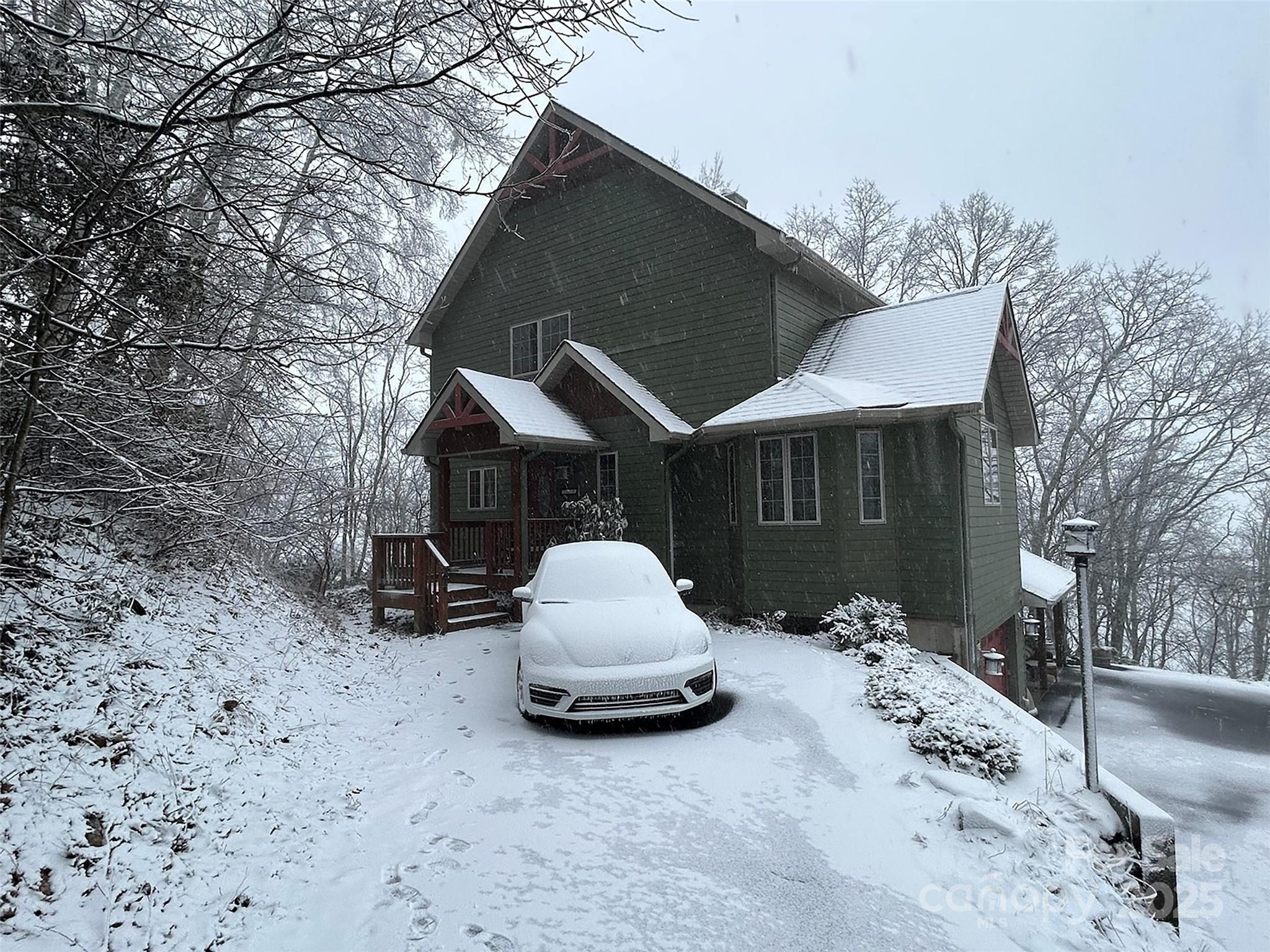 Tucked away mountaintop at over 5,000+ elevation, this custom-built home in the coveted Maggie Valley Country Club area offers an unparalleled blend of rustic elegance and modern luxury, embodying the Arts and Crafts style that harmonizes seamlessly with its natural surroundings. Two bedrooms and three baths, the residence invites you into an open-concept living and dining area where soaring cathedral ceilings create an airy, expansive ambiance, perfect for gatherings or quiet evenings by the fire. Custom cabinetry and built-ins adorn every corner, showcasing meticulous craftsmanship that extends throughout the home, from the spacious kitchen with ample counter space, and a cozy breakfast nook ideal for morning coffee while gazing at the horizon. The covered front entry deck welcomes you, leading into interiors framed by beautiful wood-clad windows and doors that flood the space with natural light and frame breathtaking vistas. Clad in durable Hardy plank-style siding topped with architectural shingles, the exterior promises low-maintenance longevity while blending into the forested landscape. But the true star is the 50-mile multilayered, year-round view—sweeping panoramas of rolling Appalachian ridges, vibrant fall foliage, misty valleys, and distant peaks that shift with the four seasons, offering a living masterpiece from nearly every room. The primary suite is a private sanctuary, featuring an open loft sitting area with a warm fireplace all under a dramatic vaulted ceiling that enhances the sense of grandeur. Step into the primary suite and out onto the intimate Juliette deck for a moment of solitude amid the treetops, and indulge in the luxury of two expansive walk-in closets providing abundant storage for your wardrobe and treasures. Descend to the partial finished basement, thoughtfully plumbed for a full kitchen, where an open recreational/family space awaits customization—perhaps a home theater, gym, or guest suite—complemented by a full bath and dedicated laundry area streamlines daily chores, while the oversized single-car garage offers ample room for vehicles and hobbies, complete with a large storage area to house seasonal gear or tools. For peace of mind in this remote paradise, a reliable household generator ensures uninterrupted comfort during mountain storms. Privacy reigns supreme at the end of a paved road, accessible via smooth brick pavers that guide you to this secluded haven, free from through traffic and enveloped by whispering pines and wildlife. Entertainment and relaxation reach new heights on the large double decks spanning both levels—one upper for relaxing under the stars, and a lower for lounging in the shade—each designed to maximize those epic views, whether hosting summer barbecues, stargazing parties, or simply unwinding with a book as the sun dips below the layers of blue-hued mountains. This mountain-top retreat isn’t just a home; it’s a gateway to a lifestyle of serenity, adventure, and natural beauty, where every detail—from the hand-selected materials to the thoughtful layout—has been curated to foster connection with the environment and loved ones. Imagine waking to birdsong, hiking nearby trails in the Great Smoky Mountains, or teeing off at the prestigious Maggie Valley Country Club just below, all while returning to this fortress of comfort that feels worlds away yet conveniently close to amenities. With its robust construction, energy-efficient features, and endless potential for personalization, this property stands as a rare opportunity for those seeking a forever home or a luxurious vacation escape in one of North Carolina’s most enchanting regions.
